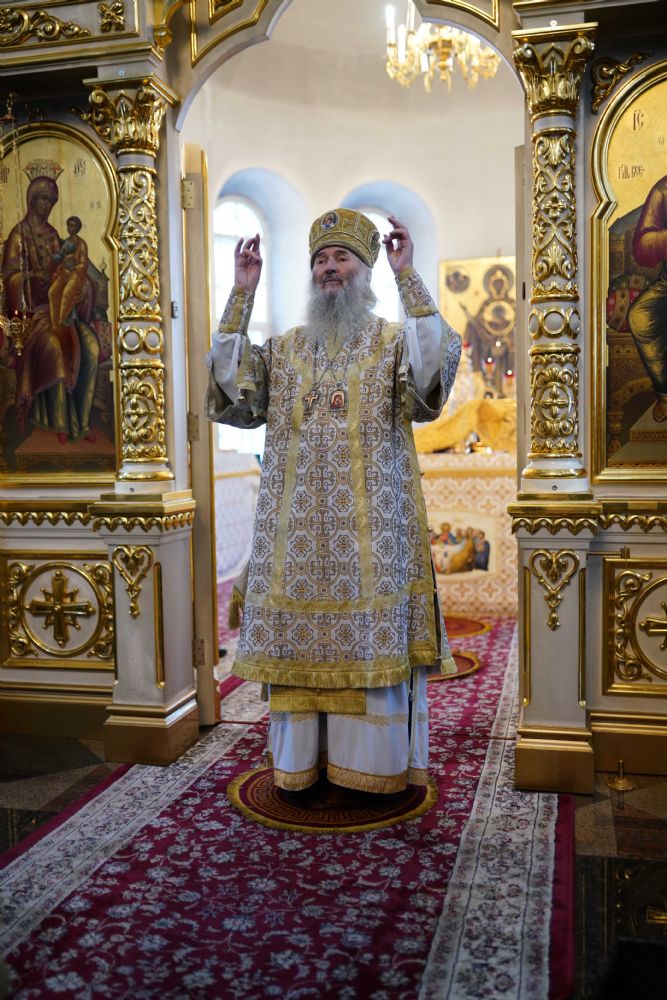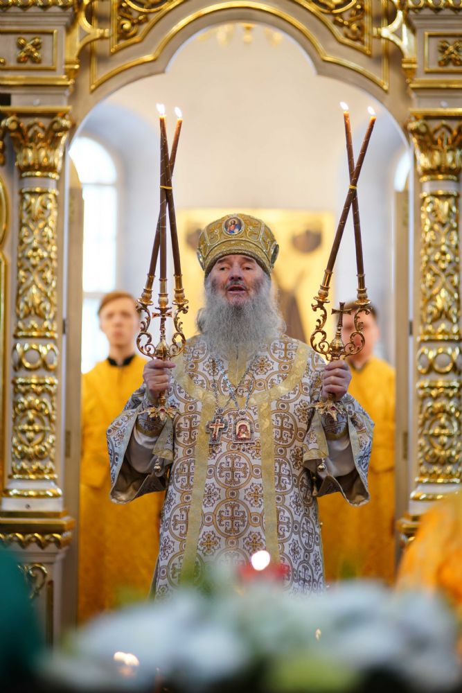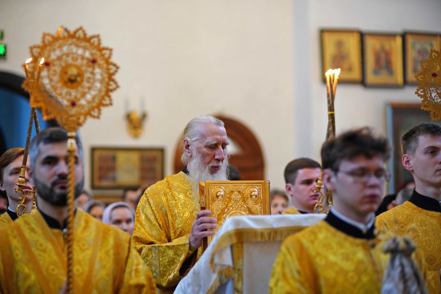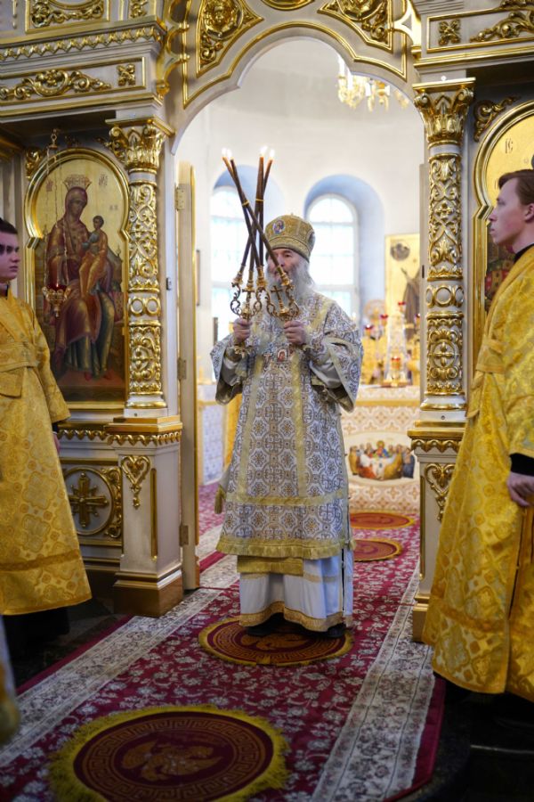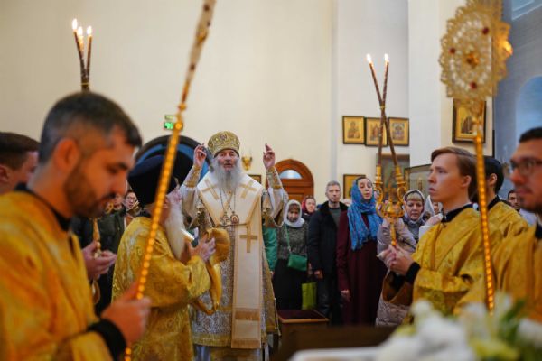 После чтения Евангелия митрополит Иоанн обратился к собравшимся с проповедью, разъяснив духовный смысл прочитанного за богослужением евангельского зачала о званных на пир.