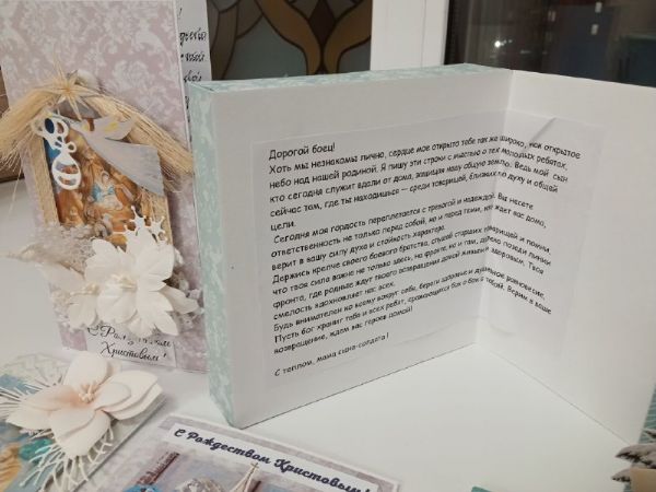 Под руководством наставника Клуба православной молодежи доцента Натальи Николаевны Чалдышкиной студенты, а также желающие педагоги изготовили в технике скрапбукинга нарядные открытки «С Рождеством Христовым!» и напечатали на них теплые сердечные поздравления.