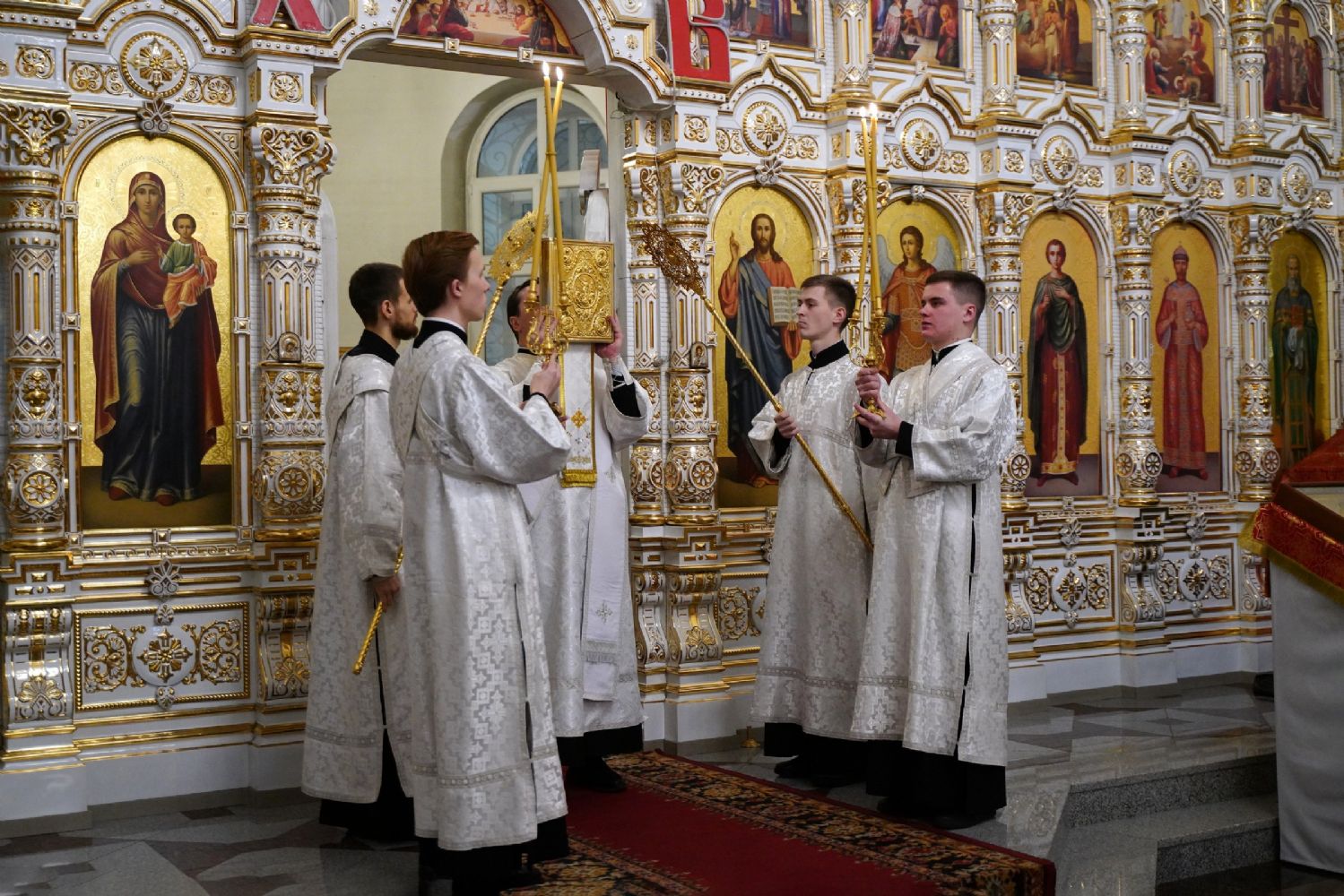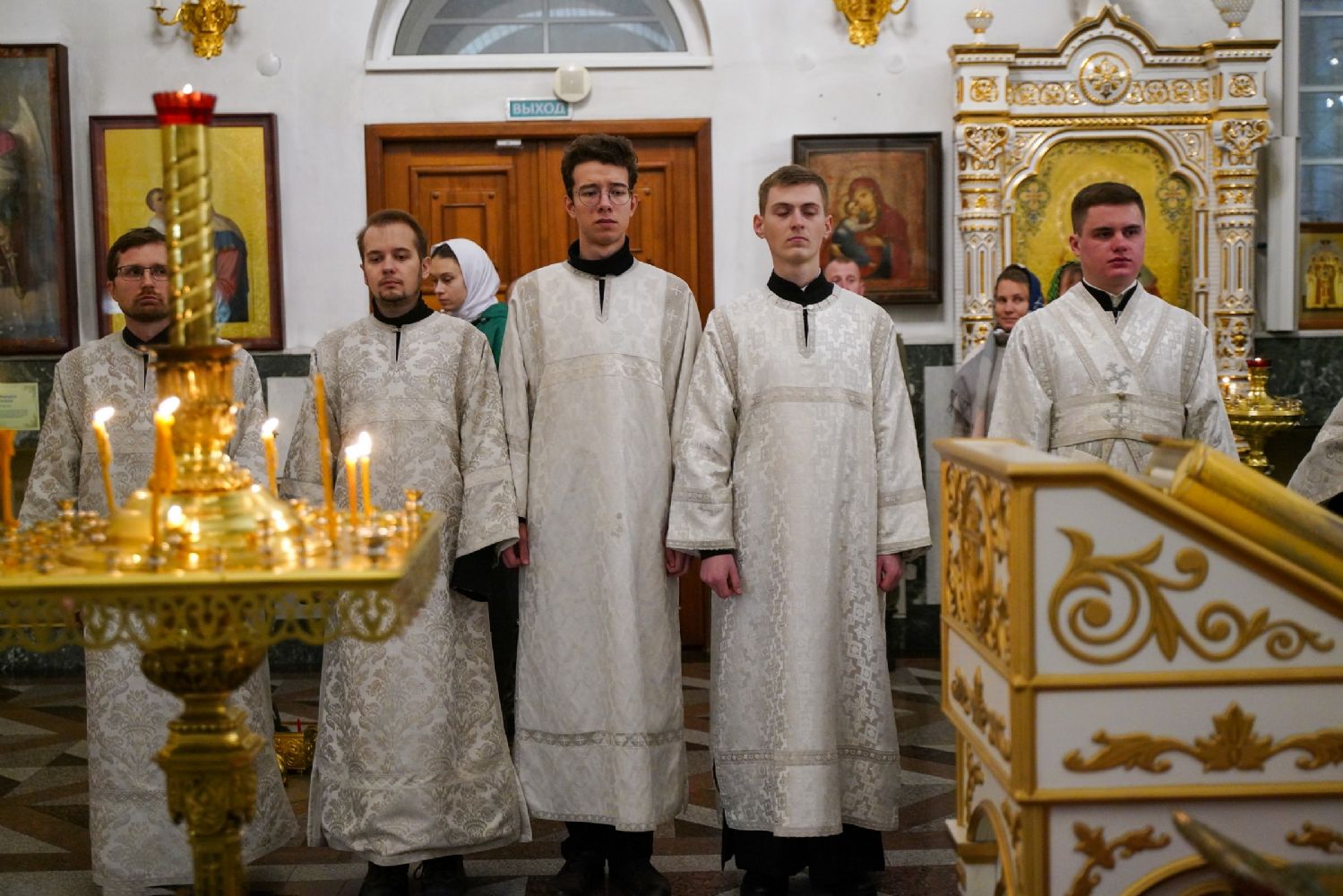 Архипастырю сослужили настоятель собора иерей Андрей Кочаков, клирики собора иерей Леонид Вылекжанин, иерей Димитрий Лукьянов и диакон Алексий Кузнецов, а также протодиакон Михаил Козловский. Песнопения исполнял хор собора под управлением Алисы Вылегжаниной.