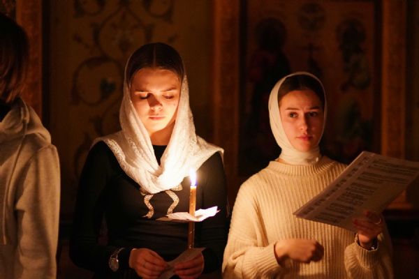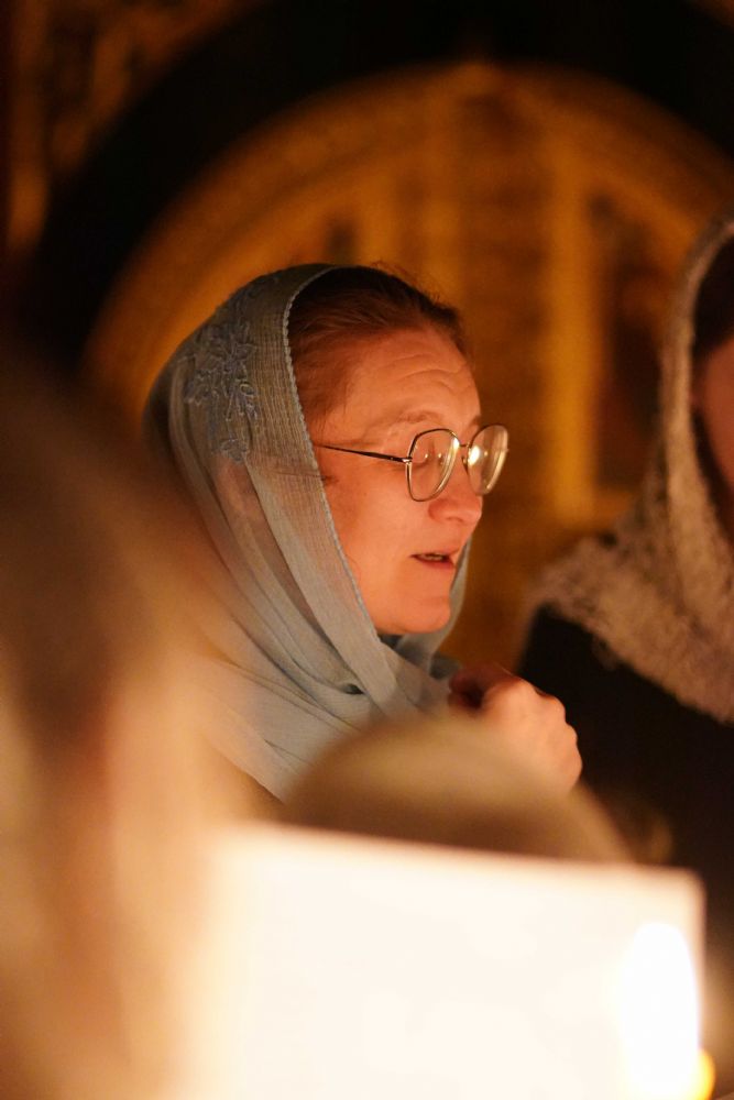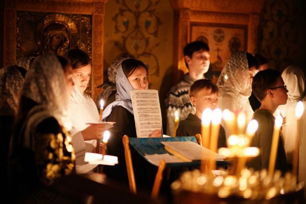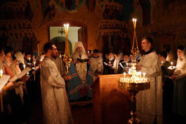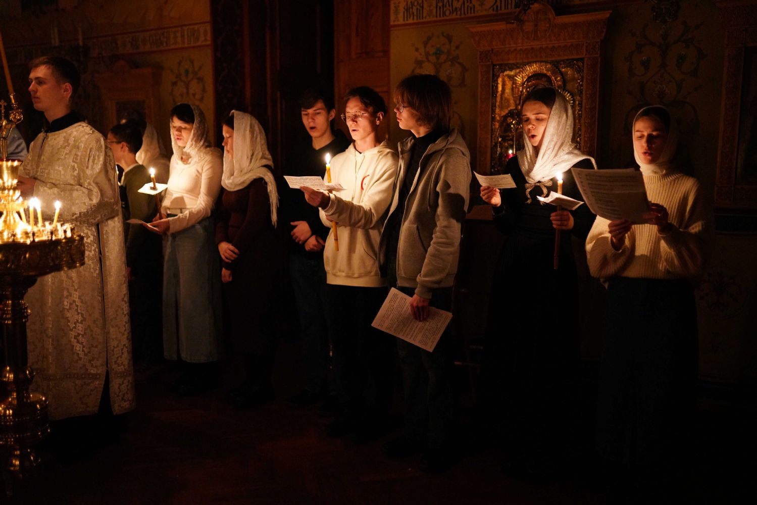 Все чтения и песнопения вечерни, повечерия и утрени исполняли певчие детско-юношеского хора. Специально для лучшего освоения ими порядка и особенностей богослужения митрополит Иоанн регулярно проводит в домовом храме такие богослужебные практики, которые приносят певчим большую пользу.