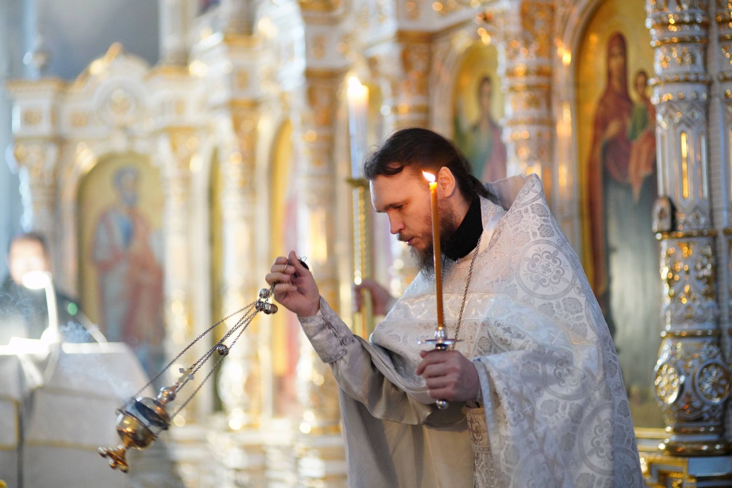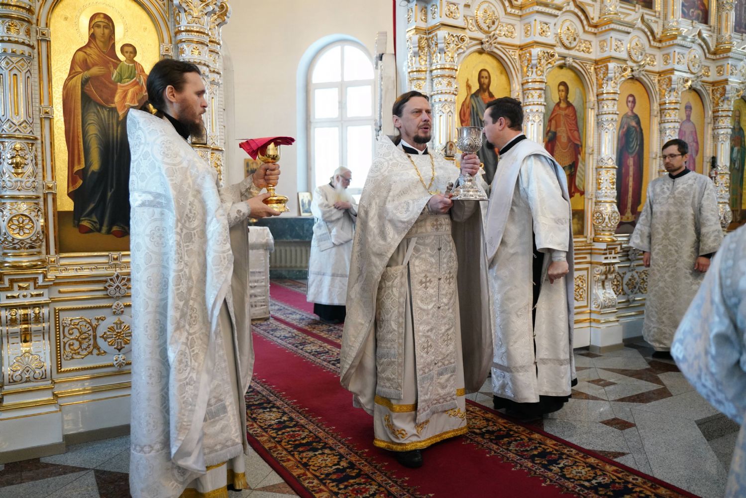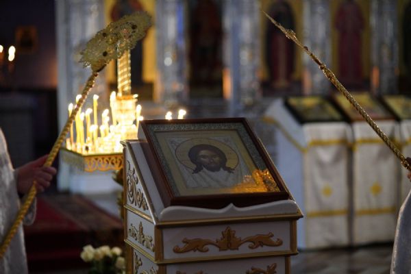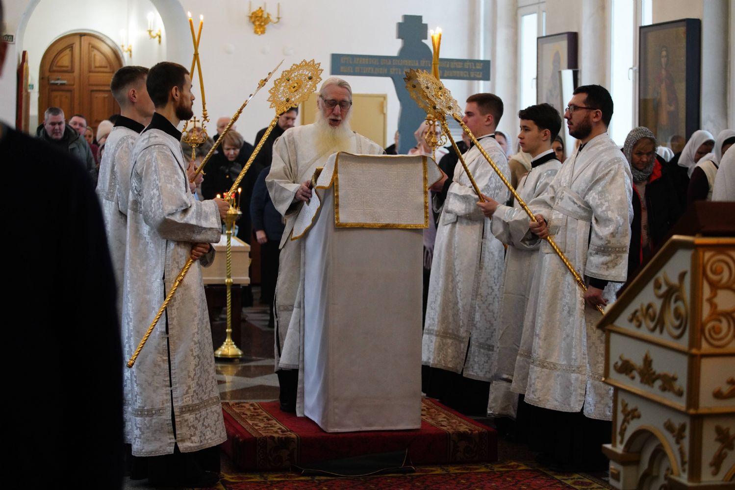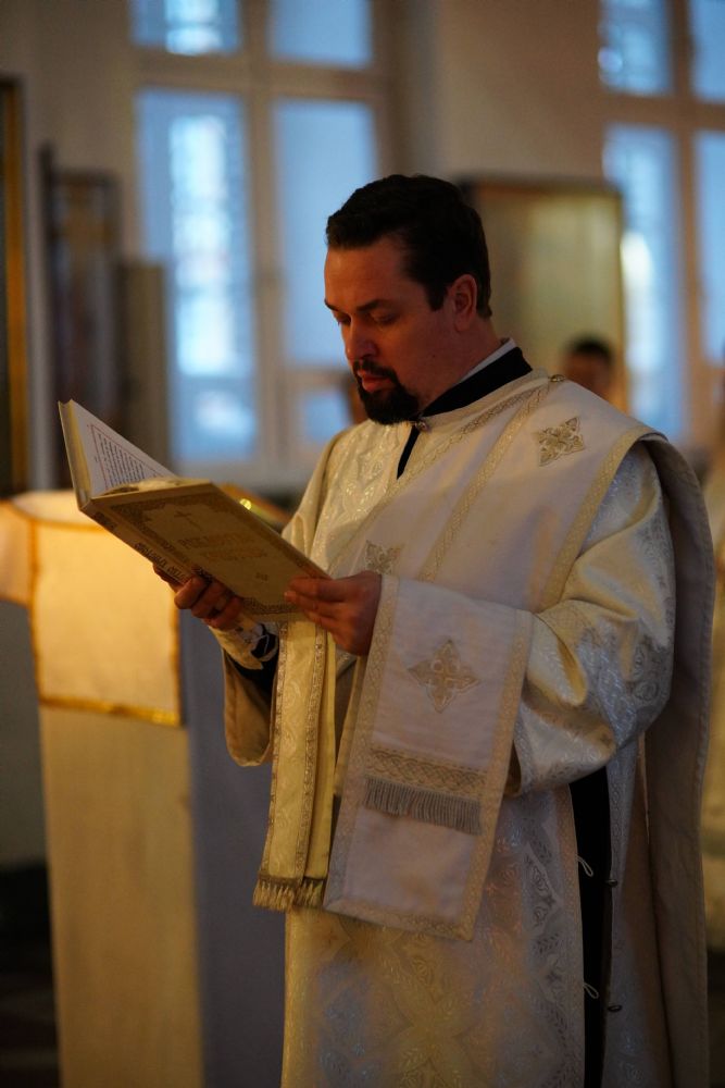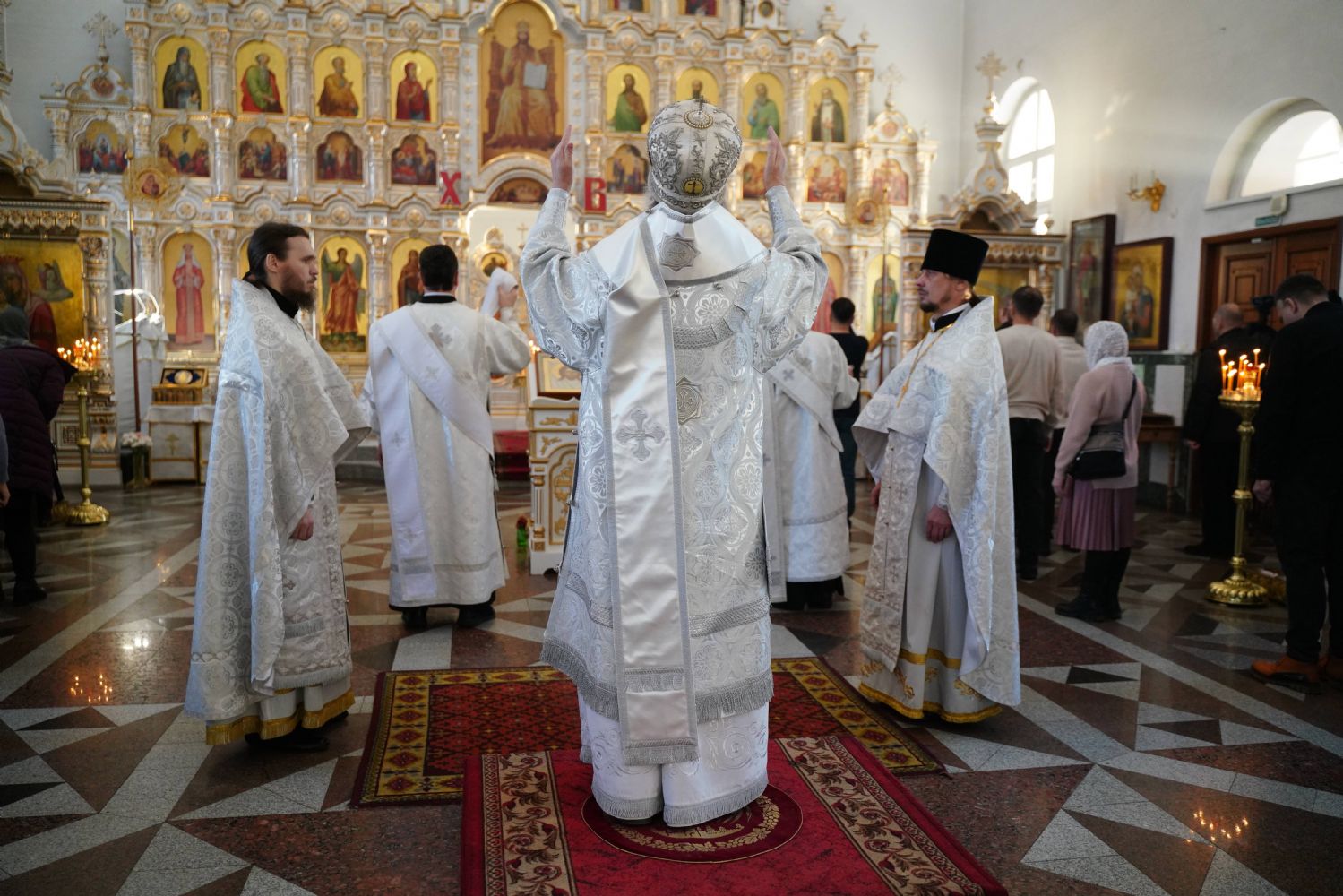 Владыке сослужили настоятель собора иерей Андрей Кочаков, клирики собора иерей Димитрий Лукьянов и диакон Алексий Кузнецов, а также протодиакон Михаил Козловский. Песнопения исполнял хор собора под управлением Алисы Вылегжаниной.