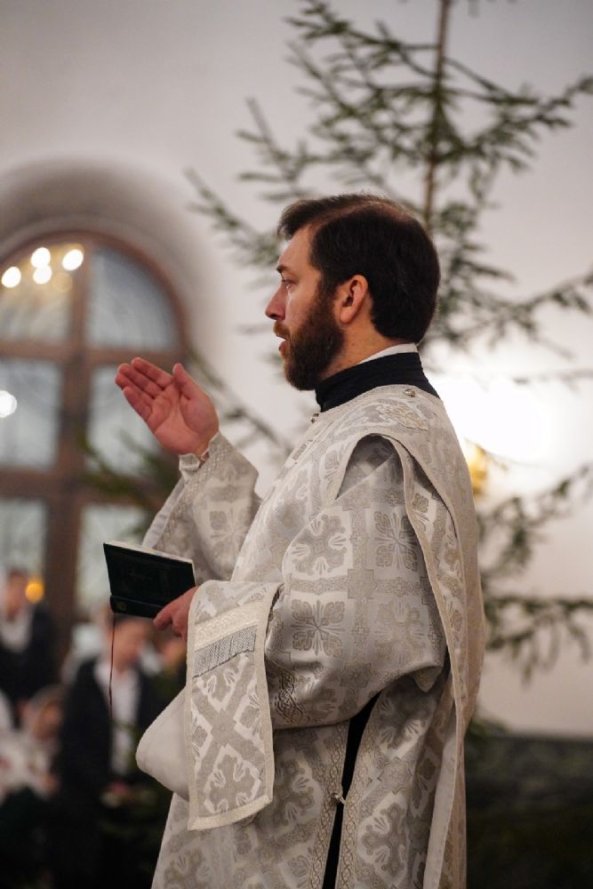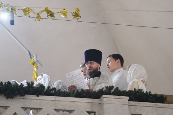 По запричастном стихе протоиерей Сергий Поглазов зачитал Рождественское послание Патриарха Московского и всея Руси Кирилла верным чадам Русской Православной Церкви.