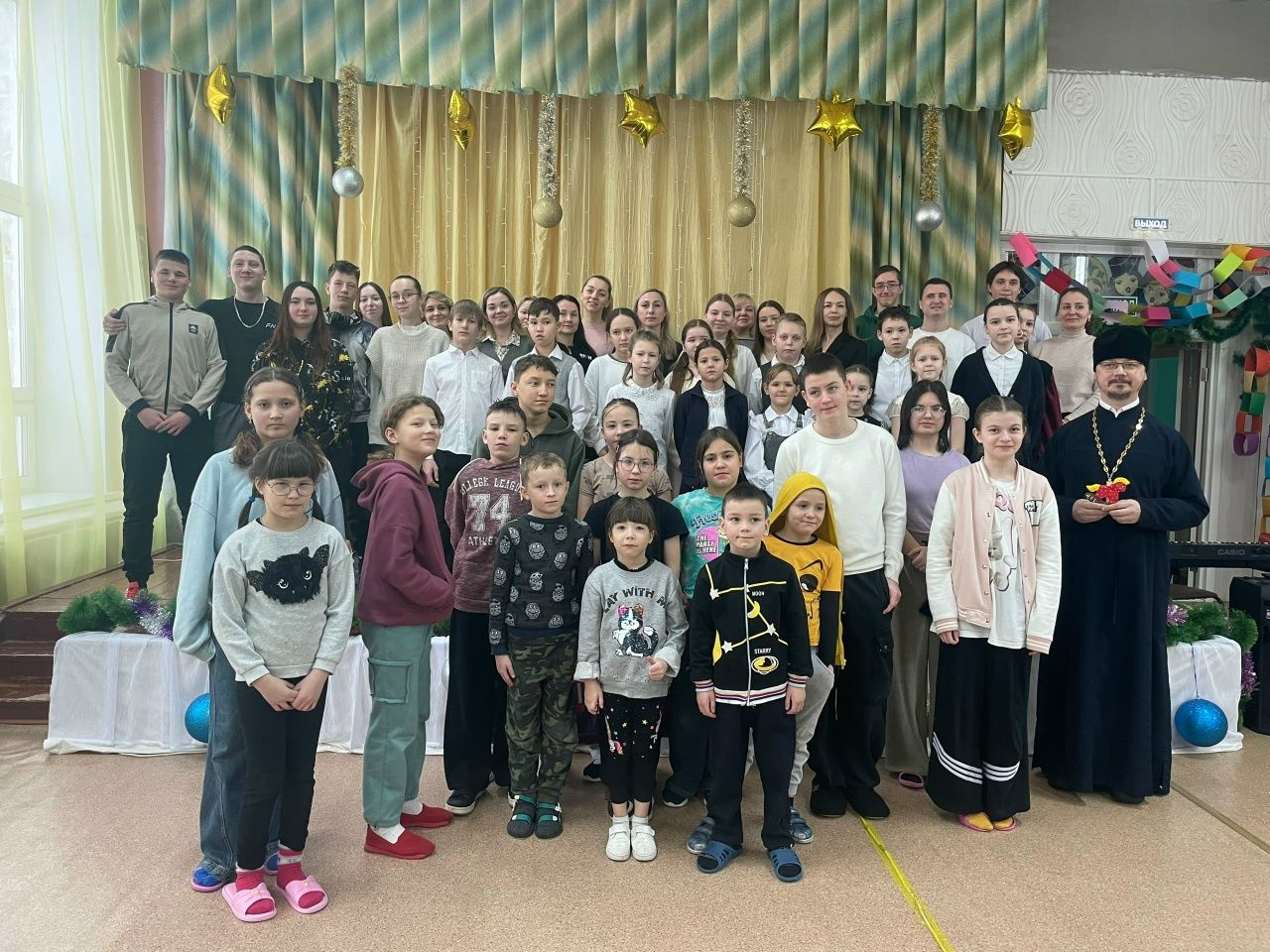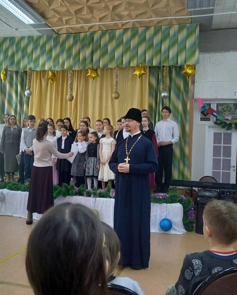 Ребята и воспитатели собрались в нарядно украшенном актовом зале. С теплыми словами поздравления к ним обратился настоятель храма иконы «Всех скорбящих Радость» иерей Алексий Михеев, пожелав всем духовной радости, счастья, добра.