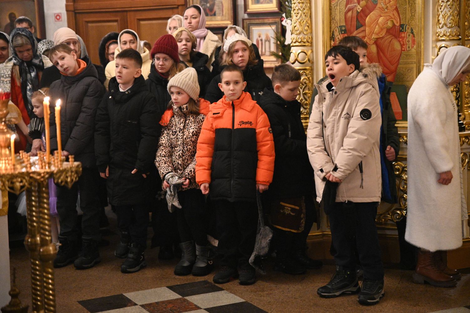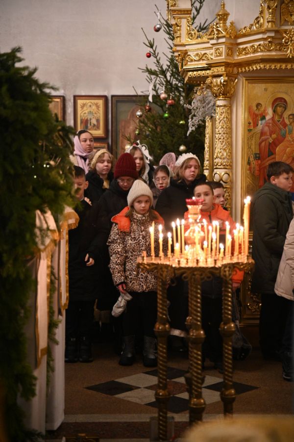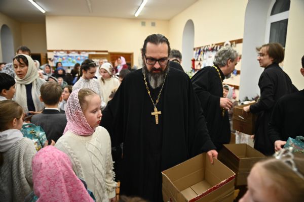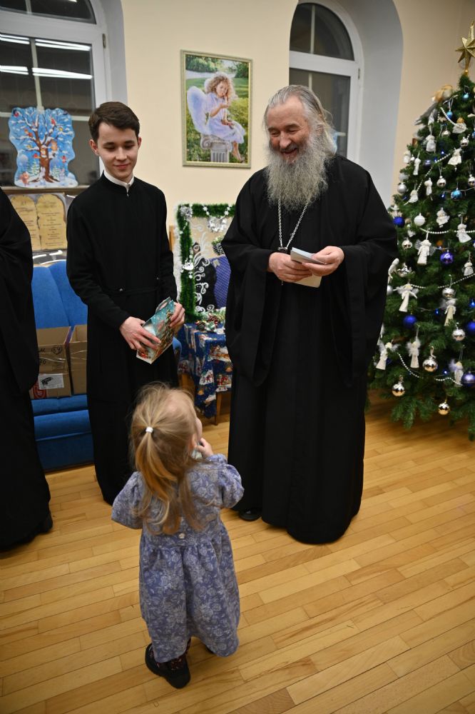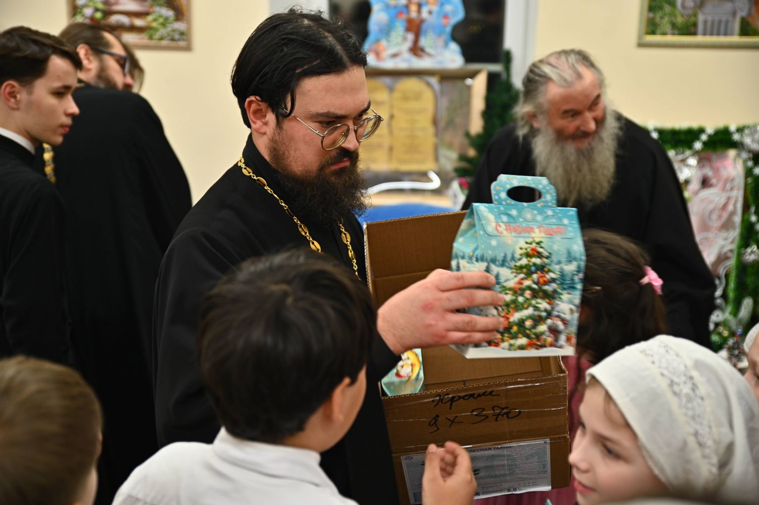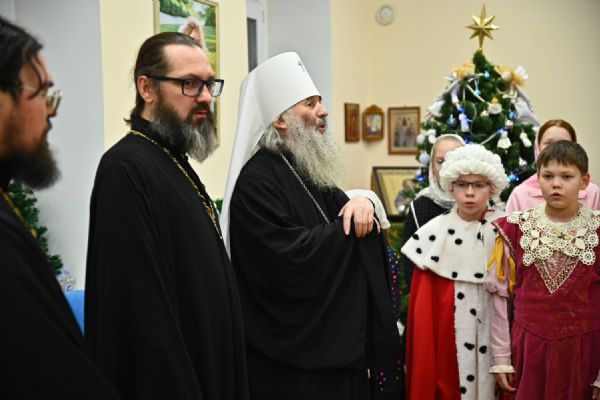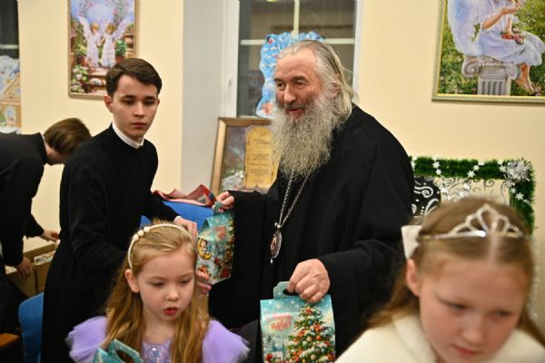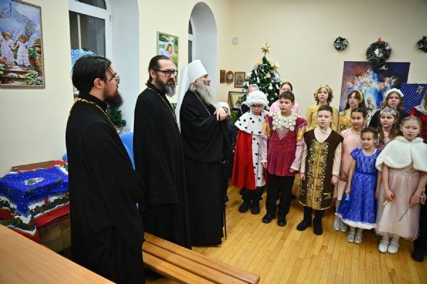 В завершение митрополит Иоанн посетил традиционный рождественский концерт воспитанников воскресной школы храма Рождества Христова и вручил ребятам сладкие подарки.