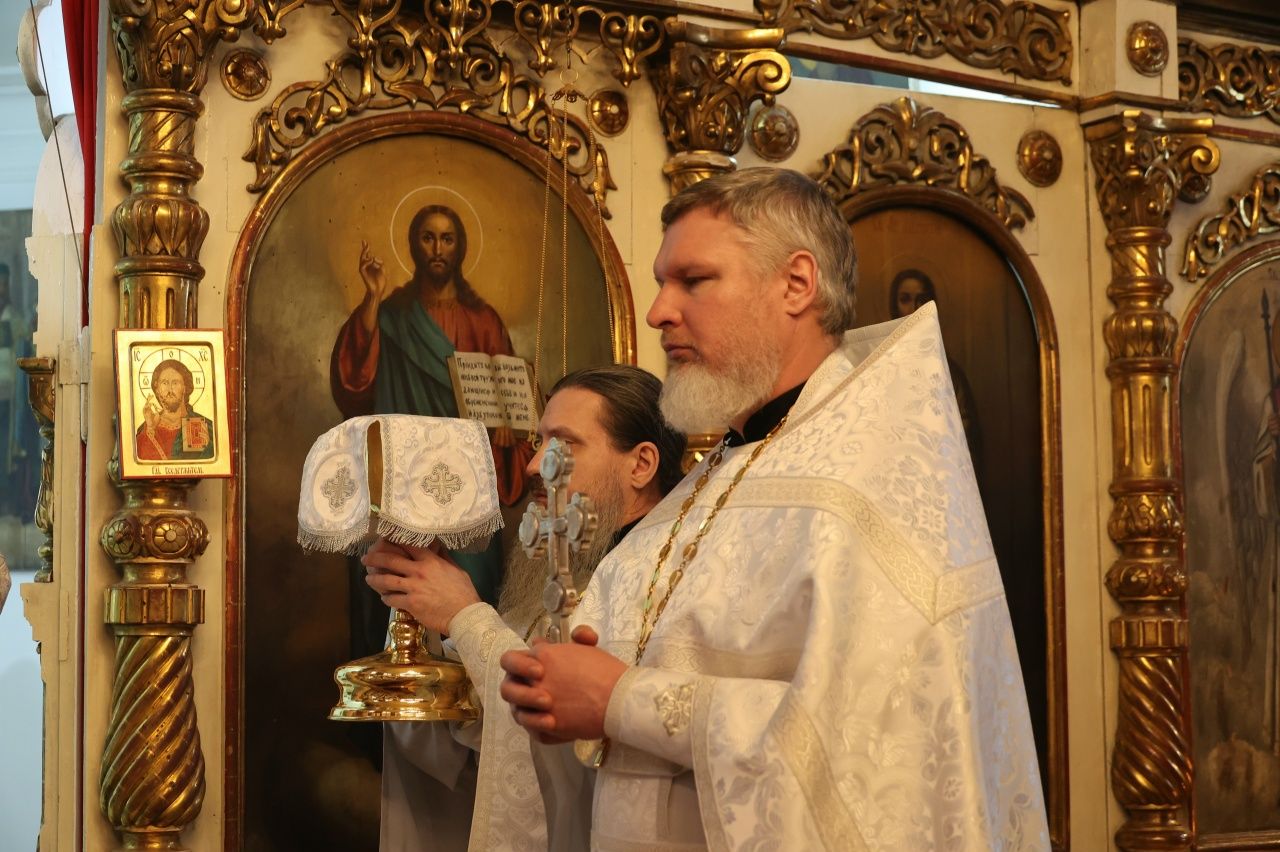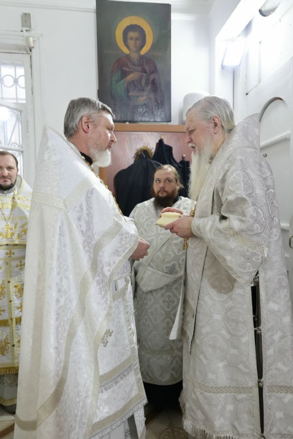 После причащения священнослужителей в алтаре епископ Феофан благословил ношение стихаря алтарнику Свято-Гурьевского храма Вячеславу Григорьеву. Также владыка поздравил руководителя информационно-издательского отдела Волжской епархии иеромонаха Александра (Чеборова) с днем его рождения и пожелал многих и благих лет потрудится во славу Господа, Его Святой Церкви и во спасение души.