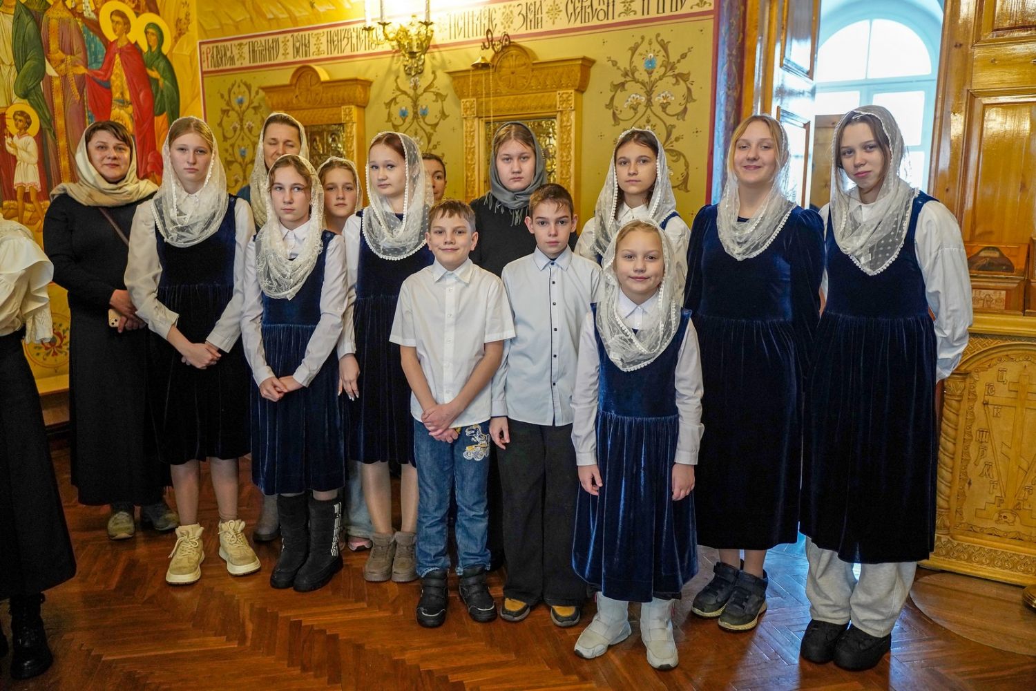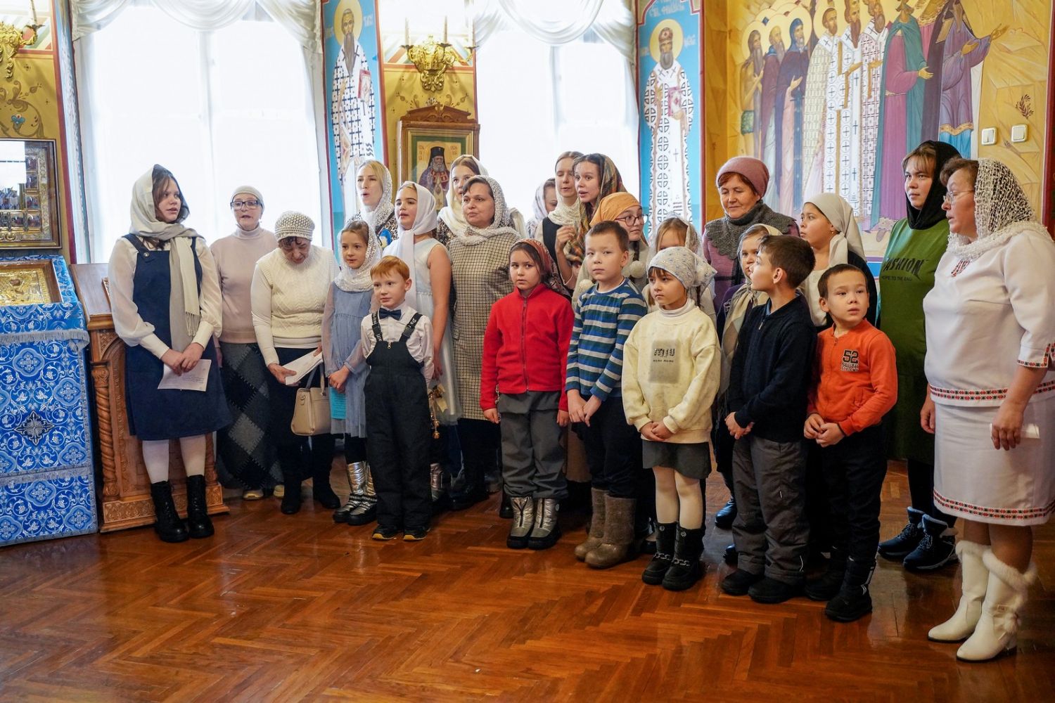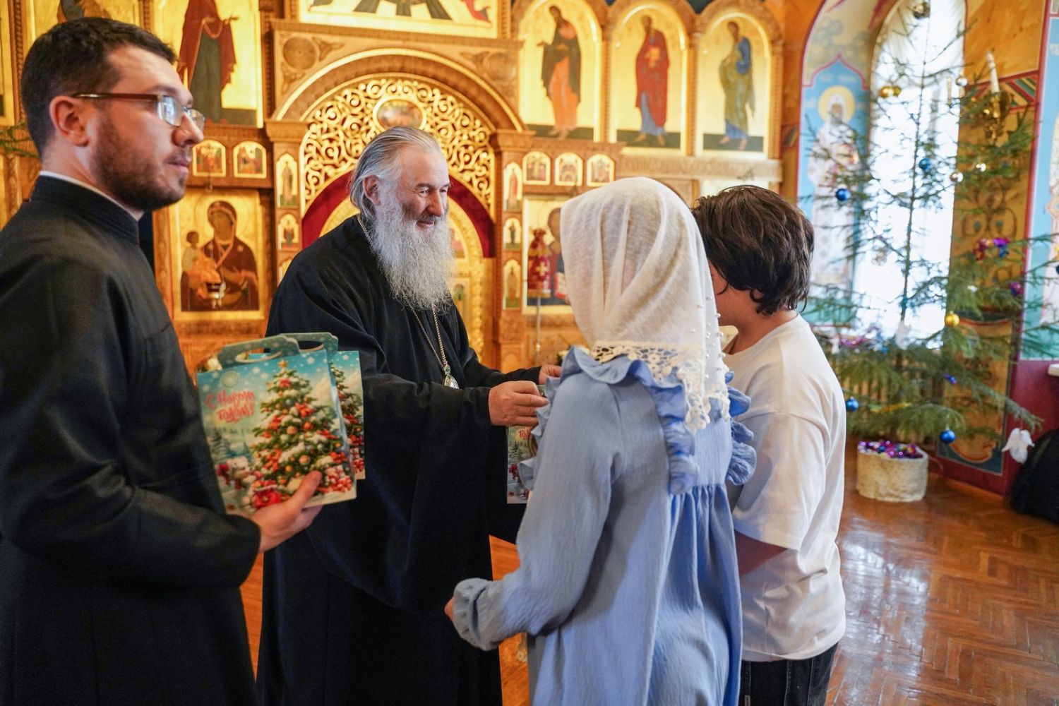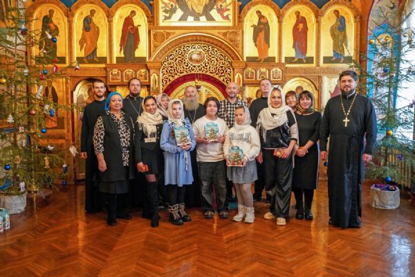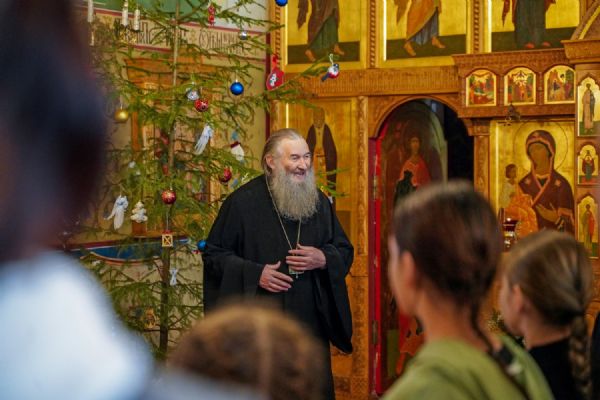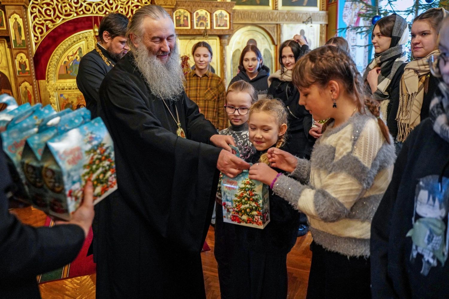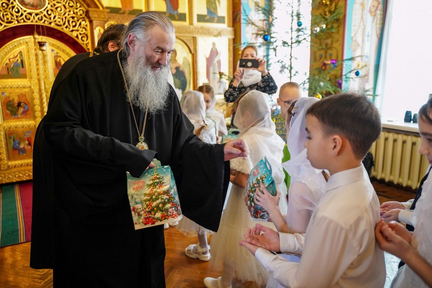 А после обеда детские коллективы с руководителями и священниками сельских храмов отправились в Йошкар-Олинское епархиальное управление поздравлять митрополита Иоанна со светлым праздником. Делясь радостью о Рождшемся Богомладенце, ребята исполнили колядки, рождественские песни и стихи, а владыка вручил детям сладкие подарки.