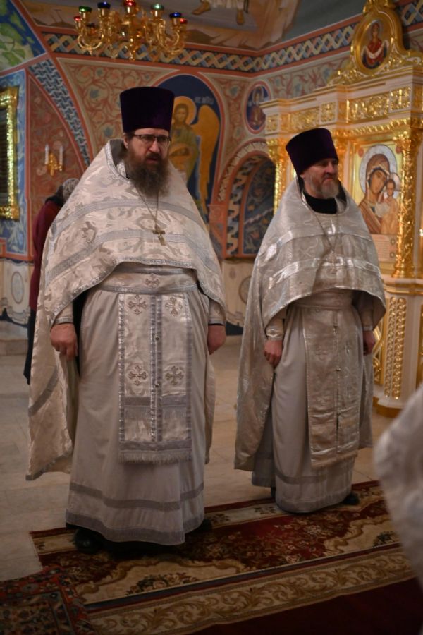 Его Высокопреосвященству сослужили клирики Вознесенского собора г. Йошкар-Олы протоиерей Андрей Норкин, иереи Владимир Глебов, Иоанн Кристев и Александр Деревяшкин, а также протодиакон Михаил Козловский. Песнопения исполнял хор храма под управлением Анны Ярошевич.