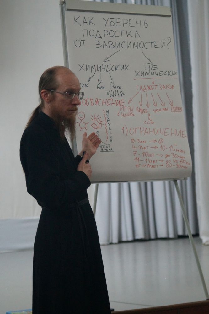 Вечером в ЦКД «Звездный» г. Волжска диакон Иоанн Клименко выступил с лекцией «Как уберечь подрастающее поколение от зависимостей (никотиновой, алкогольной, наркотической, компьютерной)? Конкретные шаги для родителей». Лектор привел классификацию зависимостей, особое внимание уделив гаджет-зависимости. Отец Иоанн отметил, что уберечь подрастающее поколение легче, чем избавить от уже сформировавшейся зависимости. Он указал на три пути: ограничение, объяснение и альтернатива, подробно объяснил каждый путь и привел примеры как из личной жизни, так и из окружающей действительности.
