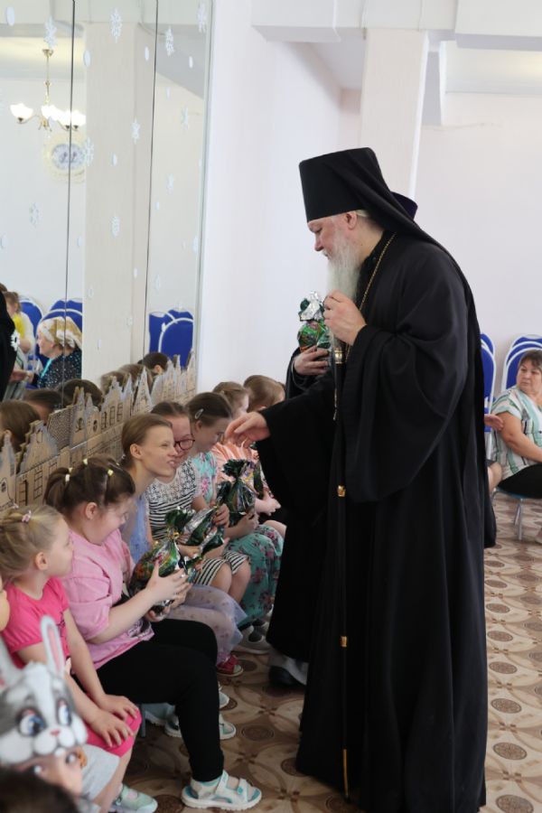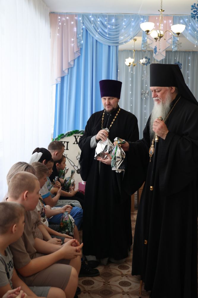 Ребята подготовили для гостей праздничные выступления. Владыка Феофан подарил всем детям рождественские подарки и преподал архиерейское благословение.