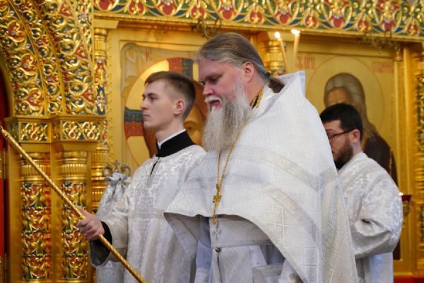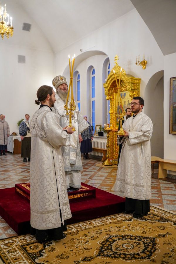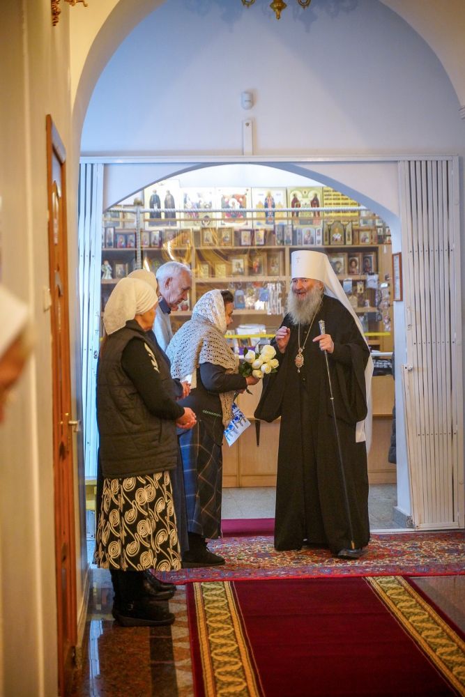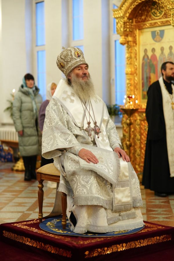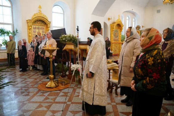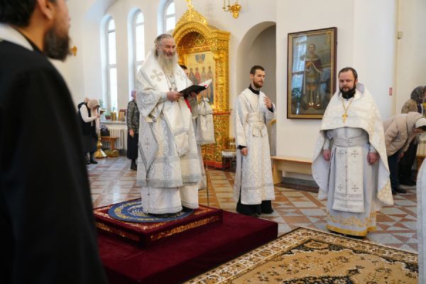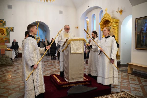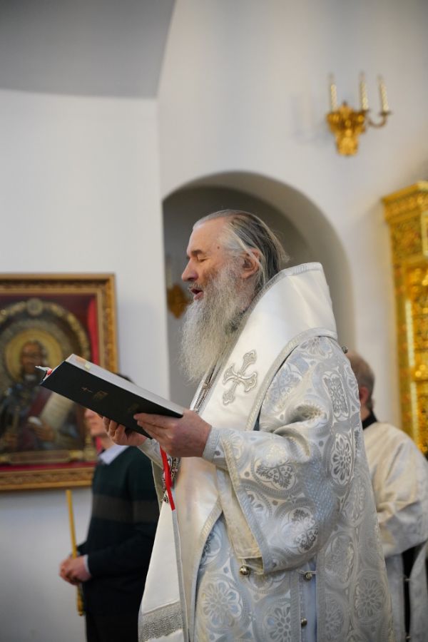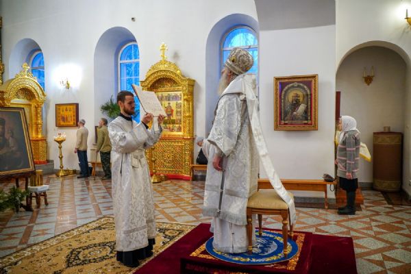 Его Высокопреосвященству сослужили настоятель храма протоиерей Александр Бачурин, клирик храма иерей Виктор Умрихин и протодиакон Михаил Козловский. Песнопения исполнял хор храма под управлением регента Елены Умрихиной.