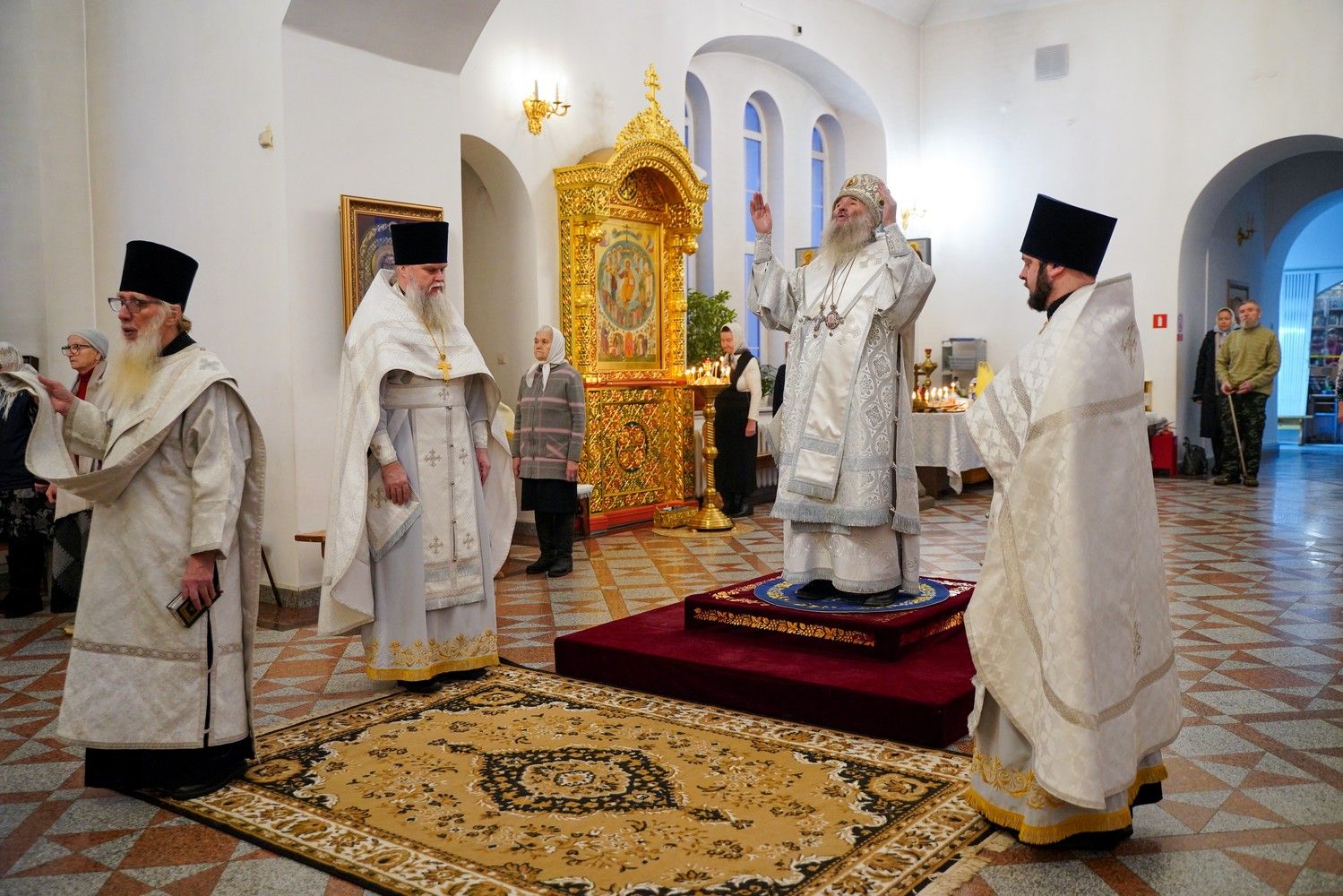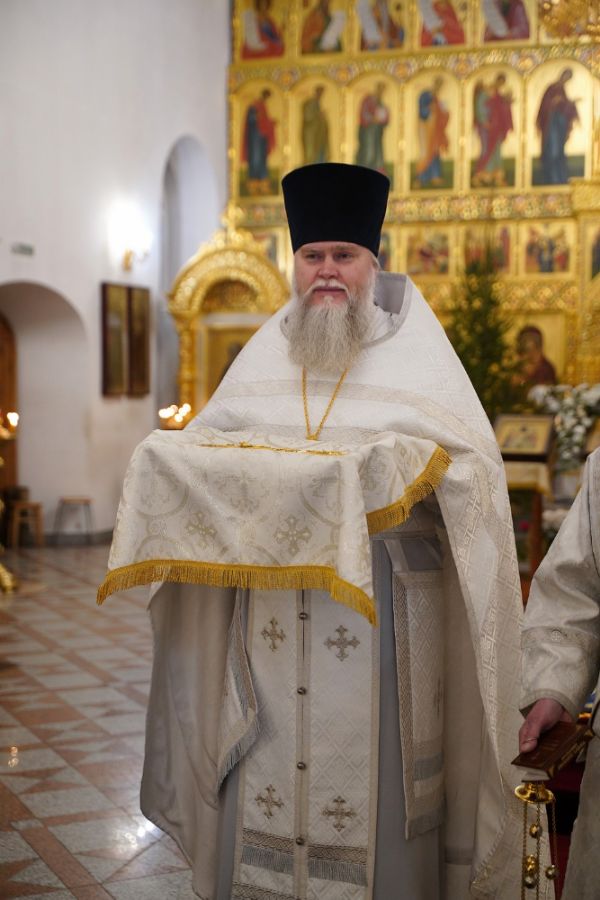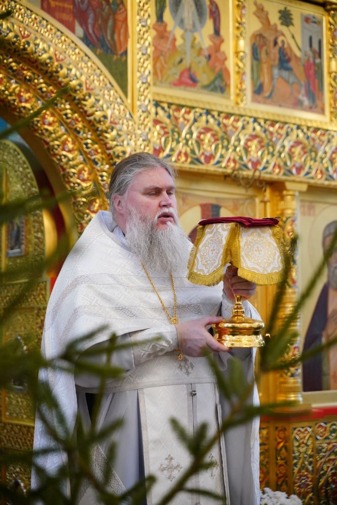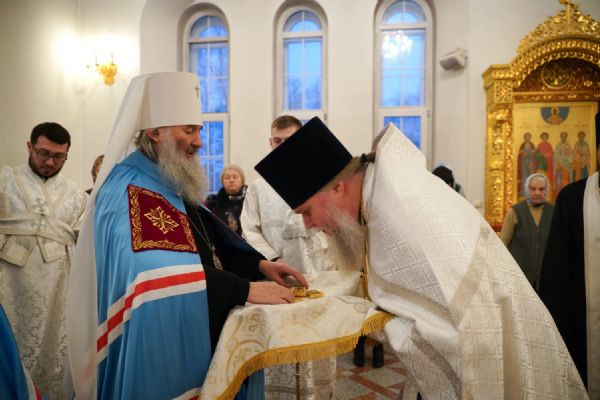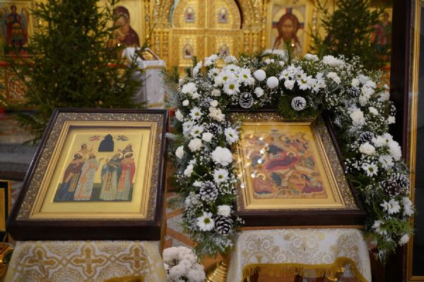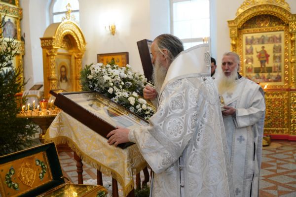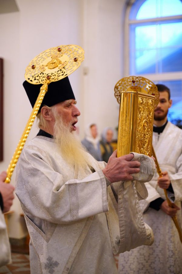 Его Высокопреосвященству сослужили настоятель храма протоиерей Александр Бачурин, клирик храма иерей Виктор Умрихин и протодиакон Михаил Козловский. Песнопения исполнял хор храма под управлением регента Елены Умрихиной.