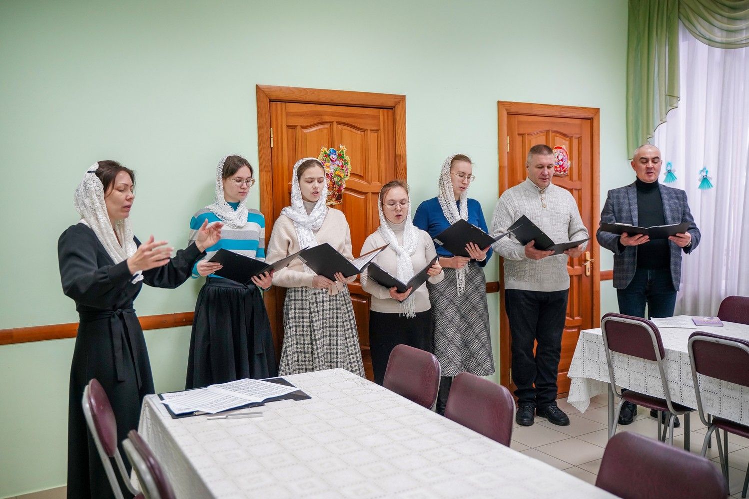 После богослужения певчие в трапезной храма поздравили владыку с Рождеством Христовым, исполнив для него праздничные песнопения.