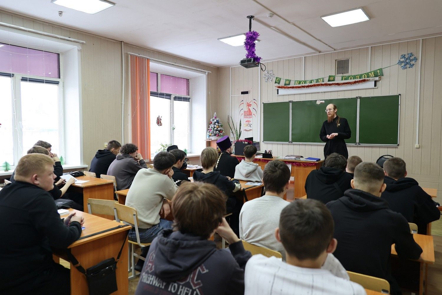 Утром 14 января диакон Иоанн Клименко встретился с первоклассниками Волжского городского лицея. Здесь отец Иоанн провел урок трезвости. Затем лектор побеседовал с учениками второго класса на тему «Игры реальные и компьютерные: сходства и различия».