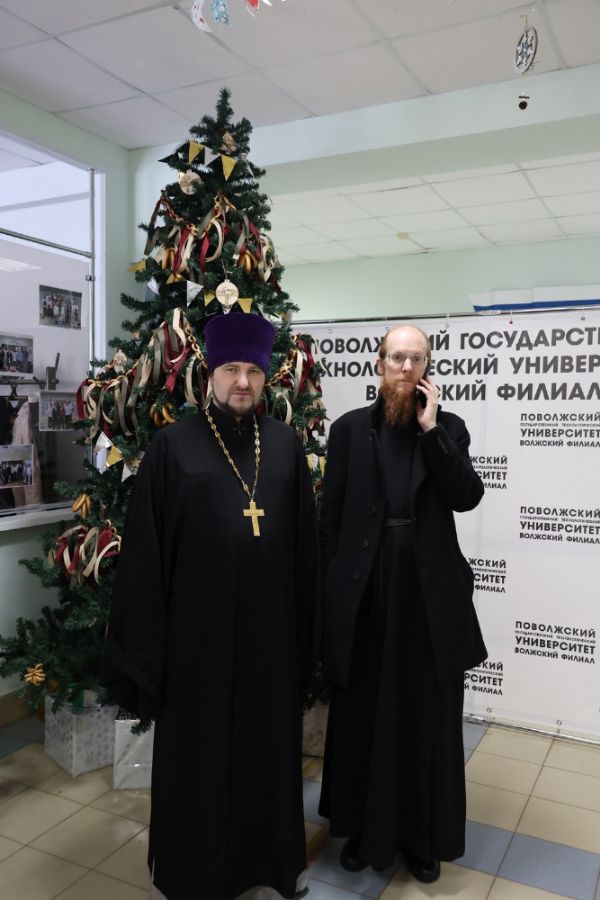 Далее диакон Иоанн в Волжском филиале Поволжского государственного технологического университета прочитал лекцию «Профилактика гаджет-зависимости» студентам третьего курса специальности «Монтаж технического оборудования».