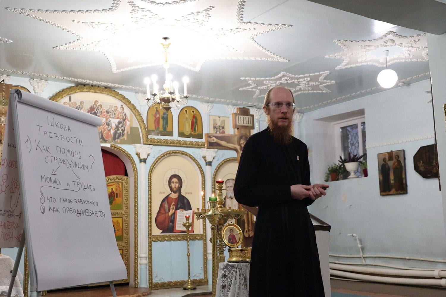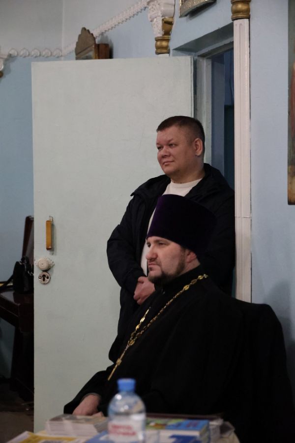 Вечером диакон Иоанн Клименко в нижнем храме Никольского кафедрального собора прочитал для горожан лекцию «Как преодолеть зависимость? Как родственникам убедить зависимого?» Лектор разобрал следующие вопросы: как помочь родственникам зависимых людей; как помочь зависимым от алкоголя. Он особо подчеркнул, что родственникам злоупотребляющих алкоголем людей необходимо приобретать знания в этой проблемной области, чтобы попытаться избавить близкого человека от влияния алкоголя.