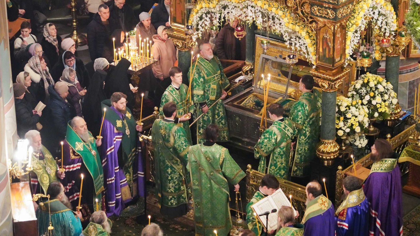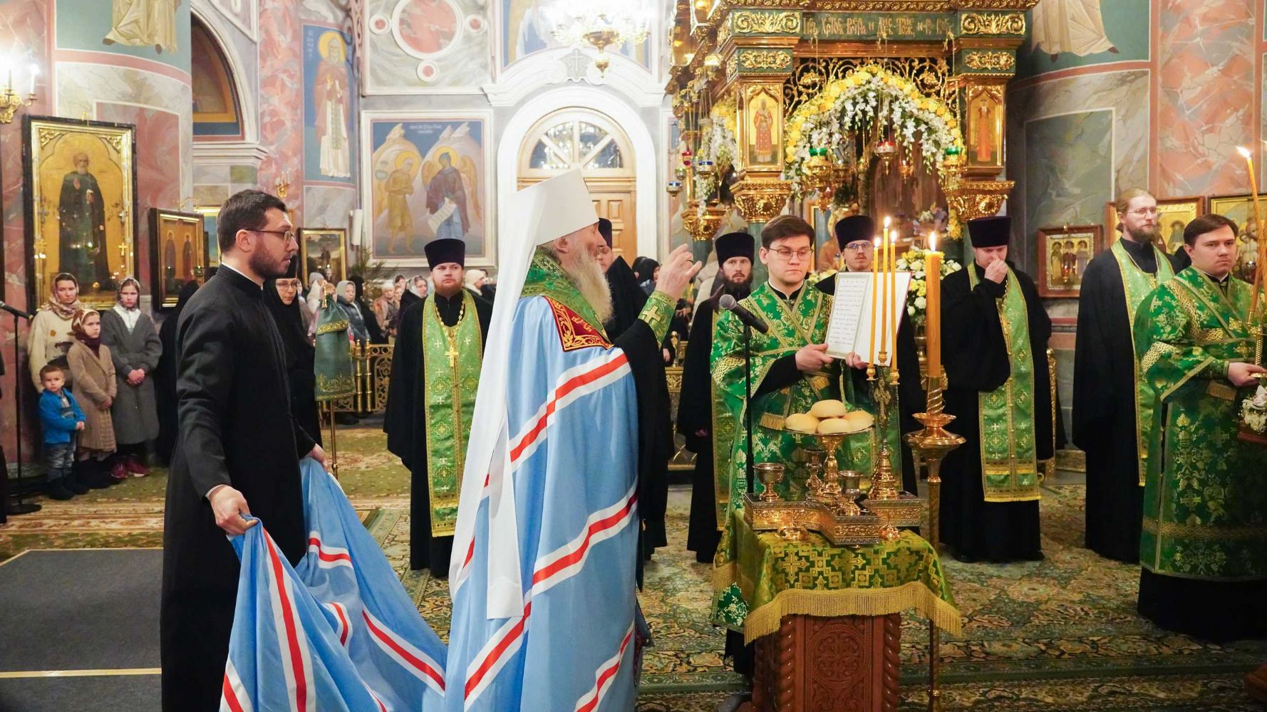 Богослужение возглавил митрополит Нижегородский и Арзамасский Георгий. Ему сослужили митрополит Йошкар-Олинский и Марийский Иоанн, митрополит Саранский и Мордовский Зиновий, митрополит Пензенский и Нижнеломовский Серафим, архиепископ Витебский и Оршанский Димитрий, епископ Краснослободский и Темниковский Климент, викарий Нижегородской епархии епископ Балахнинский Илия, епископ Канашский и Беловолжский Стефан, епископ Карасукский и Ордынский Варнава, епископ Выксунский и Павловский Гедеон, епископ Сердобский и Спасский Митрофан, епископ Ардатовский и Атяшевский Мелетий, епископ Щигровский и Мантуровский Феогност, епископ Алапаевский и Ирбитский Сергий, а также духовенство Нижегородской митрополии.