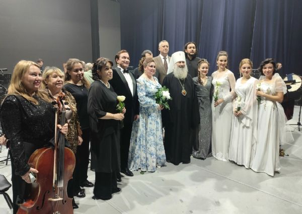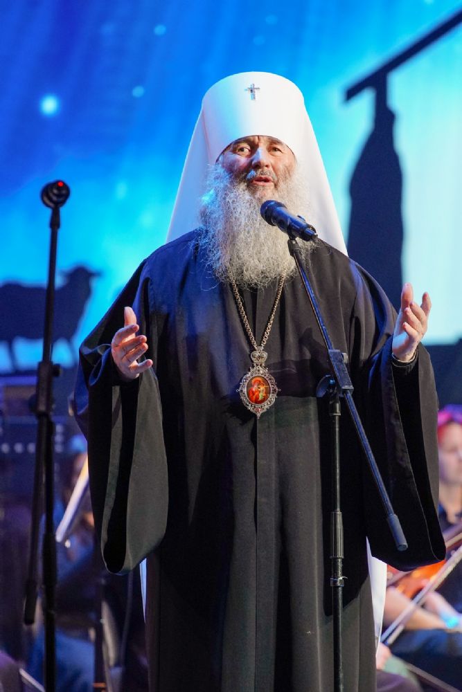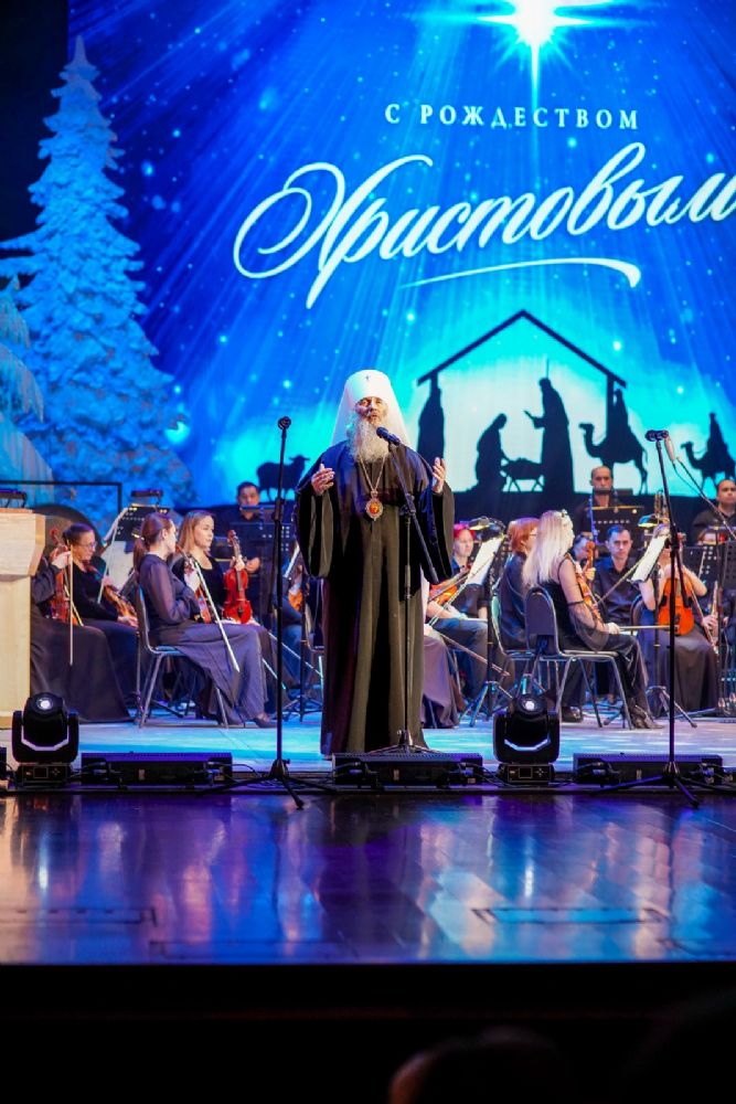 Концерт открыл академический хор колледжа культуры им. Палантая, исполнив рождественский тропарь, затем митрополит Иоанн обратился к собравшимся в переполненном зале зрителям с архипастырским словом.