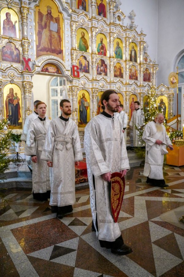13 января вечером, в канун праздника Обрезания Господня, дня памяти святителя Василия Великого, митрополит Йошкар-Олинский и Марийский Иоанн возглавил всенощное бдение в Воскресенском соборе г. Йошкар-Олы.
