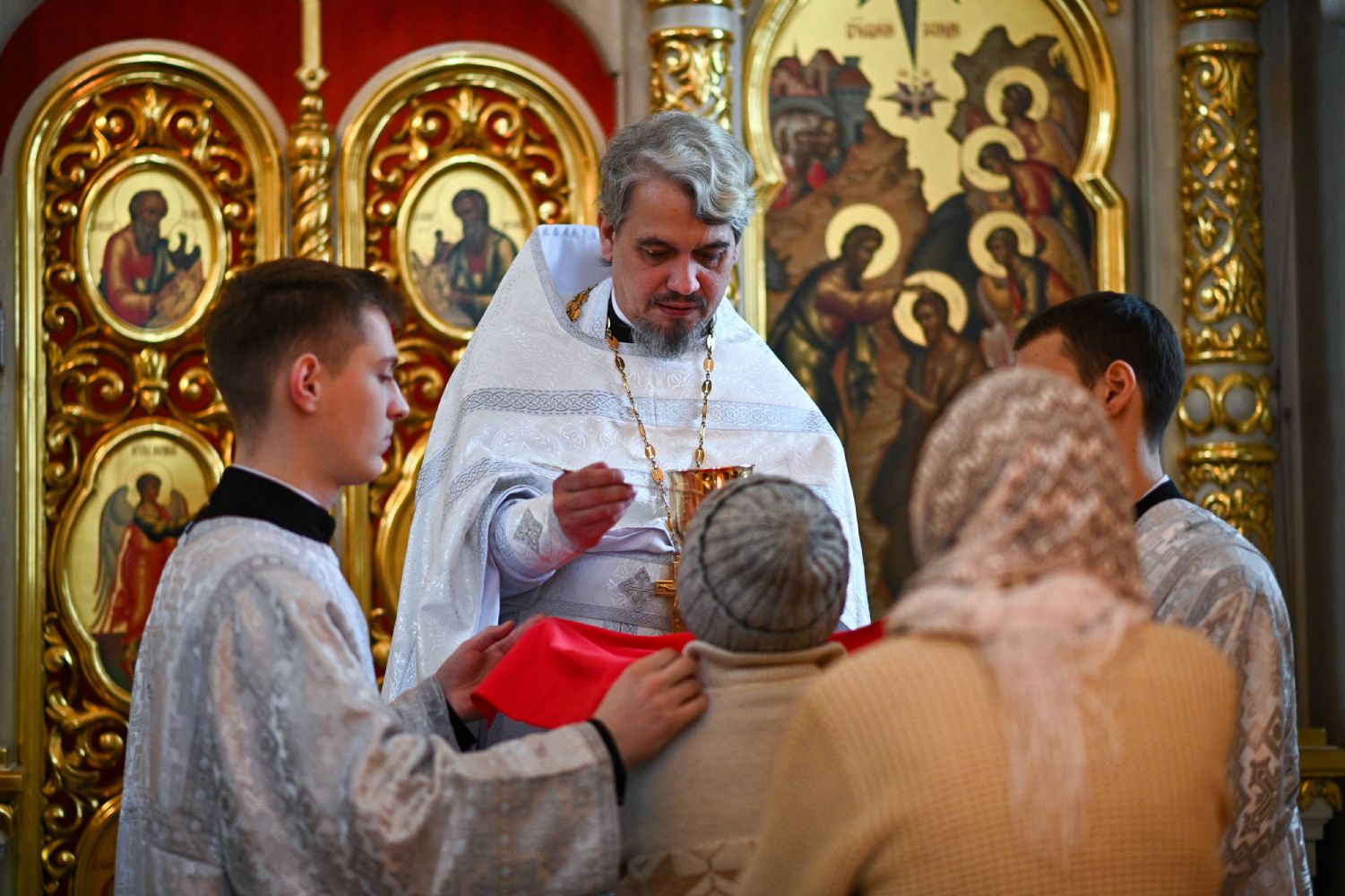 Именуется сегодняшний праздник еще и Просвещением, потому что в этот день многие новообращенные принимали святое Крещение, просвещаясь светом Христовым. Не случайно за богослужением мы слышали песнопение: Елицы во Христа крестистеся, во Христа облекостеся, аллилуия!