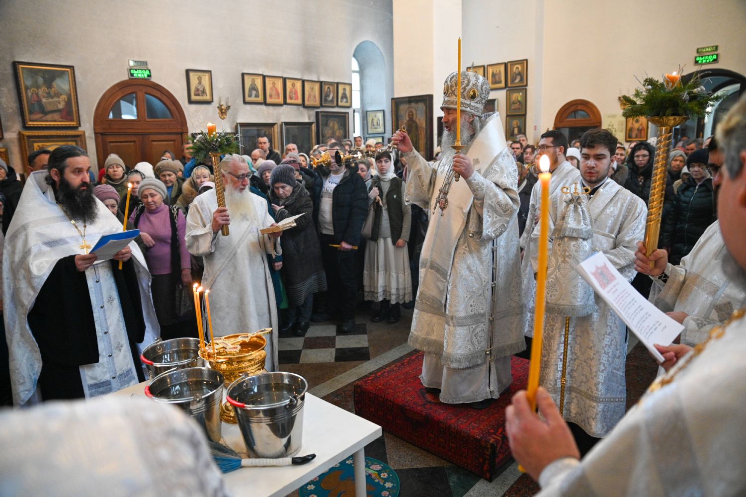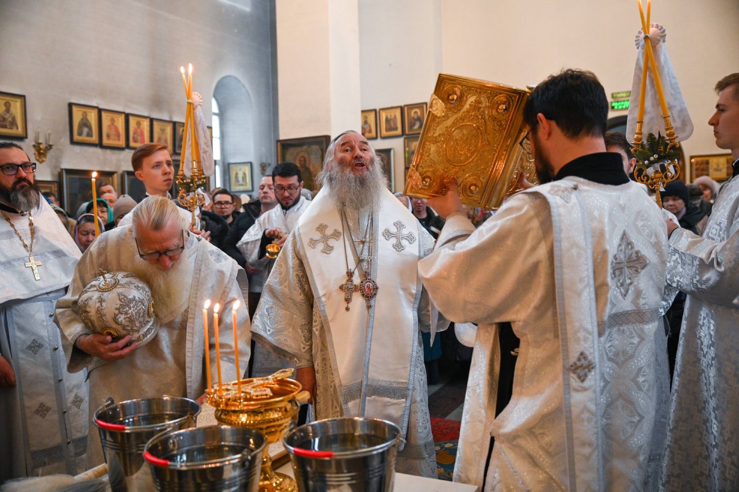 По окончании Литургии митрополит Иоанн возглавил чин великого освящения воды, после чего обратился к собравшимся с архипастырским словом, напомнив евангельские события праздника Богоявления и раскрыв его глубочайший духовный смысл.