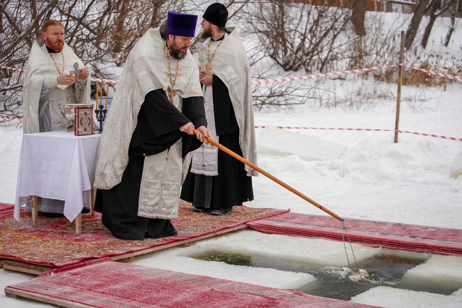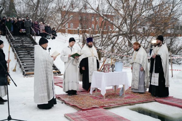 Праздник в Вознесенском соборе начался с ранней Божественной литургии и продолжился крестным ходом на Кокшагу и освящением иордани. Чин великого освящения воды совершил благочинный Йошкар-Олинского церковного округа, клирик Вознесенского собора протоиерей Андрей Норкин в сослужении духовенства собора. После этого отец Андрей щедро окропил собравшихся.