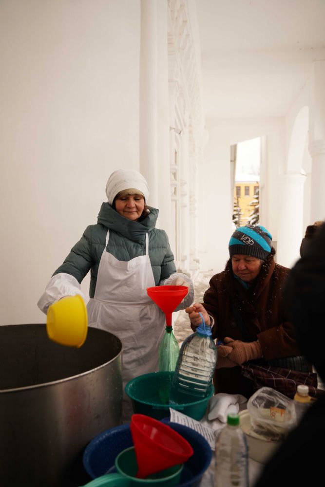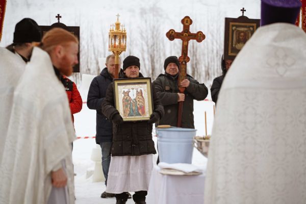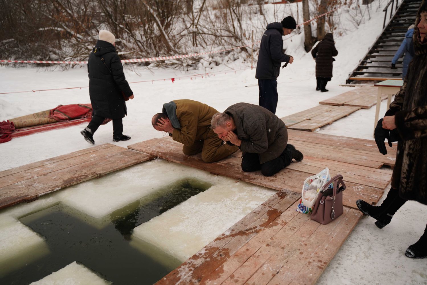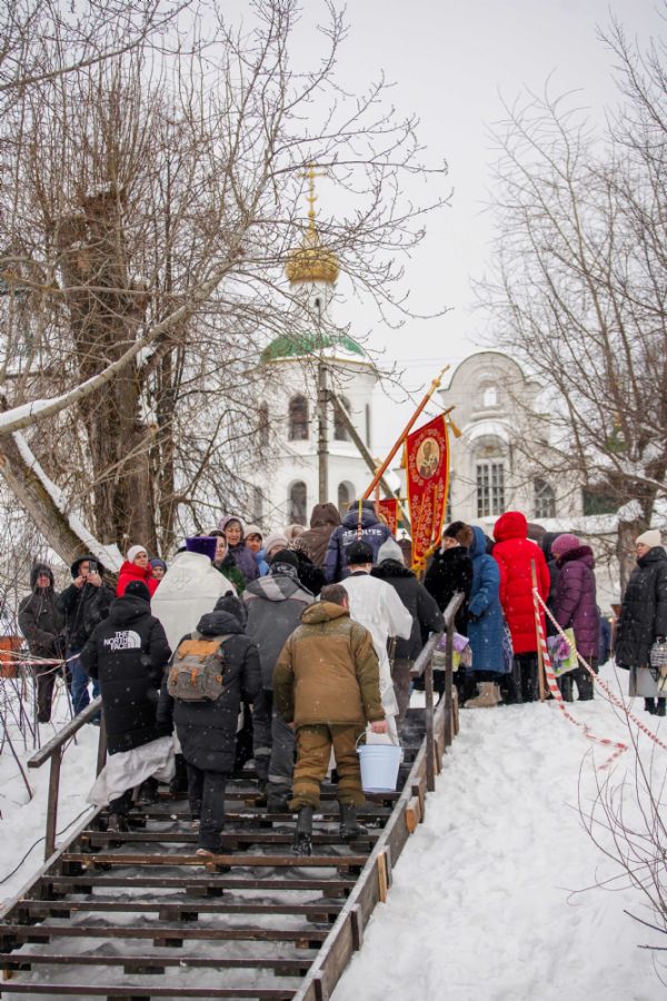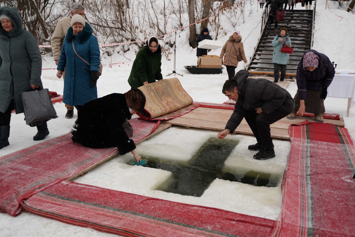 И в течение всего дня поток людей на иордань за водой не иссякал. А желающие окунуться шли к оборудованной купели у вантового моста на Кокшаге.