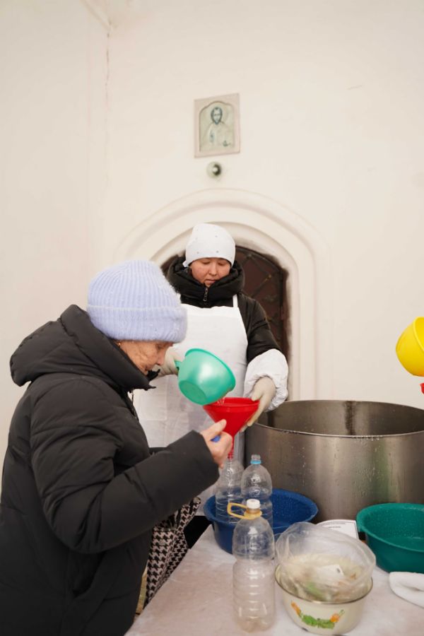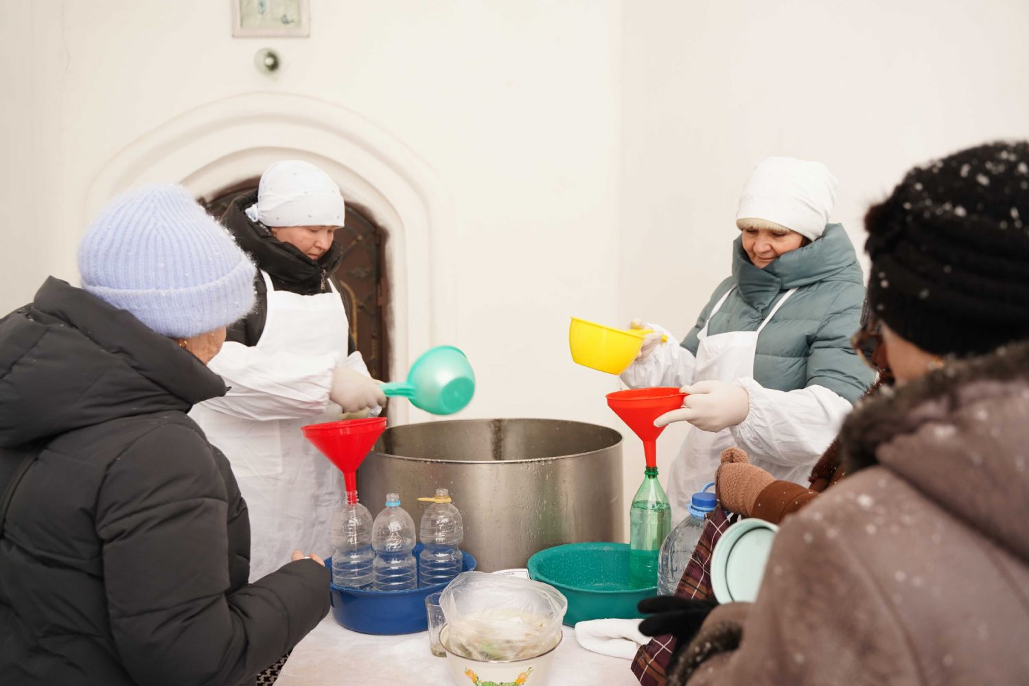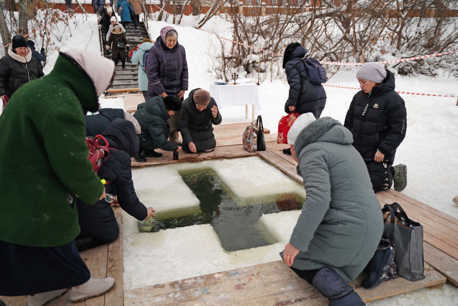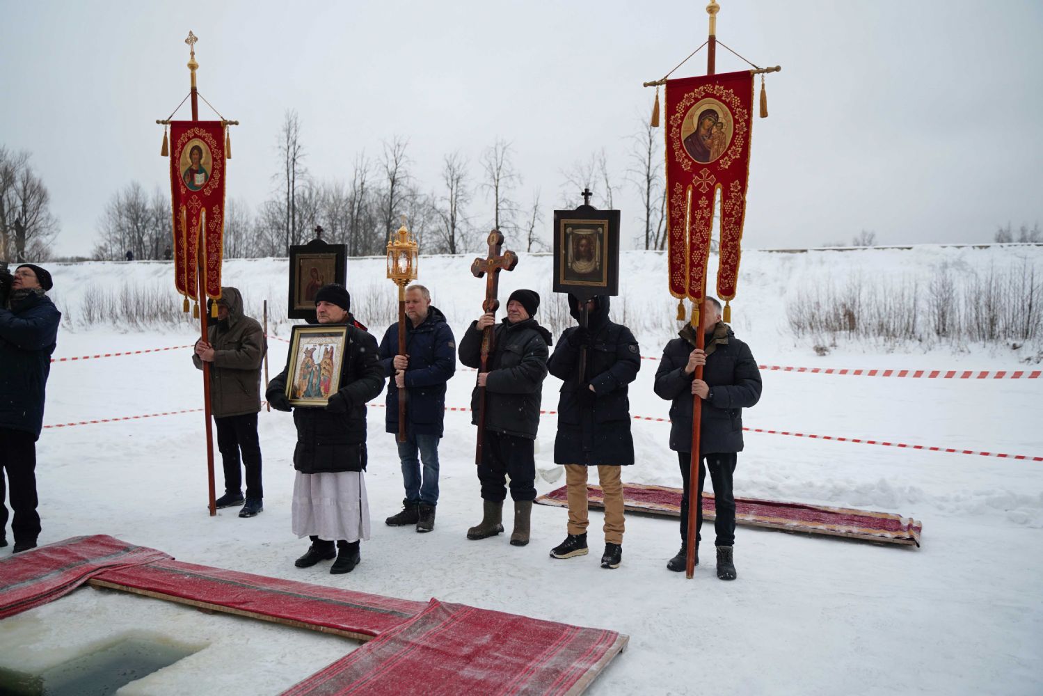 И в течение всего дня поток людей на иордань за водой не иссякал. А желающие окунуться шли к оборудованной купели у вантового моста на Кокшаге.