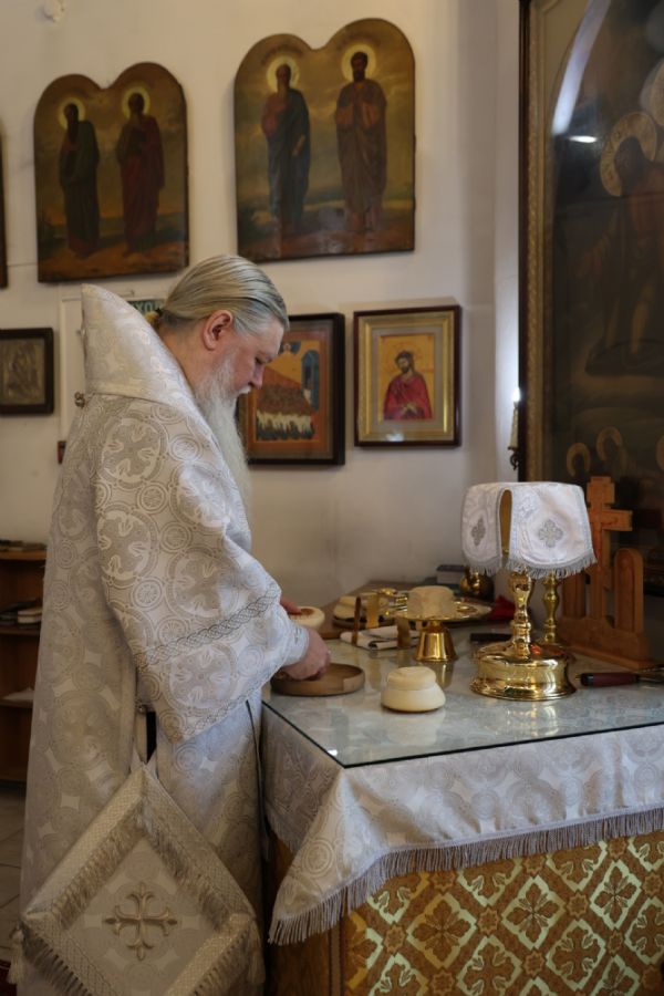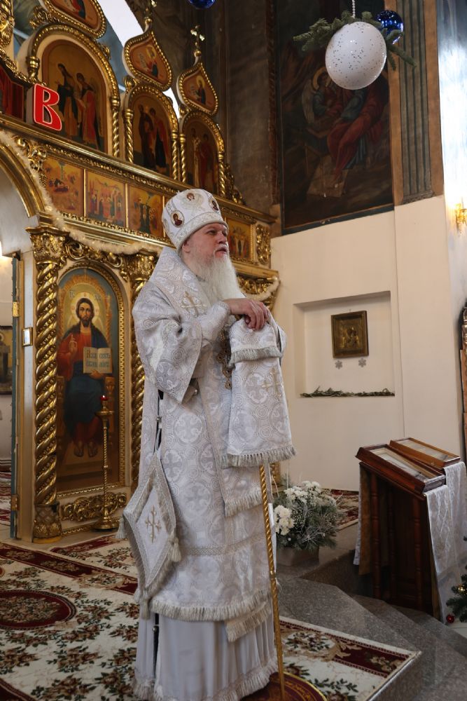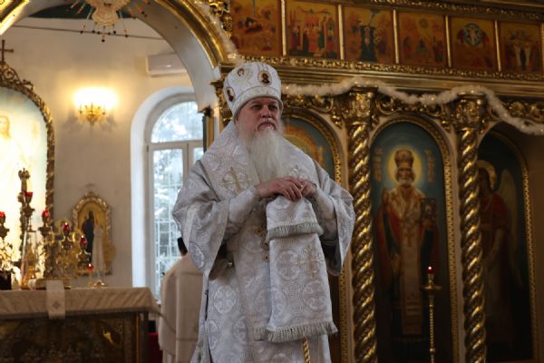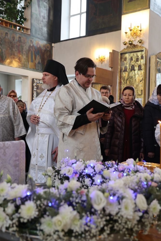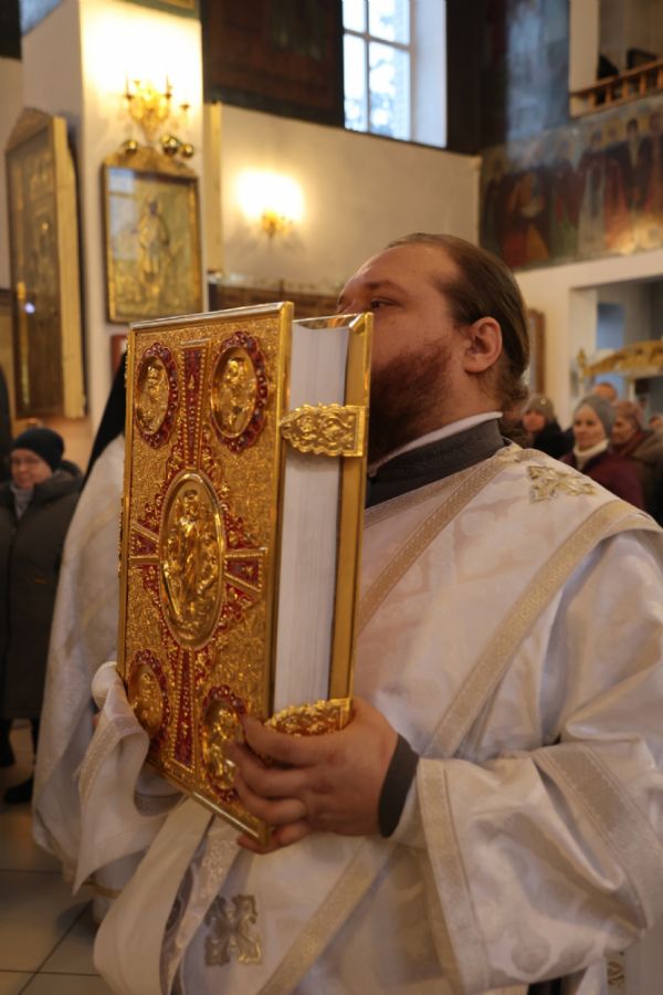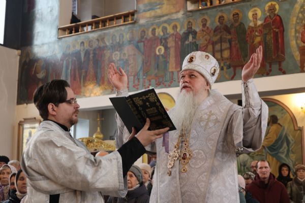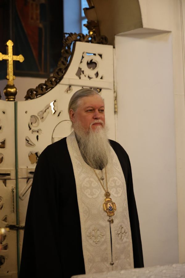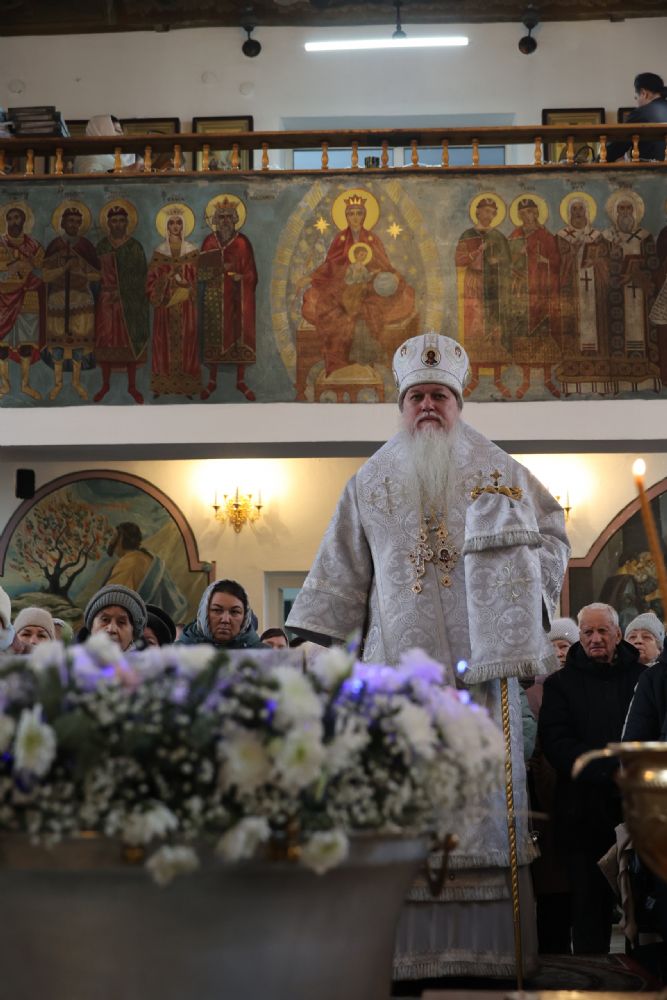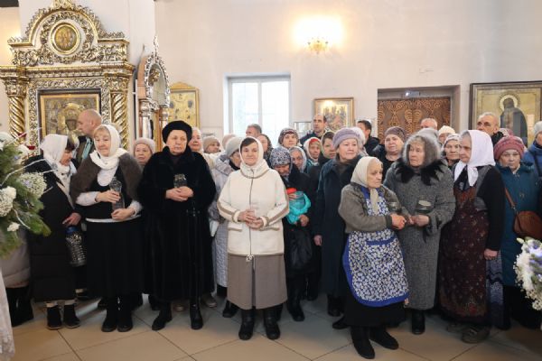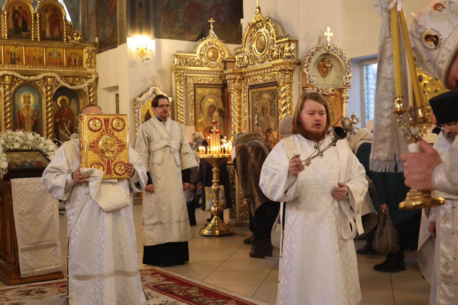 Его Преосвященству сослужили клирики собора иерей Николай Аникин, иеромонах Александр (Чеборов), иеромонах Питирим (Мосякин), диакон Иоанн Захаров и диакон Александр Викторов. Песнопения исполнял народный хор под управлением Евгения Чигарова.