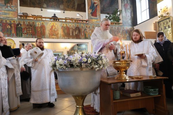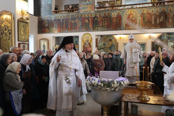 По окончании Литургии архипастырь в сослужении духовенства совершил чин Великого освящения воды и щедро окропил собравшихся.
