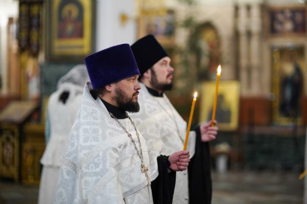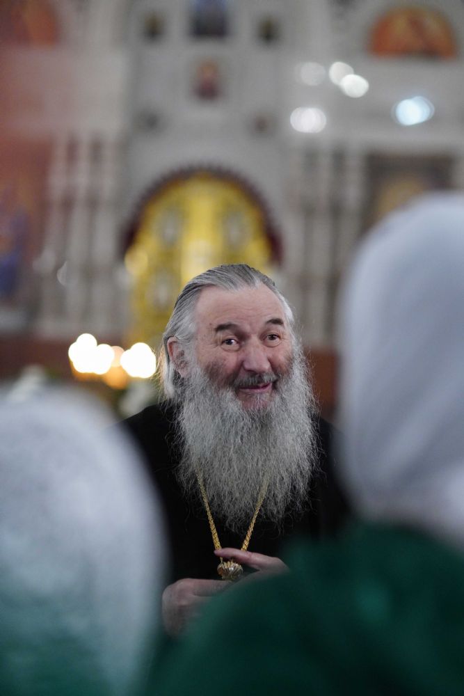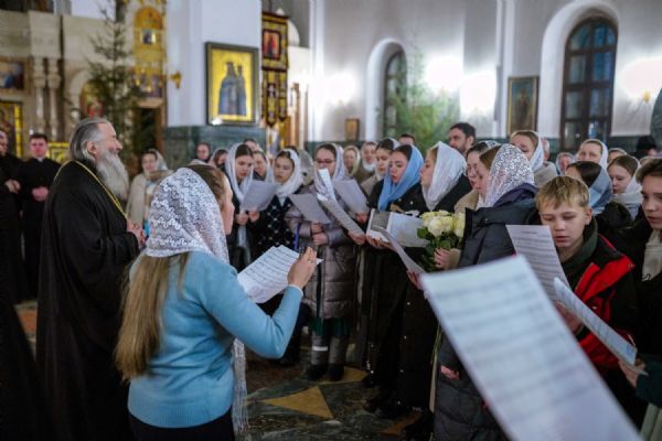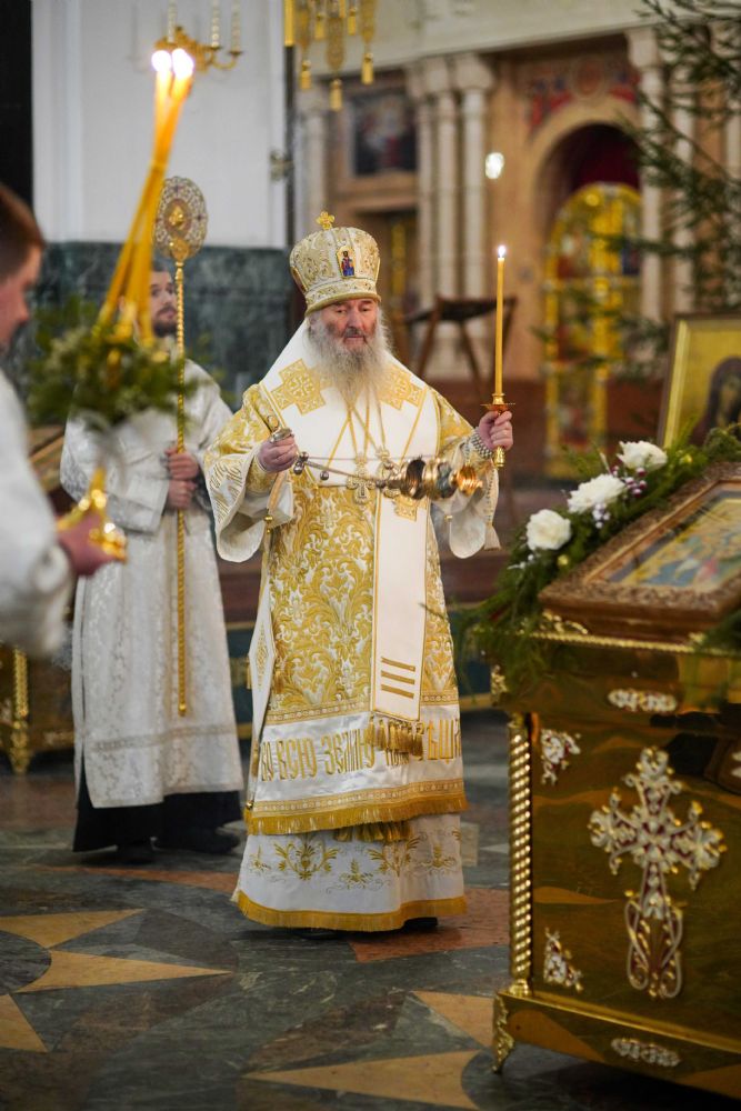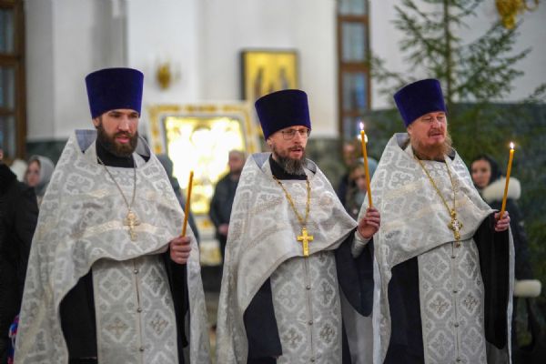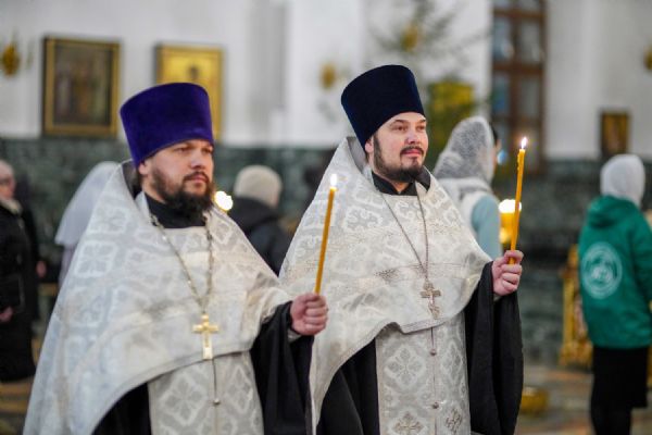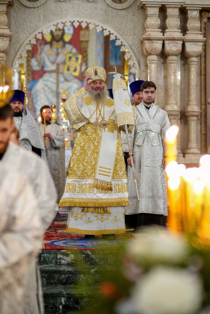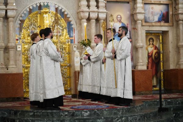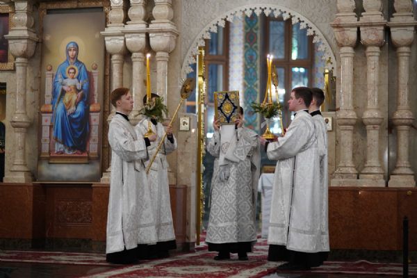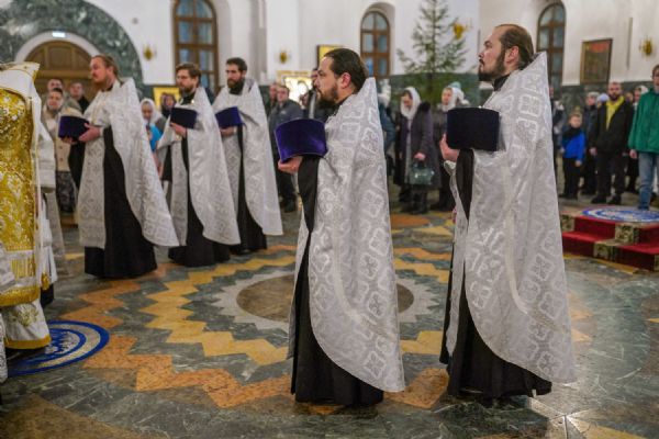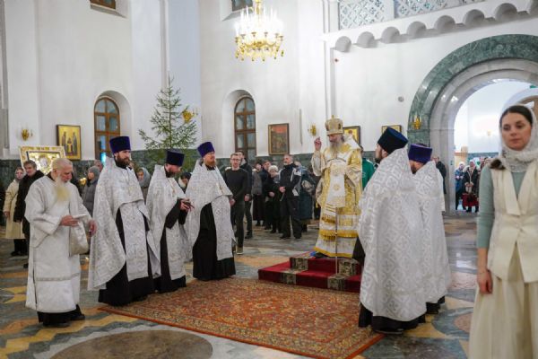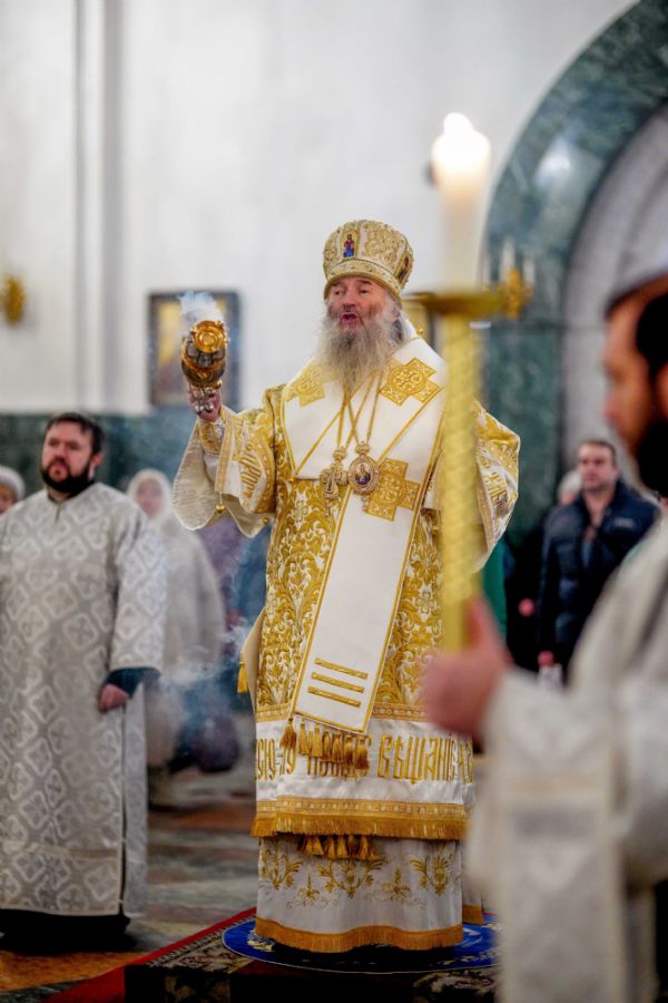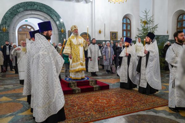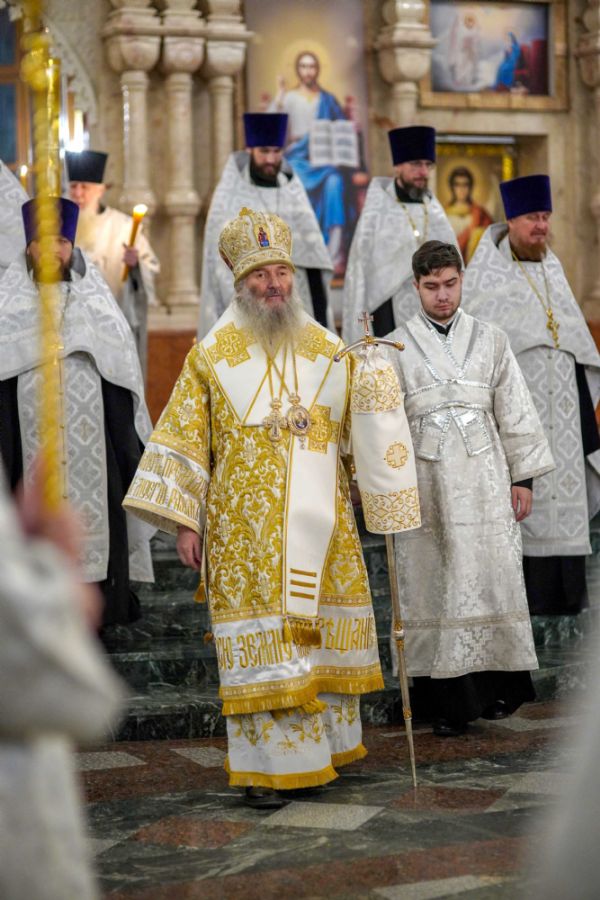 Его Высокопреосвященству сослужили ключарь кафедрального собора протоиерей Сергий Поглазов, клирики собора иереи Никифор Захаров, Евгений Самойлов, Александр Староверов и Иоанн Милютин, диакон Артемий Бобоч, а также протодиакон Михаил Козловский. Песнопения исполнял архиерейский детско-юношеский хор «Благовест» под управлением регента Надежды Поздеевой.