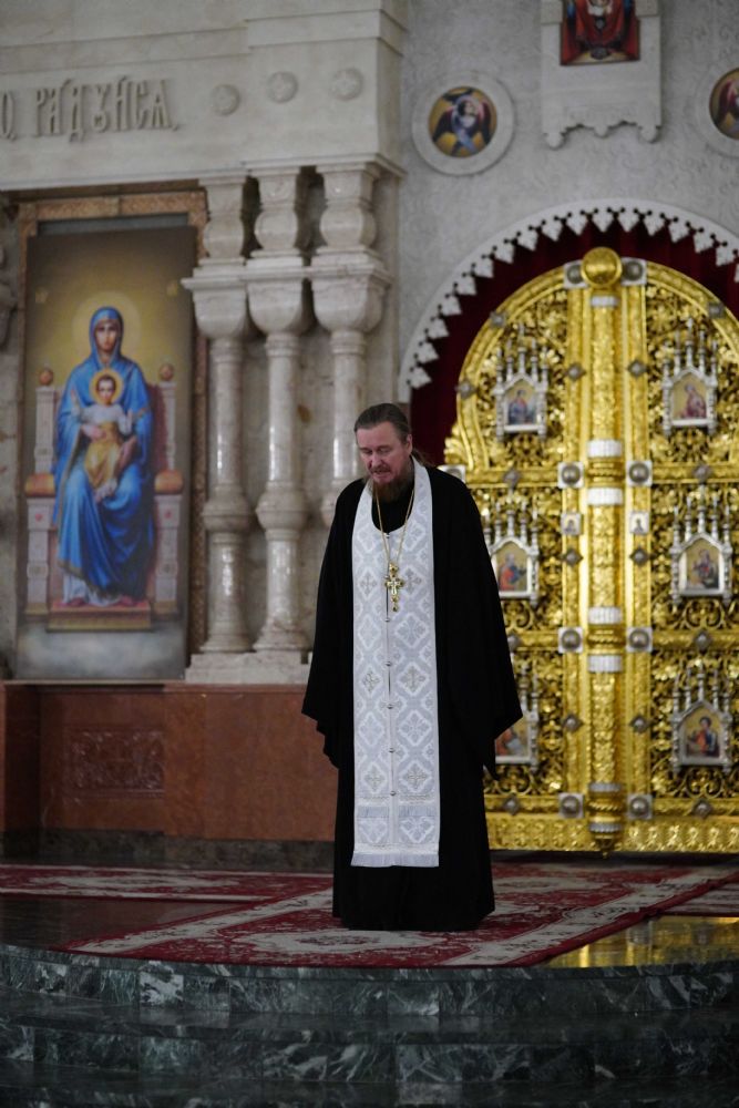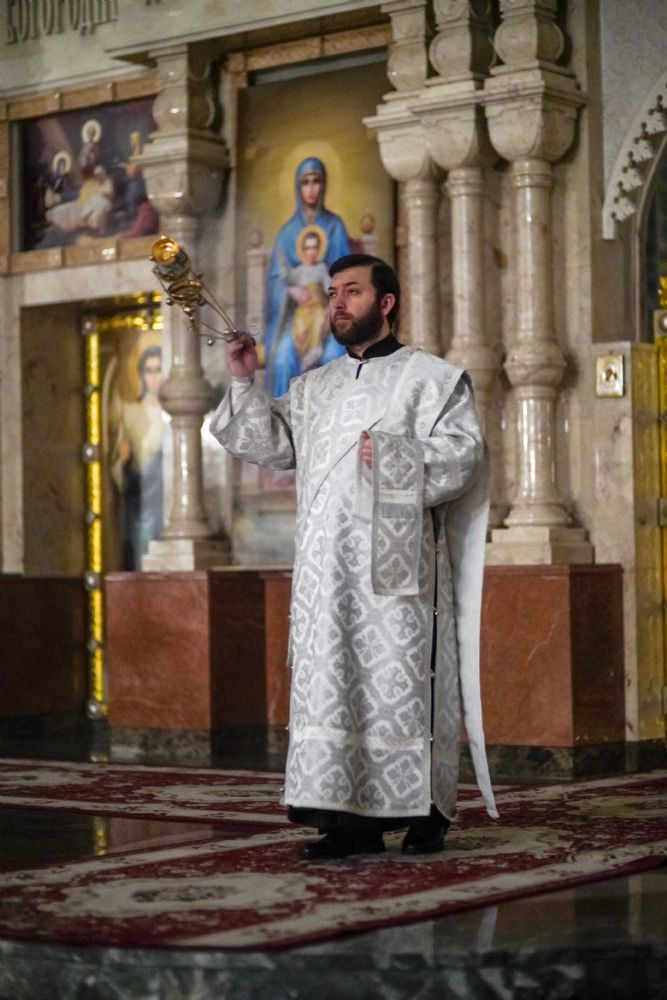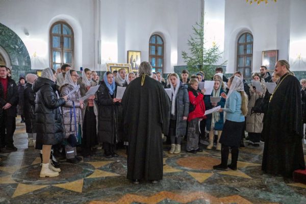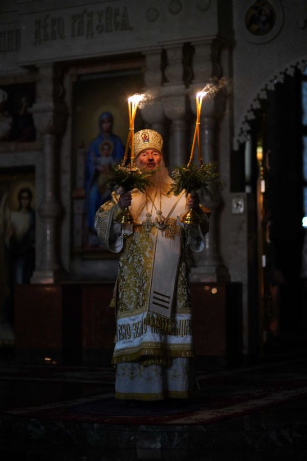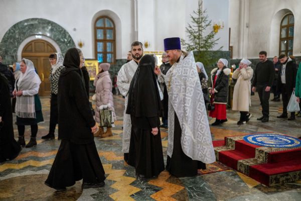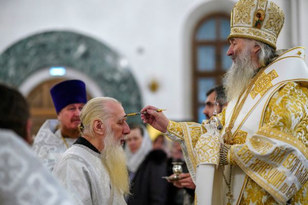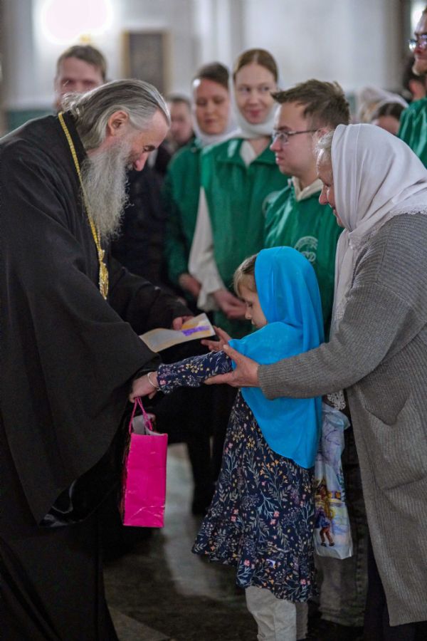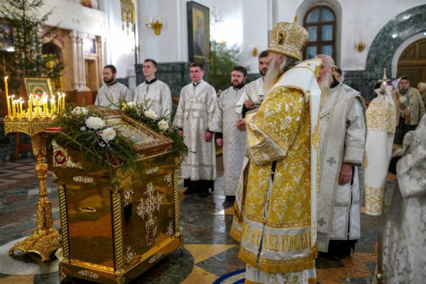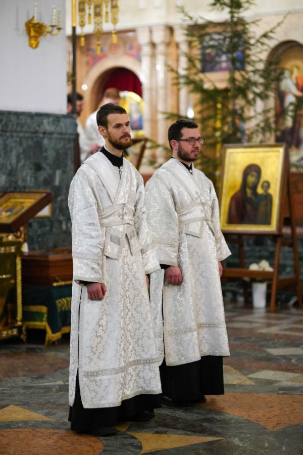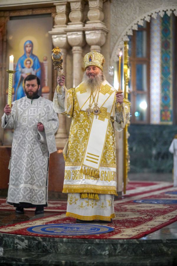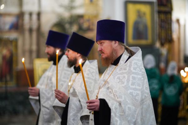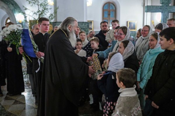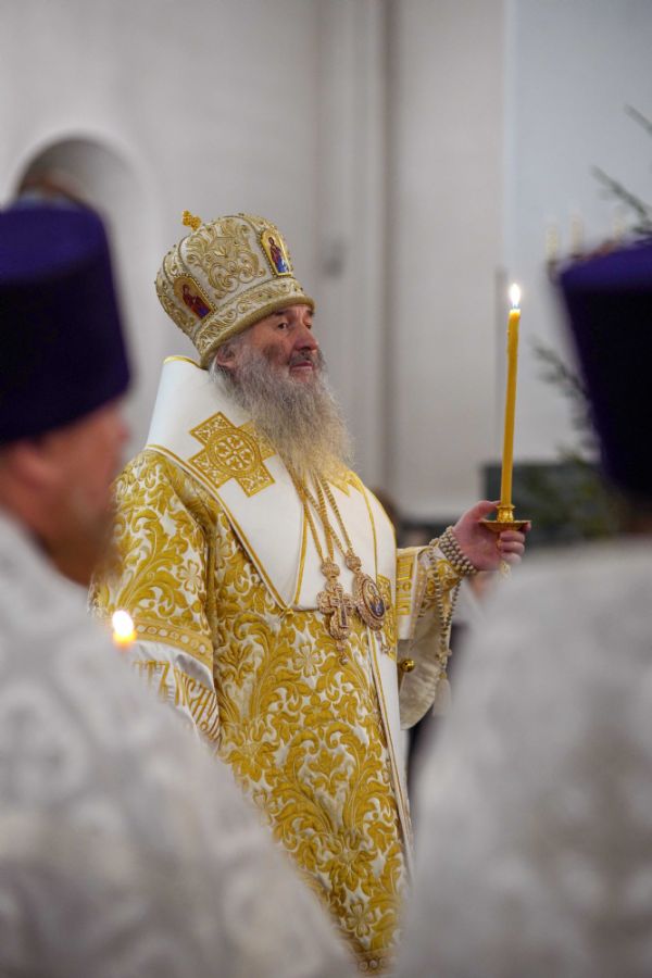 Его Высокопреосвященству сослужили ключарь кафедрального собора протоиерей Сергий Поглазов, клирики собора иереи Никифор Захаров, Евгений Самойлов, Александр Староверов и Иоанн Милютин, диакон Артемий Бобоч, а также протодиакон Михаил Козловский. Песнопения исполнял архиерейский детско-юношеский хор «Благовест» под управлением регента Надежды Поздеевой.