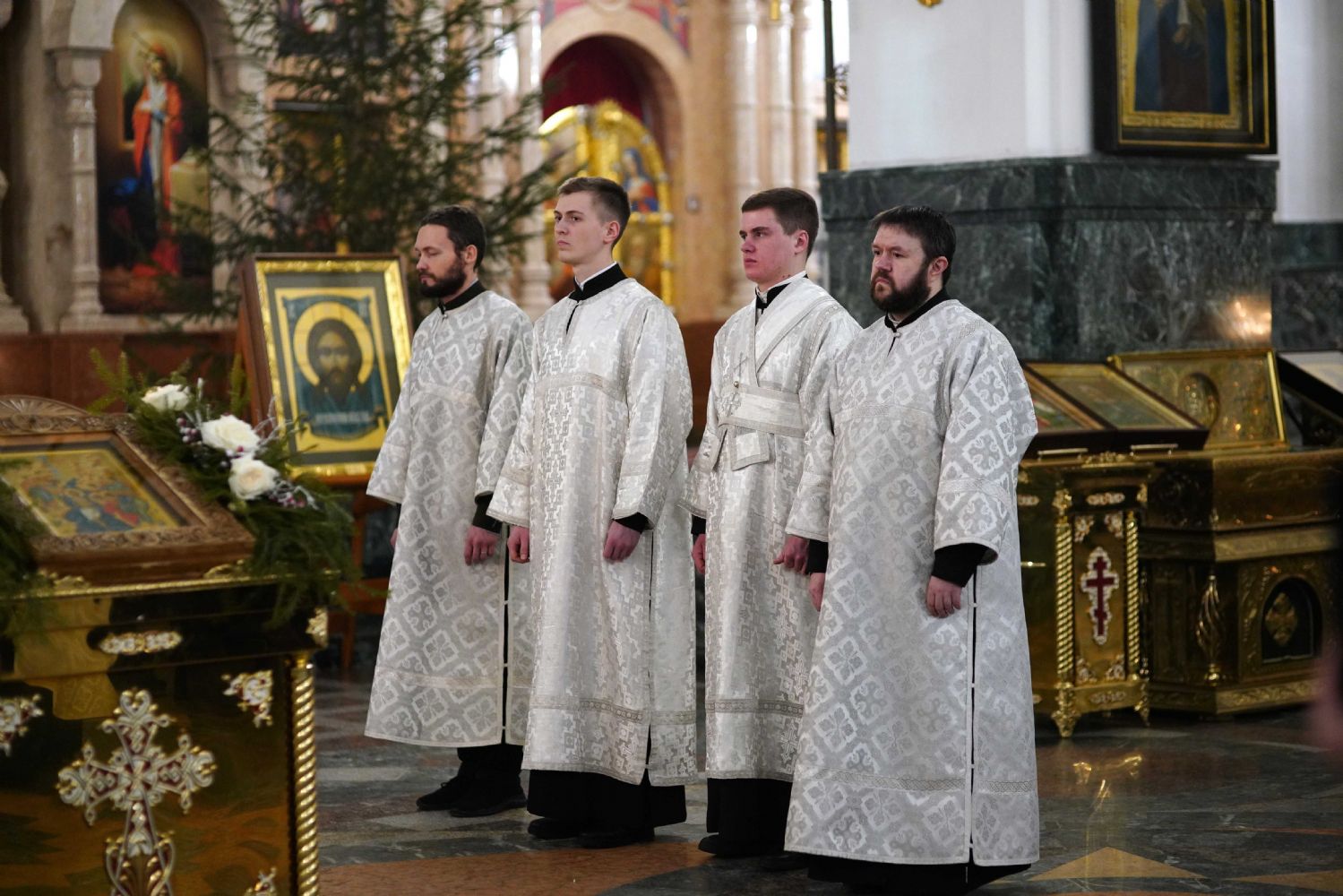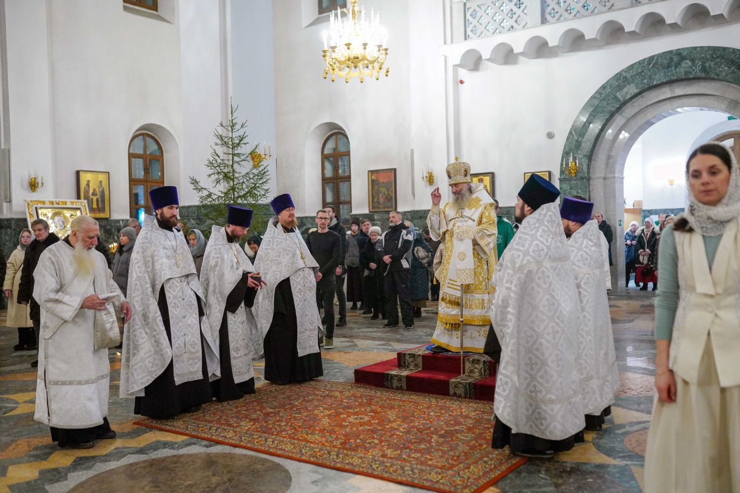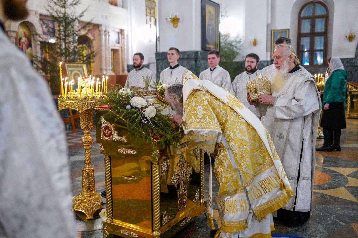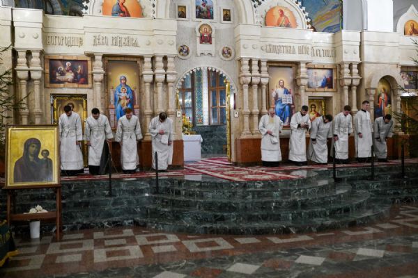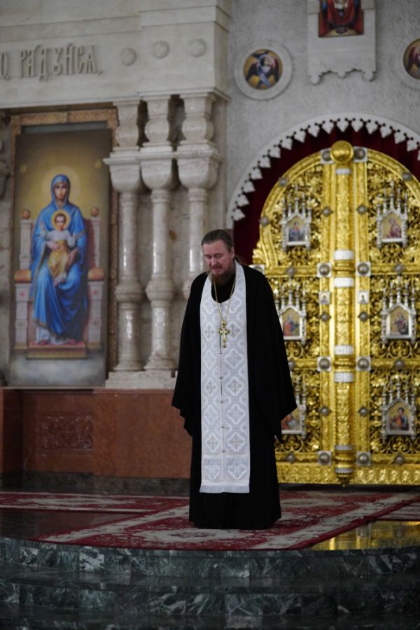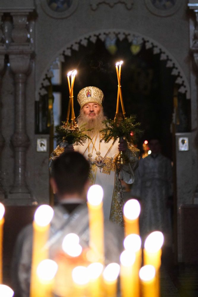 Его Высокопреосвященству сослужили ключарь кафедрального собора протоиерей Сергий Поглазов, клирики собора иереи Никифор Захаров, Евгений Самойлов, Александр Староверов и Иоанн Милютин, диакон Артемий Бобоч, а также протодиакон Михаил Козловский. Песнопения исполнял архиерейский детско-юношеский хор «Благовест» под управлением регента Надежды Поздеевой.