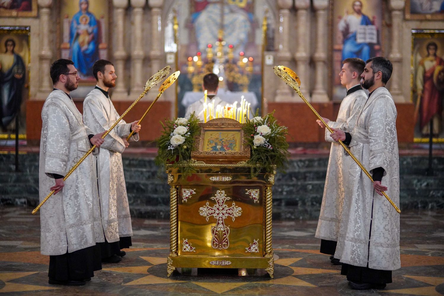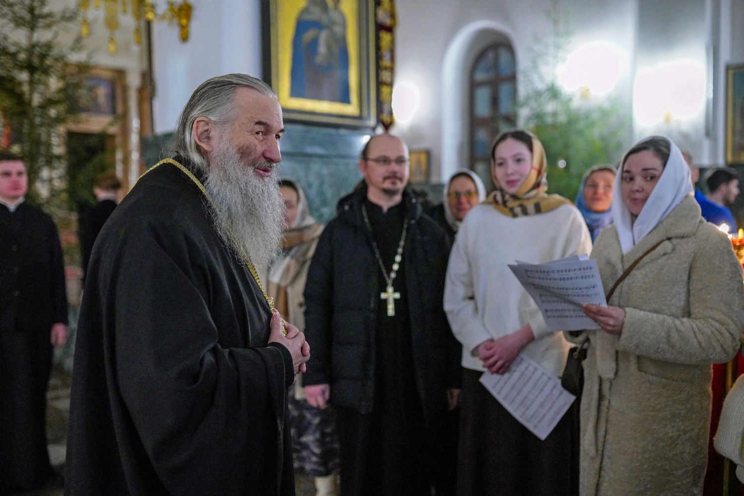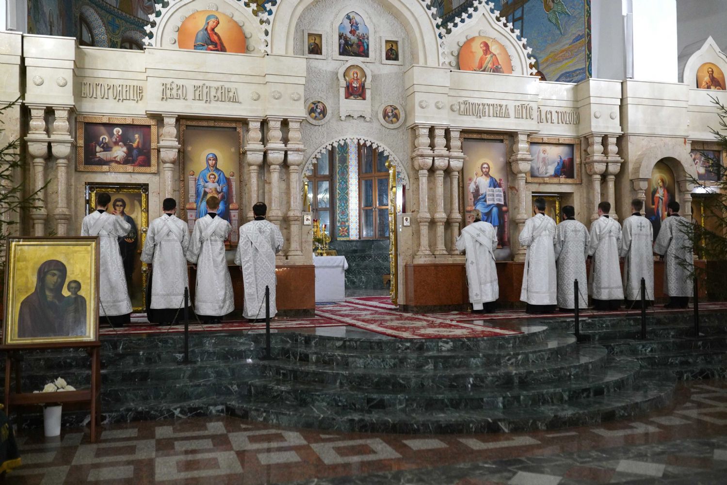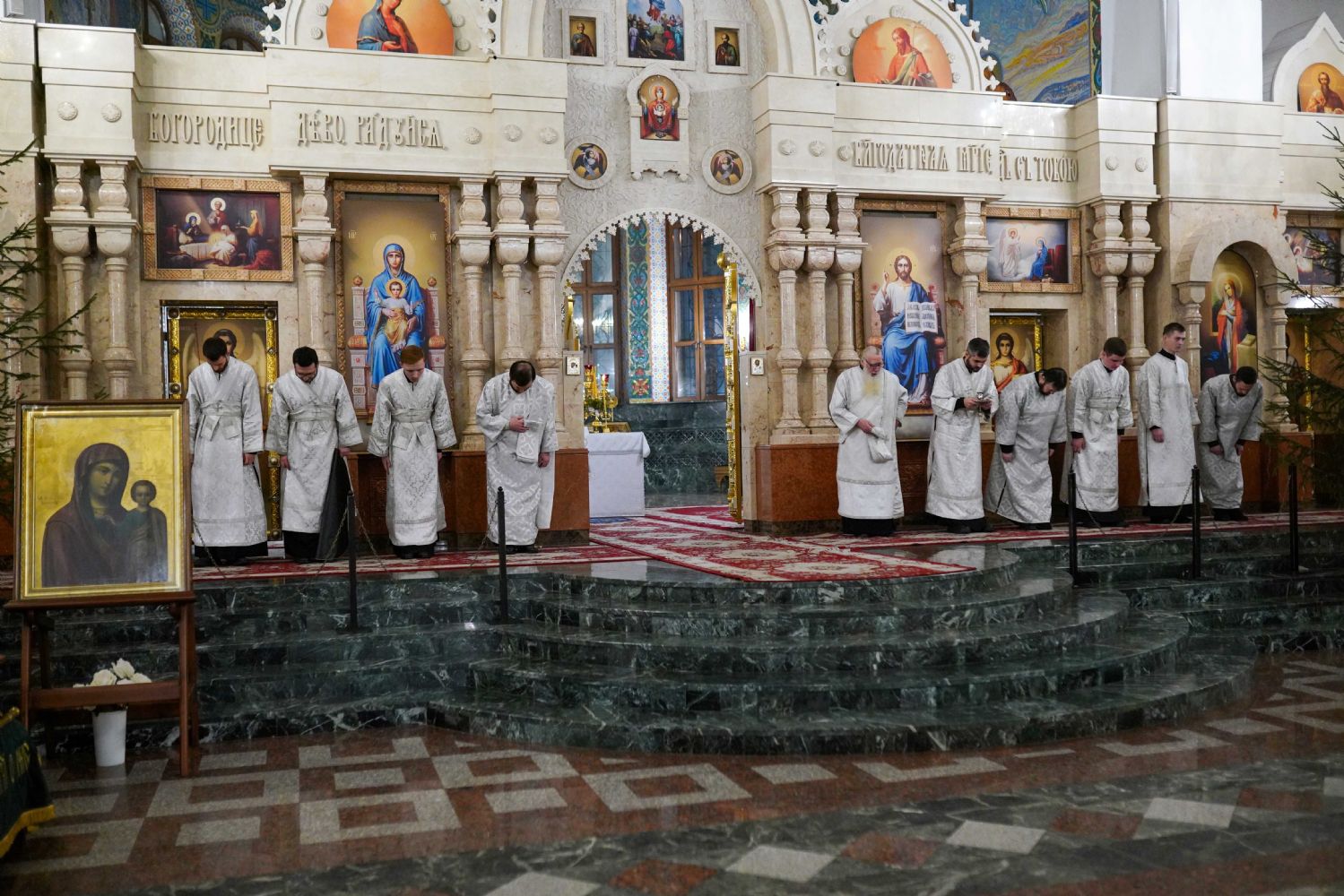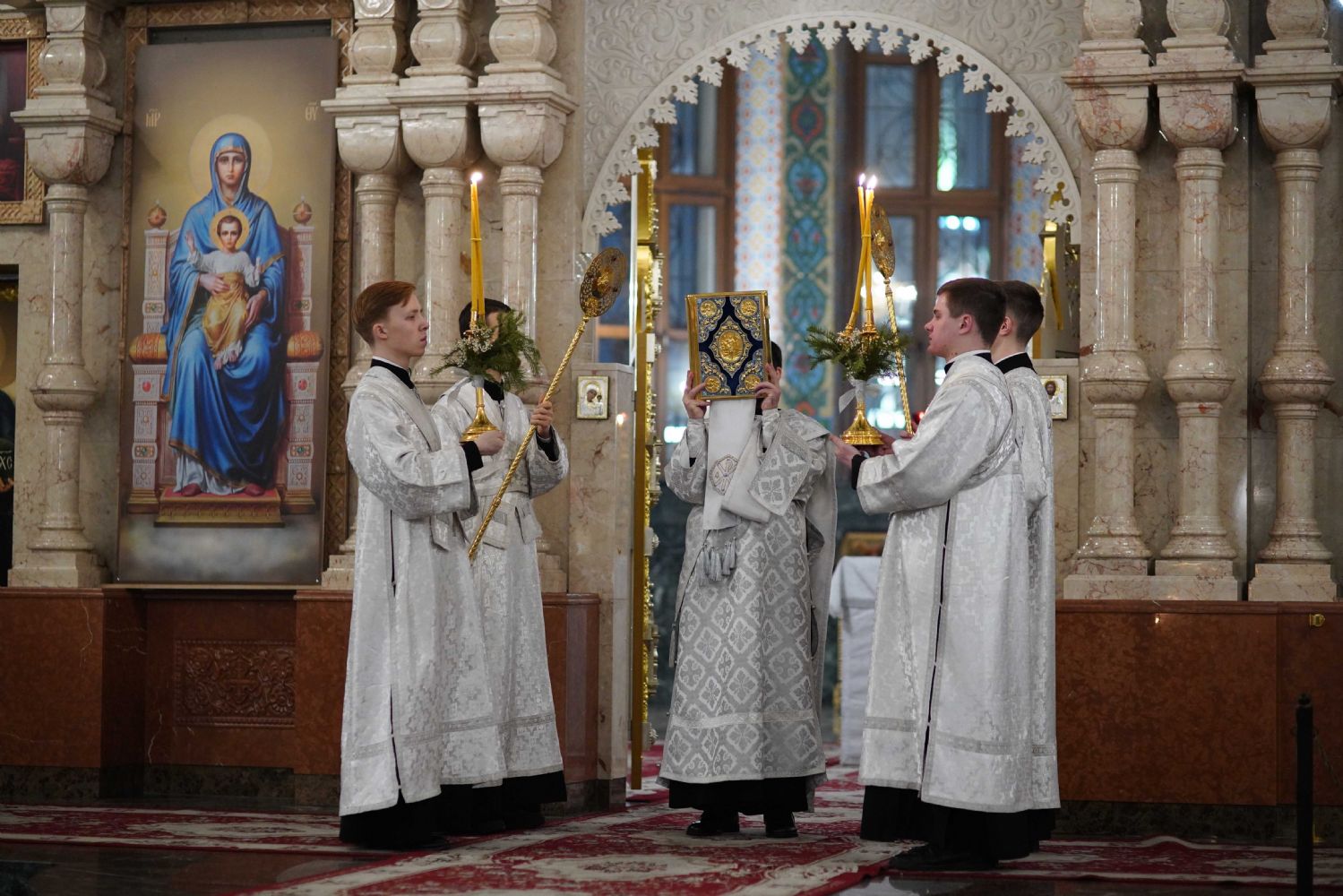 Его Высокопреосвященству сослужили ключарь кафедрального собора протоиерей Сергий Поглазов, клирики собора иереи Никифор Захаров, Евгений Самойлов, Александр Староверов и Иоанн Милютин, диакон Артемий Бобоч, а также протодиакон Михаил Козловский. Песнопения исполнял архиерейский детско-юношеский хор «Благовест» под управлением регента Надежды Поздеевой.