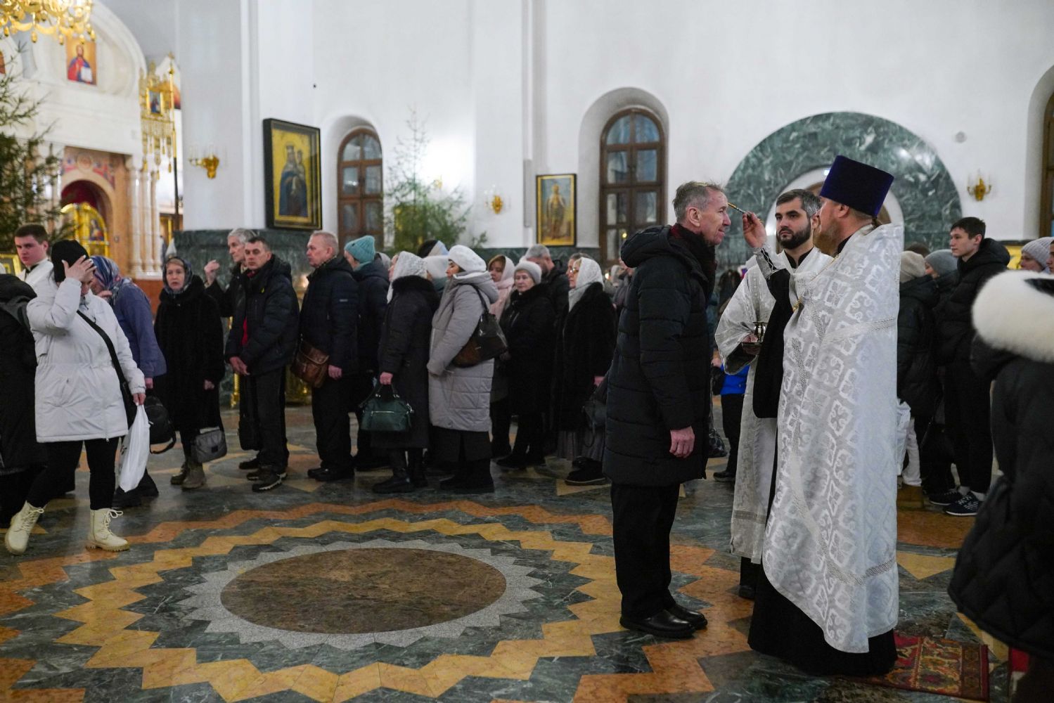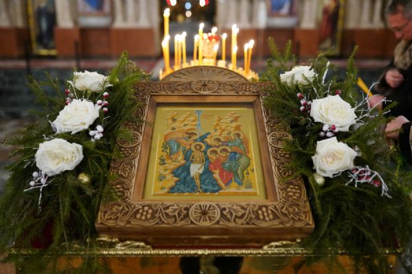 На вечерне звучали песнопения попразднства Крещения Господня. На утрене после чтения Евангелия верующие помазывались освященным елеем.