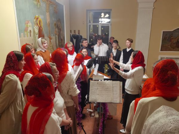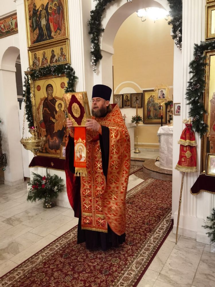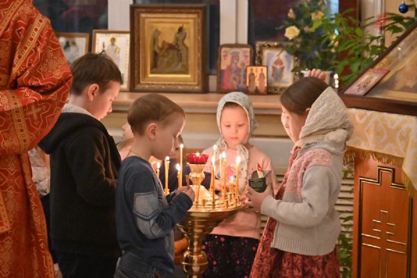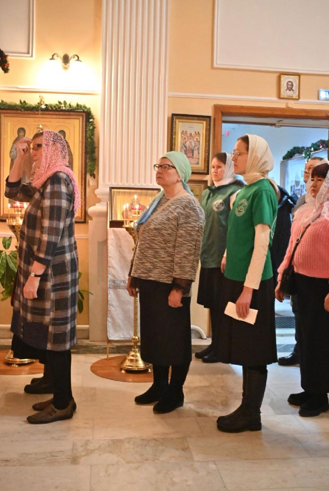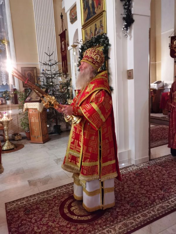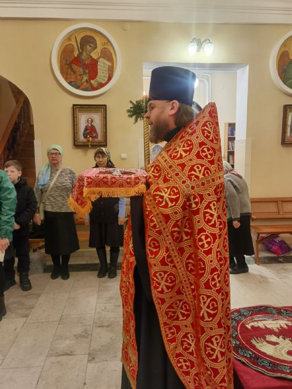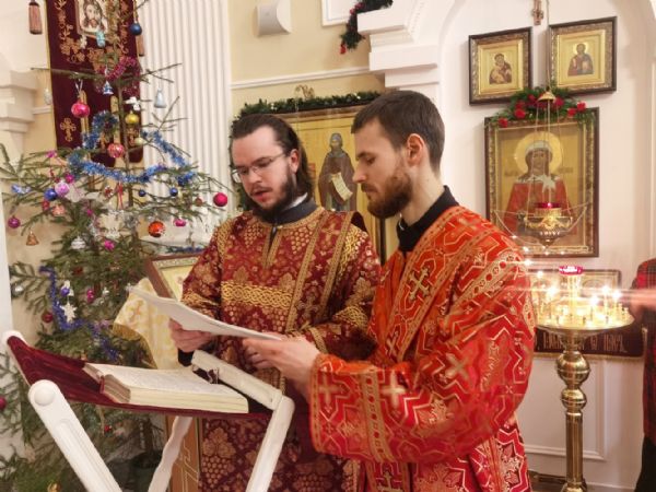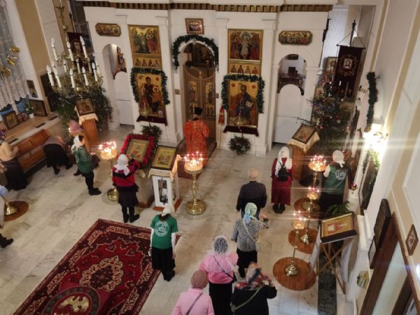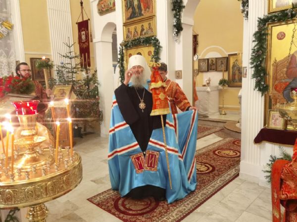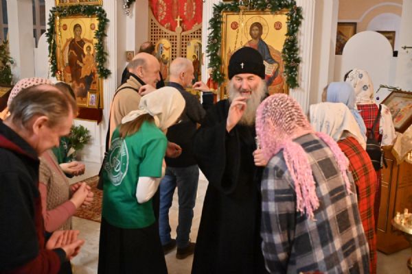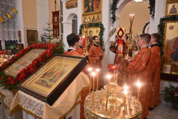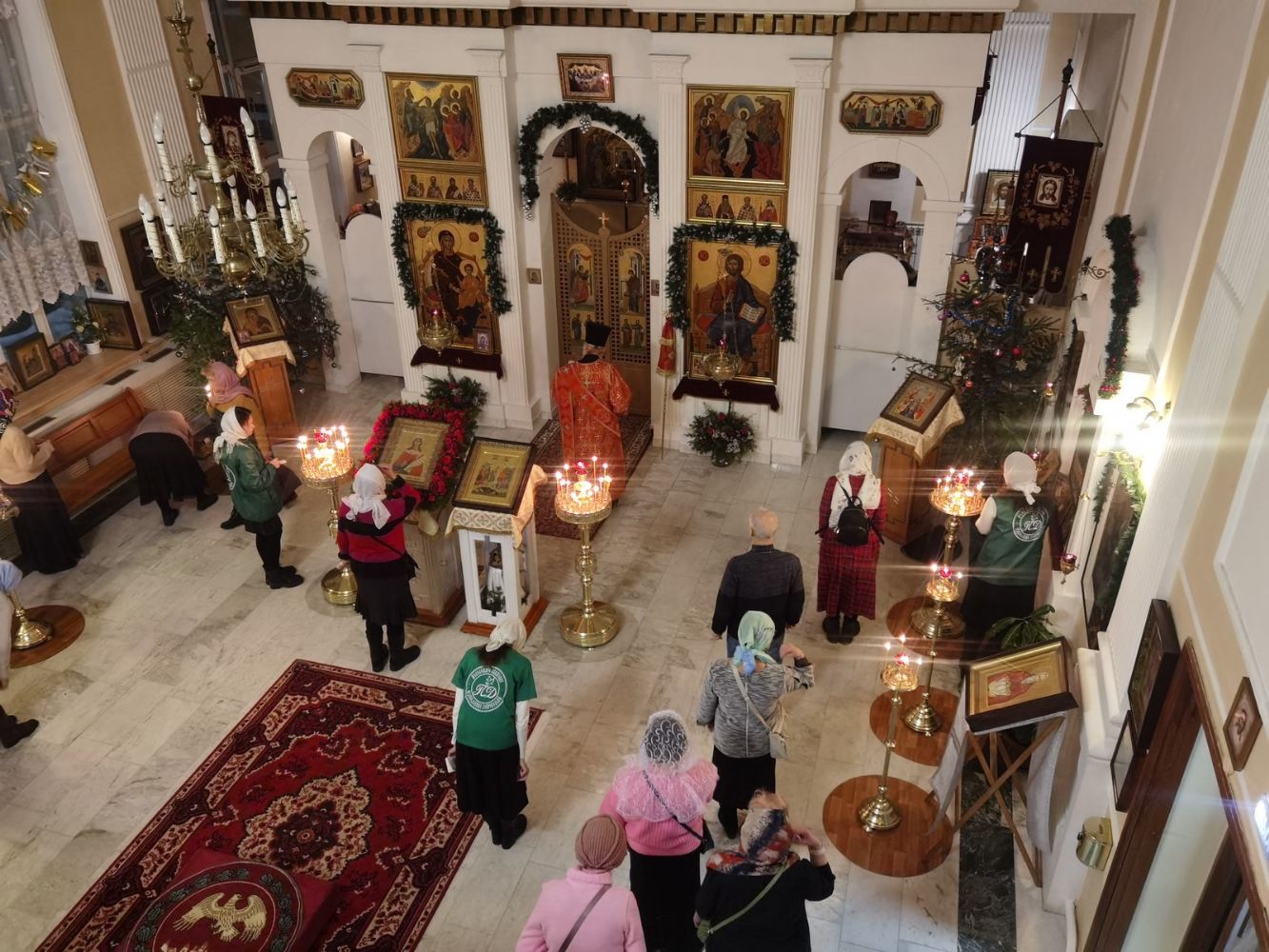 Архипастырю сослужили настоятель храма протоиерей Евгений Сурков, клирики храма иерей Андрей Иванов и диакон Никита Сурков, а также протодиакон Михаил Козловский. Песнопения исполнял хор храма под управлением регента Аллы Симаковой.