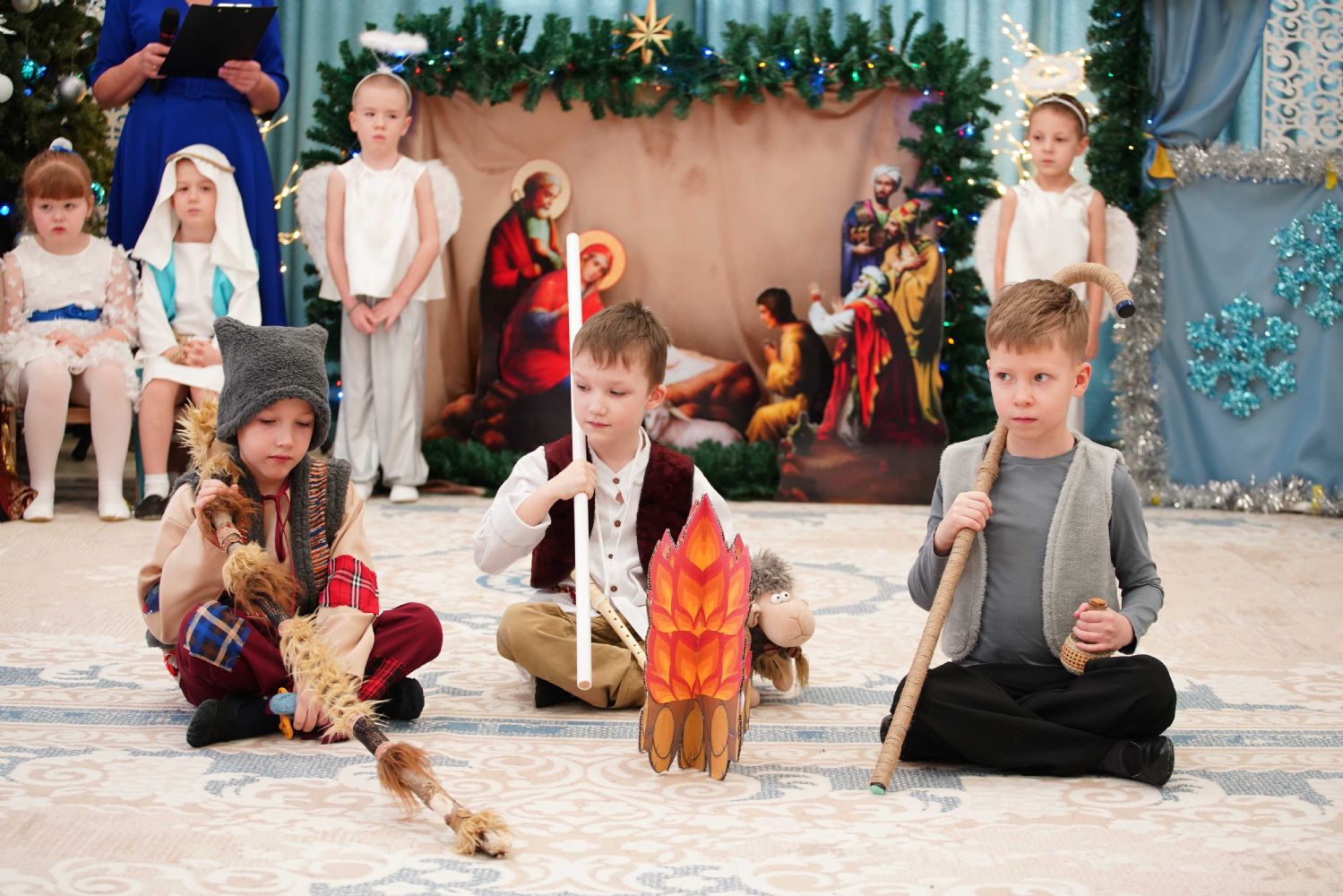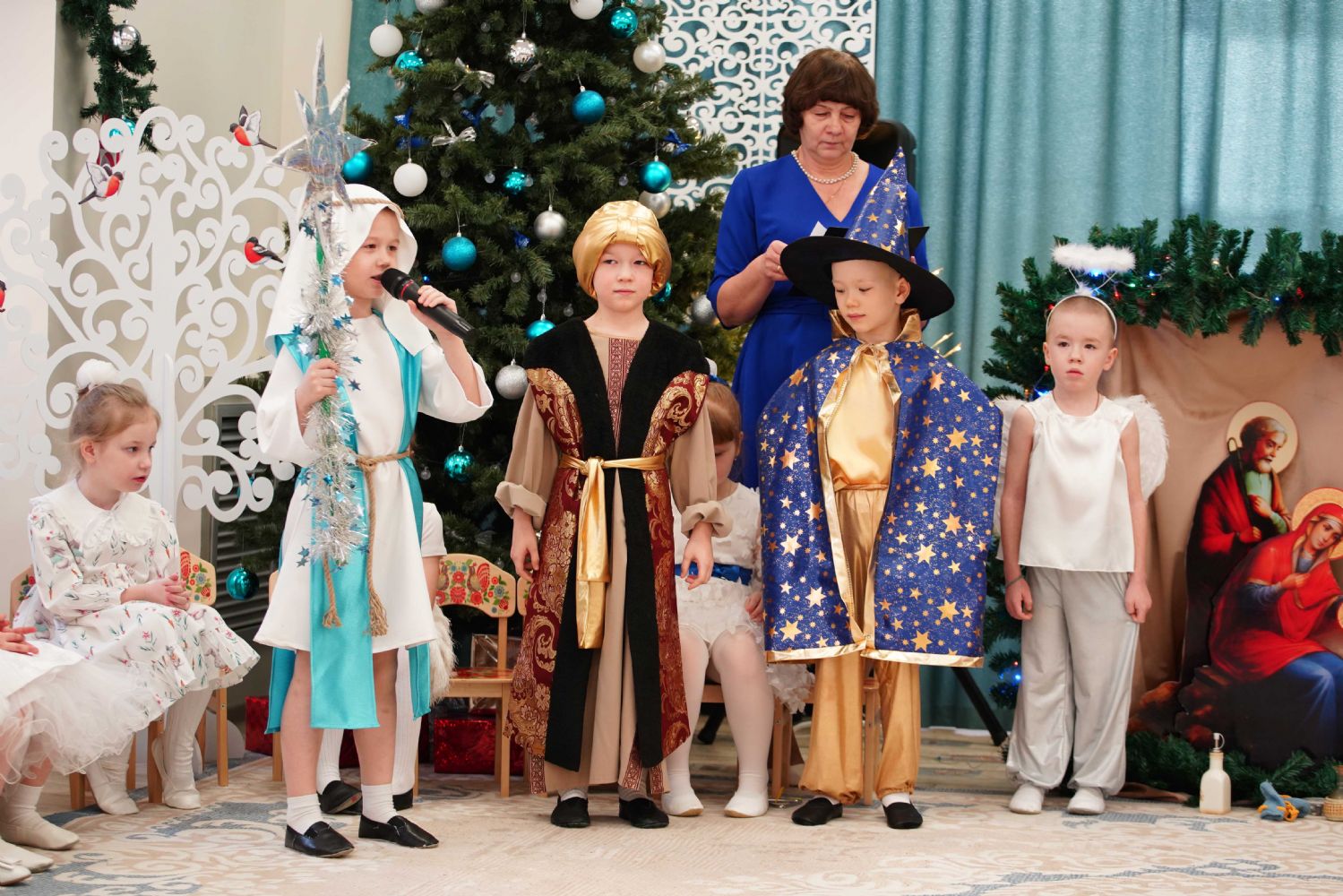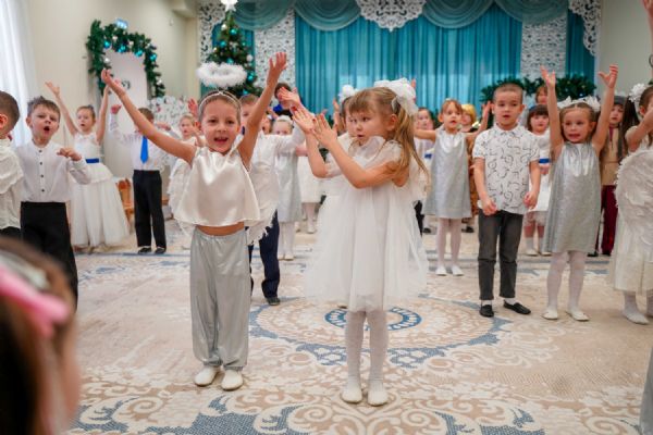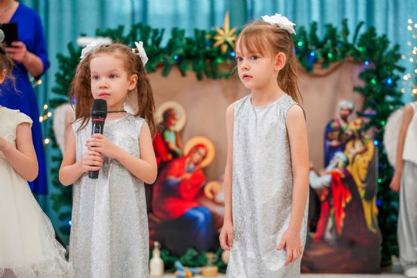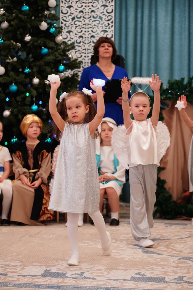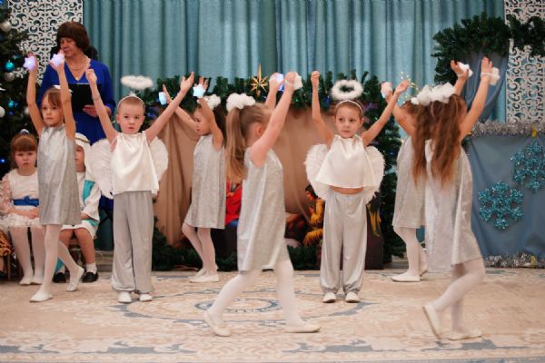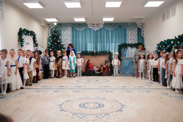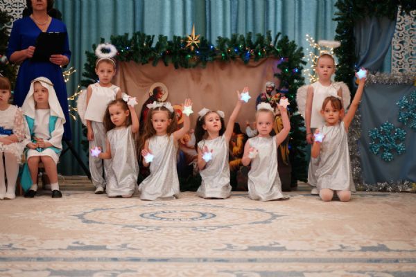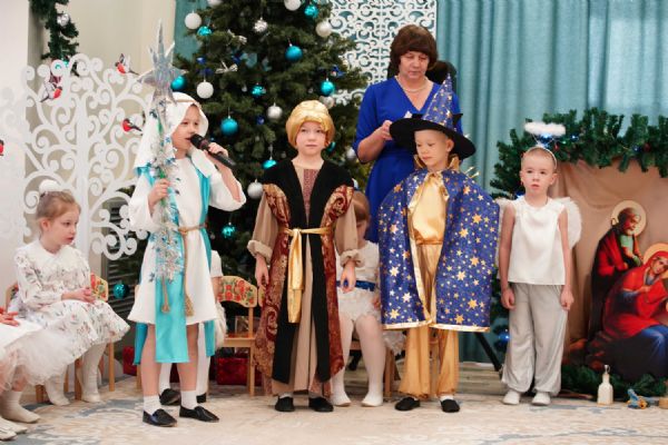 Воспитанники детского сада приготовили для гостей праздничный концерт – песни, танцы и колядки, а также мастерски сыгранный спектакль на рождественскую тематику.