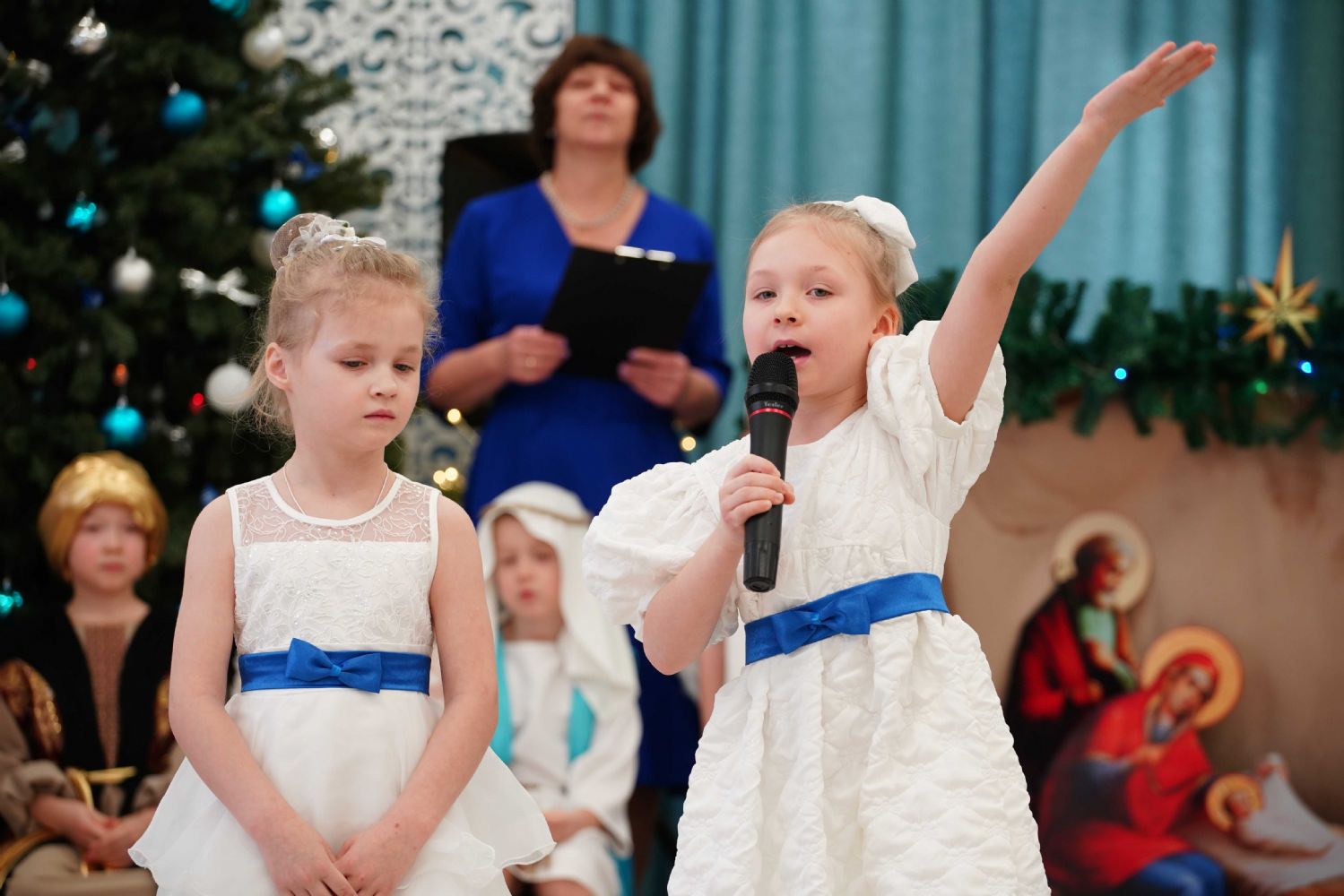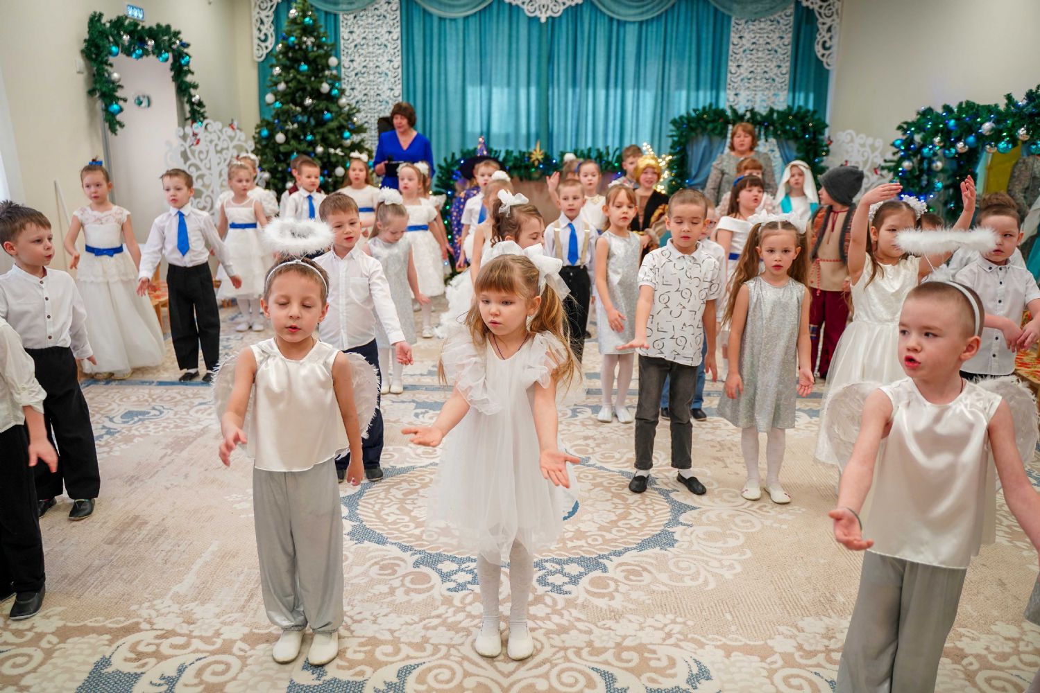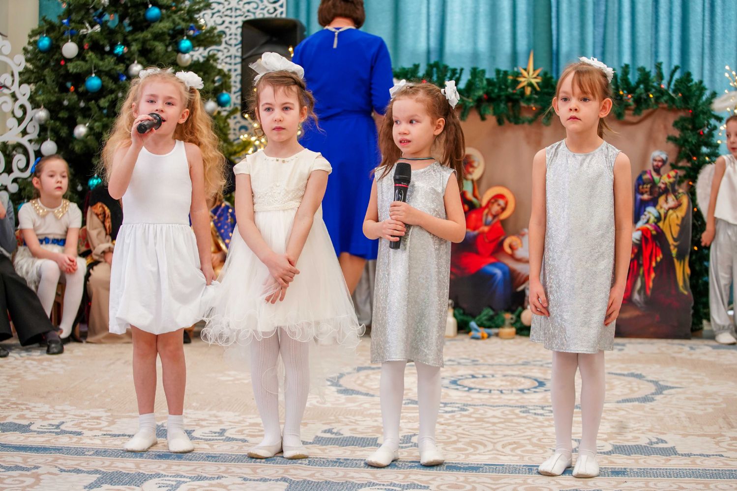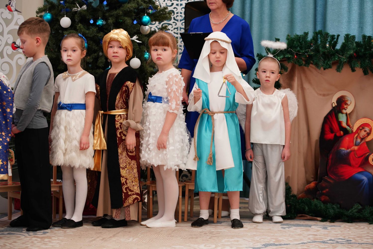 Воспитанники детского сада приготовили для гостей праздничный концерт – песни, танцы и колядки, а также мастерски сыгранный спектакль на рождественскую тематику.