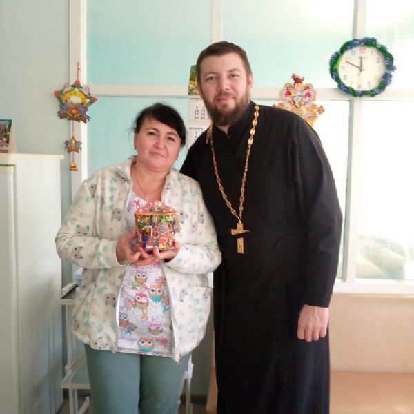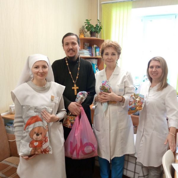 А после праздника Крещения Господня отец Павел и отец Сергий вновь пришли в Детскую городскую больницу, а также Детскую поликлинику №1. После чина великого освящения воды священники окропили кабинеты и палаты поликлиники и больницы и тепло поздравили всех с праздником, разъяснив его глубокий духовный смысл.