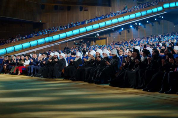 В зале Государственного Кремлевского дворца собралось свыше 5 тысяч человек: Преосвященные архипастыри — члены Священного Синода и Высшего Церковного Совета, главы экзархатов, митрополий и епархиальные архиереи Русской Православной Церкви, представители Поместных Православных Церквей, члены Межрелигиозного совета России, полномочные представители Президента Российской Федерации в федеральных округах, представители обеих палат российского парламента, руководители и представители федеральных и региональных органов власти, ректоры и представители свыше 250 российских и зарубежных вузов, директора и педагоги общеобразовательных организаций, священнослужители, приходские специалисты, деятели науки и культуры.