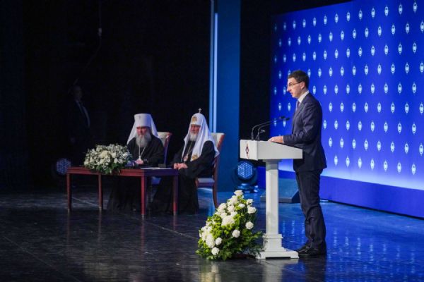 «Ваше Святейшество, разрешите от лица всех собравшихся приветствовать Вас, а также всех участников торжественного пленарного заседания XXXIV Международных Рождественских образовательных чтений. Определением Священного Синода и Вашим Первосвятительским благословением Чтения в этом году посвящены теме "Просвещение и нравственность: формирование личности и вызовы времени".