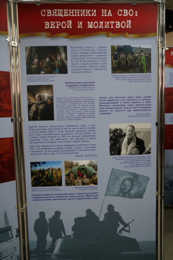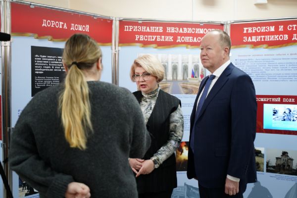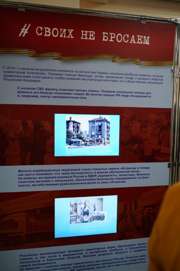 На выставке представлены более 250 экспонатов, которые рассказывают об истории появления украинского национализма, геноциде русскоязычного населения Донбасса и притеснении православия. Разделы экспозиции свидетельствуют о полномасштабном участии европейских стран в конфликте, демонстрируют мужество российских бойцов, военных корреспондентов и медиков, участвующих в специальной военной операции. Особое внимание уделено восстановлению Мариуполя и других городов, разрушенных украинскими боевиками.