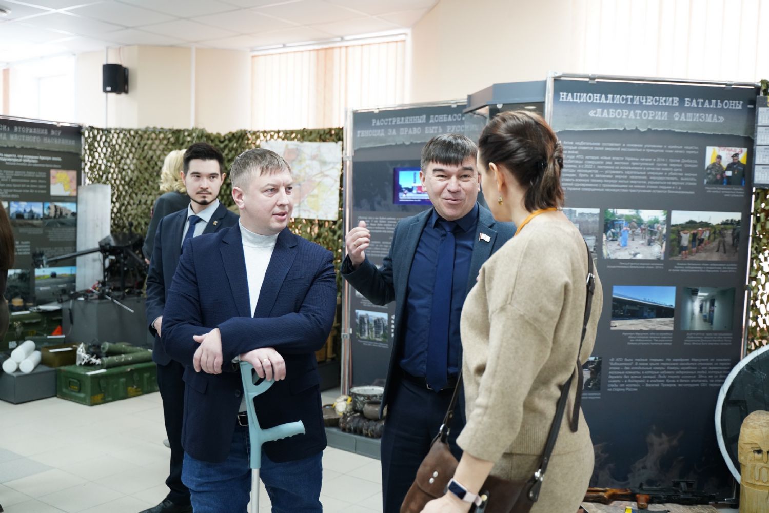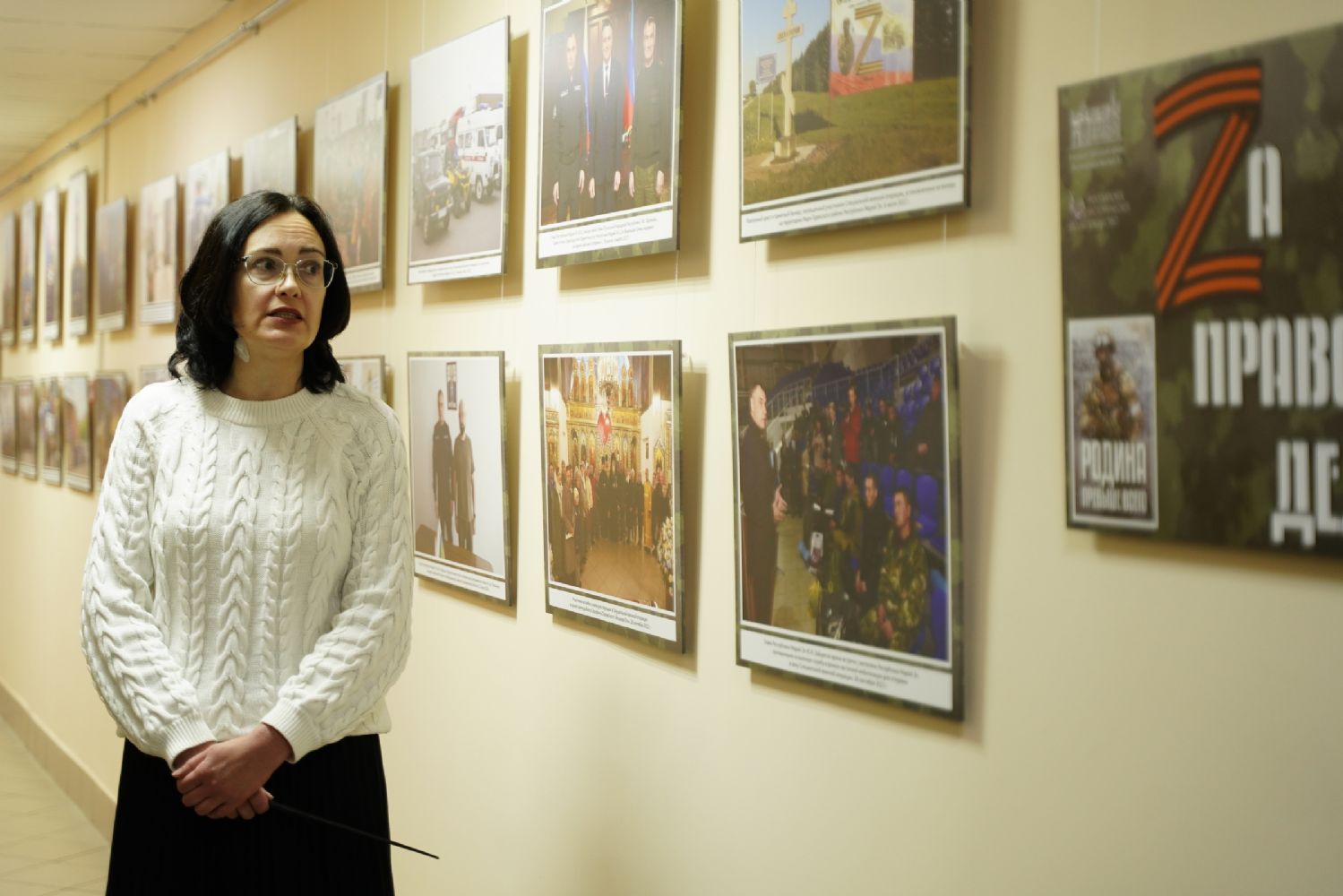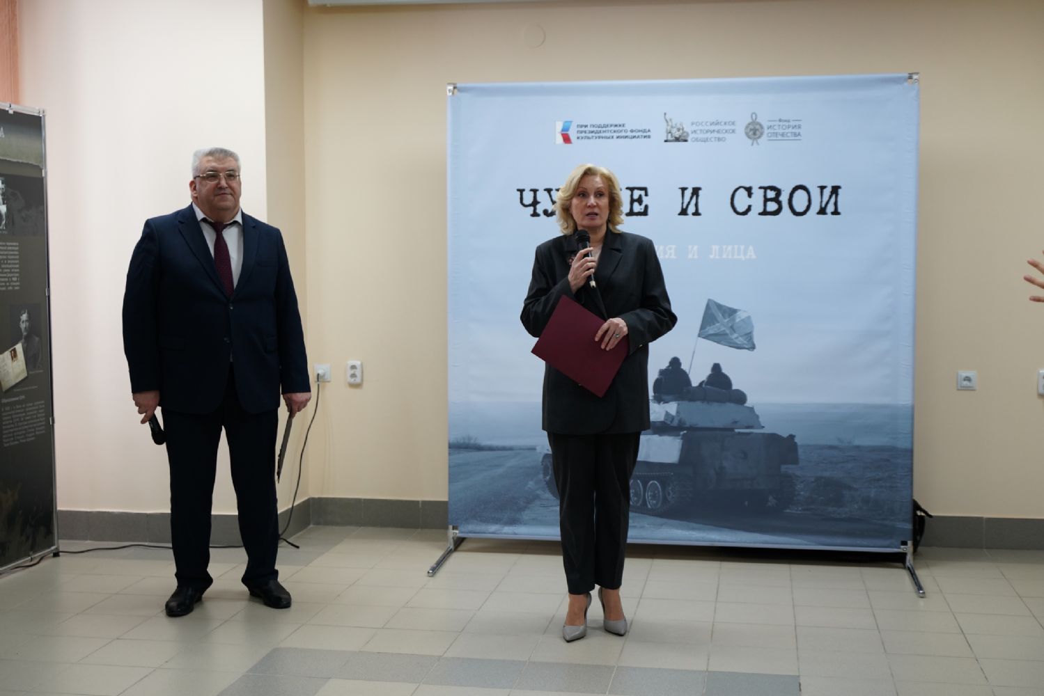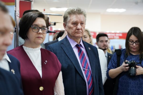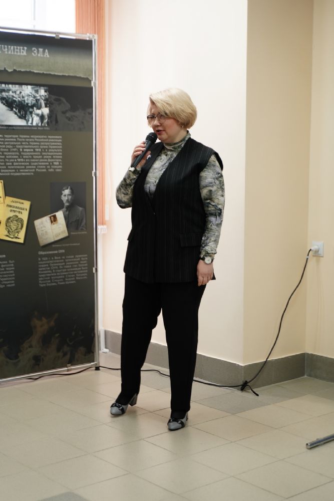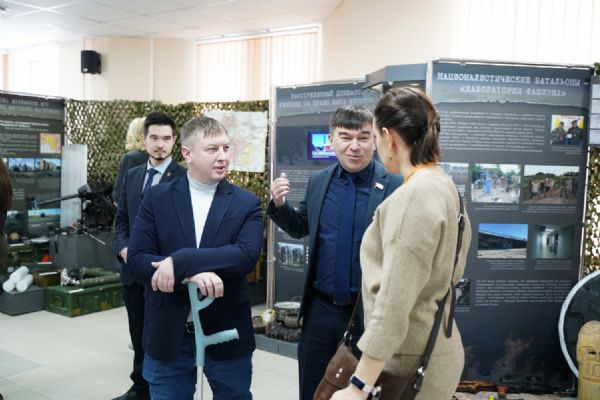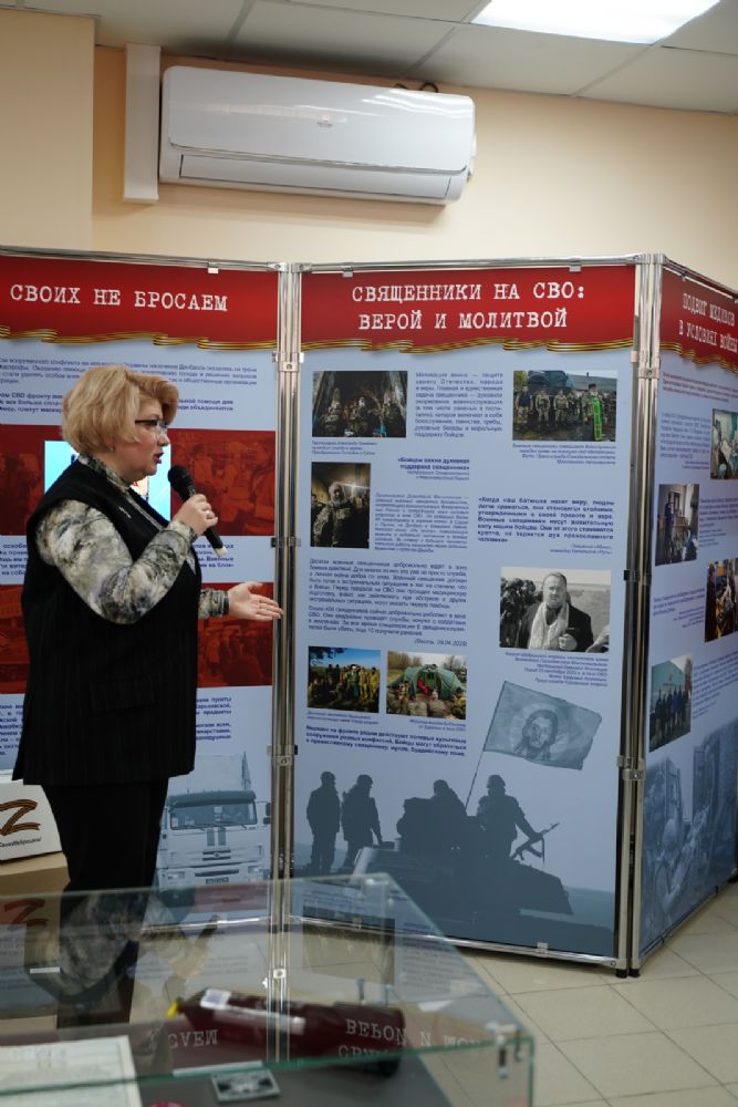 Руководитель выставочных проектов фонда «История Отечества» Наталья Капустникова провела для собравшихся экскурсию по выставке. Для посетителей из Марий Эл экспозиция проекта дополнена информацией о наших земляках – героях специальной военной операции и о вкладе нашей республики в гуманитарную помощь бойцам СВО и населению освобождённых территорий.