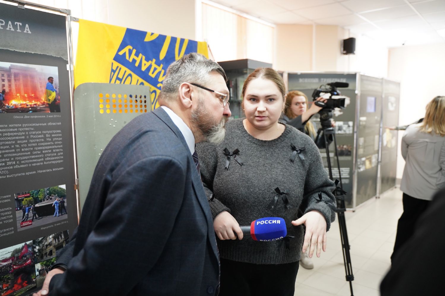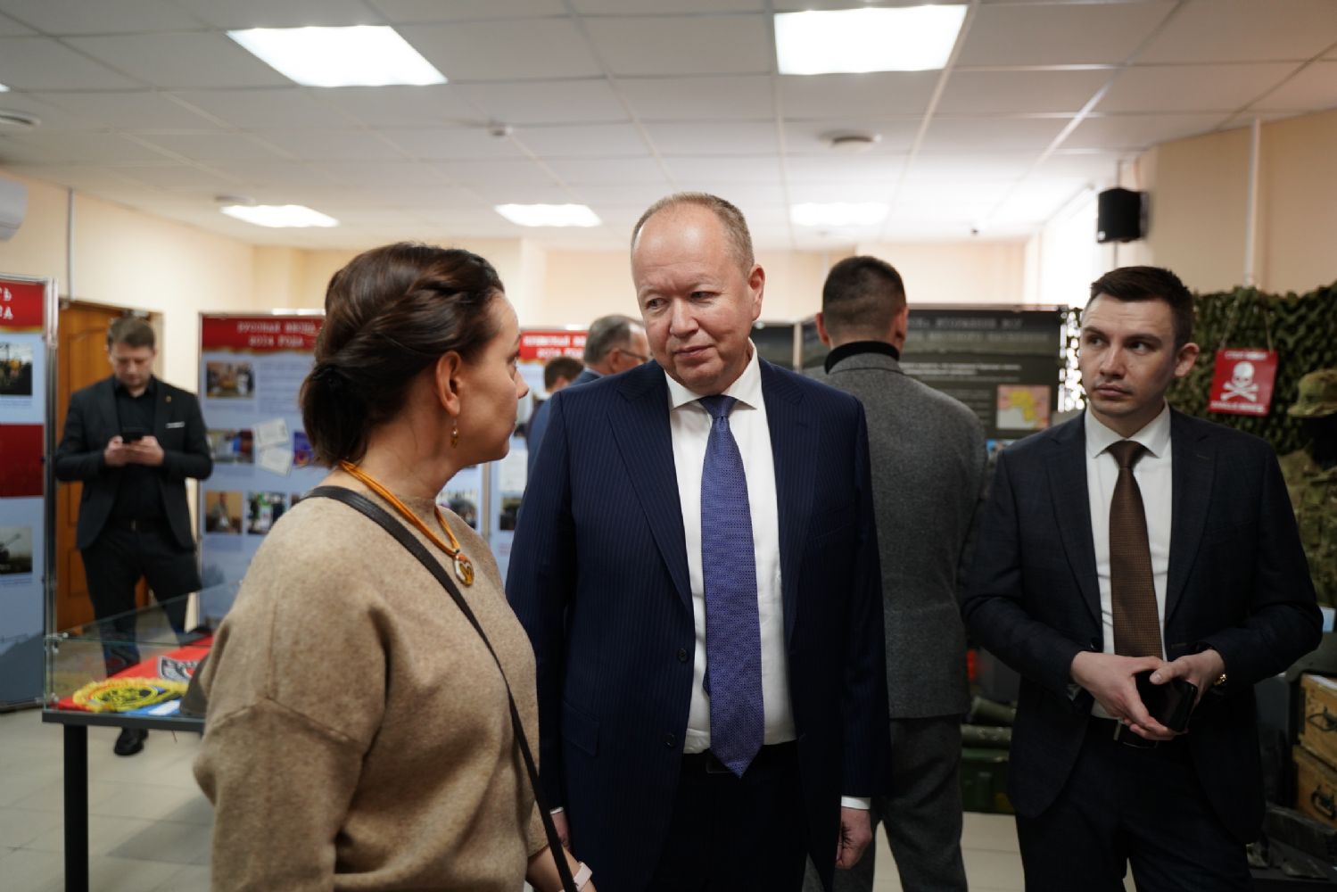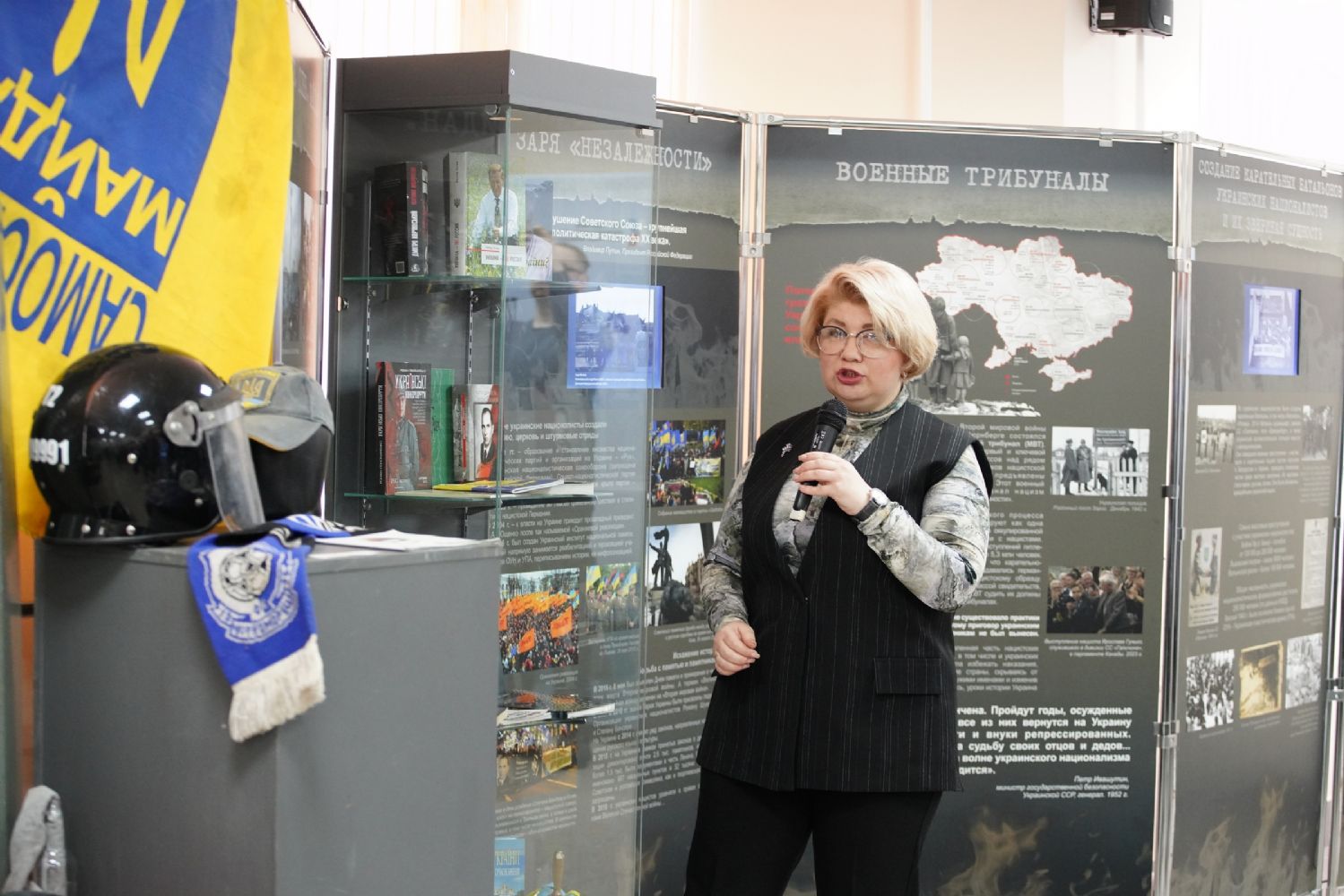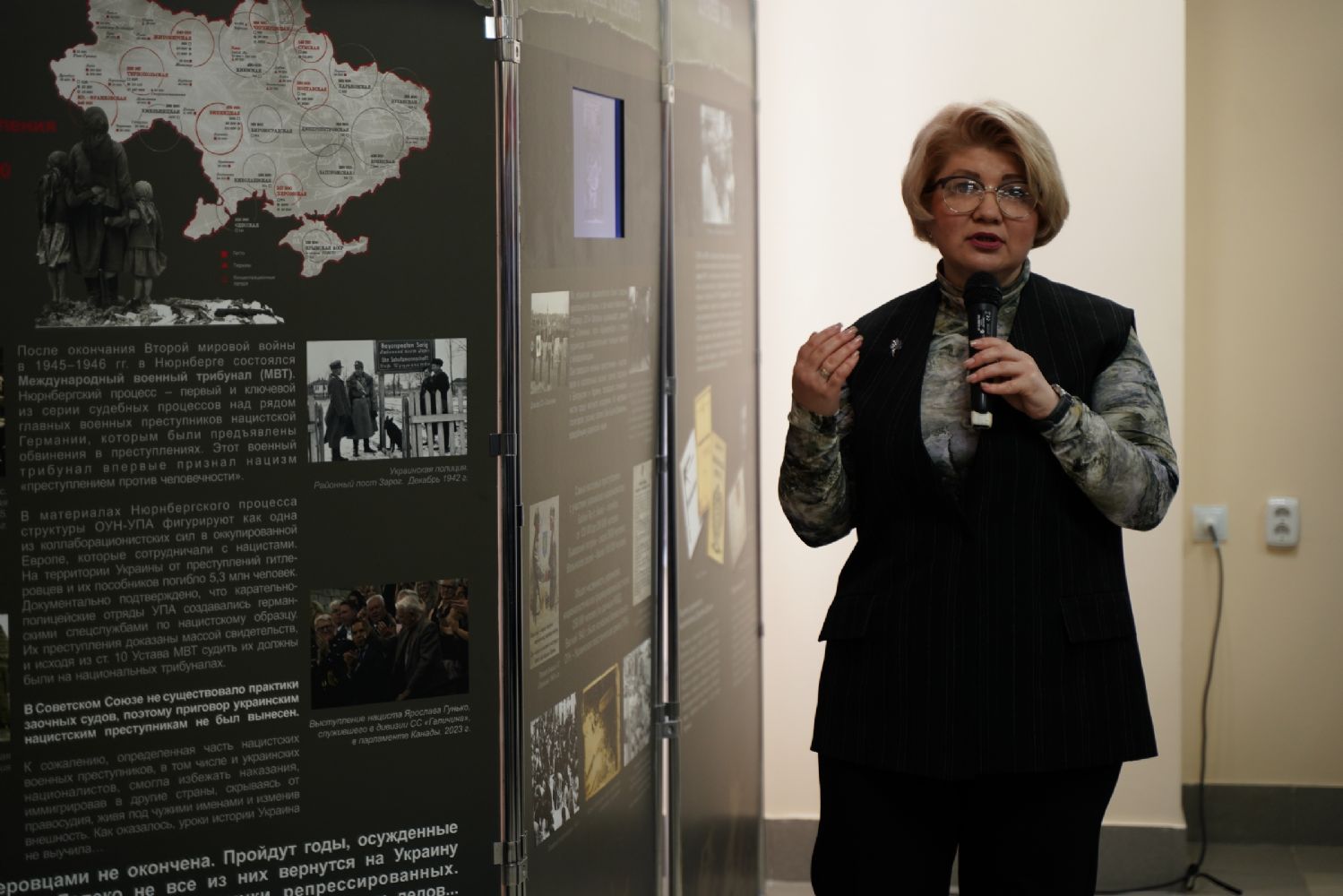 Руководитель выставочных проектов фонда «История Отечества» Наталья Капустникова провела для собравшихся экскурсию по выставке. Для посетителей из Марий Эл экспозиция проекта дополнена информацией о наших земляках – героях специальной военной операции и о вкладе нашей республики в гуманитарную помощь бойцам СВО и населению освобождённых территорий.