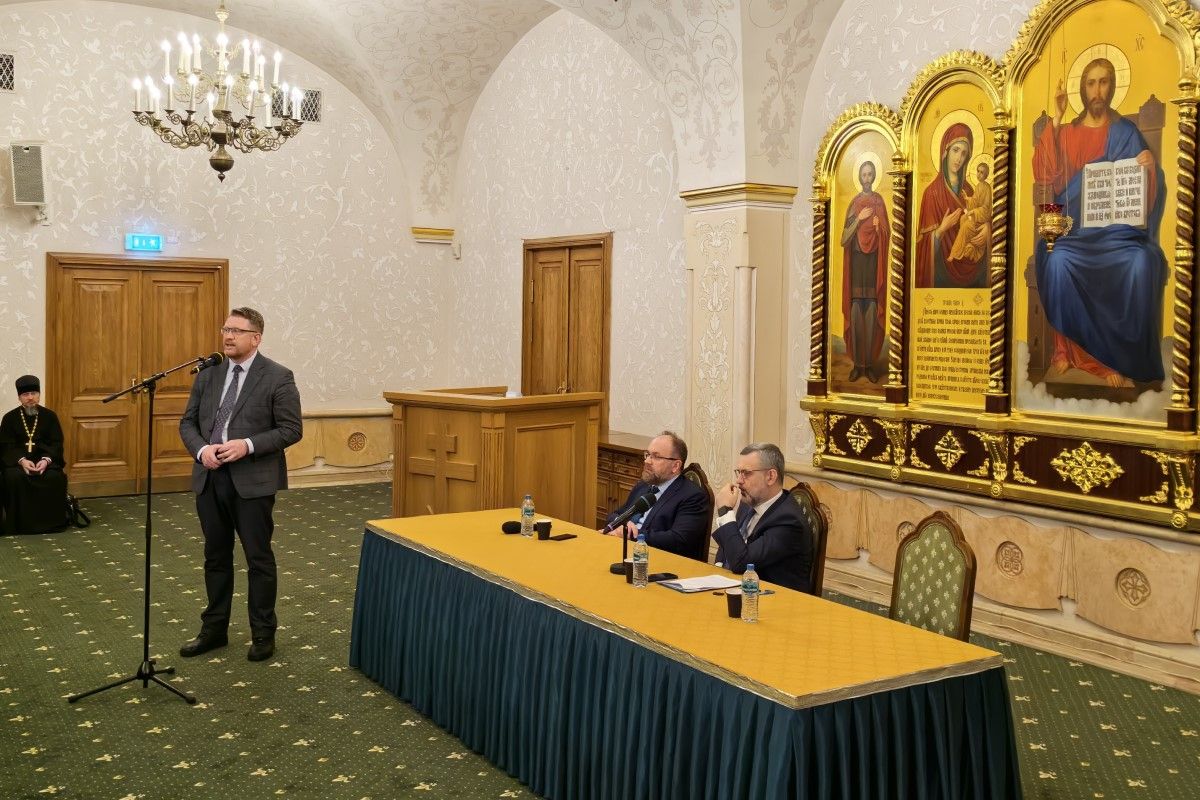 В начале встречи В.Р. Легойда обратил внимание коллег на выступления Святейшего Патриарха Кирилла на пленарном заседании XIV Рождественских Парламентских встреч в Совете Федерации ФС РФ и на пленарном заседании XXXIV Международных Рождественских образовательных чтений в Государственном Кремлевском дворце.