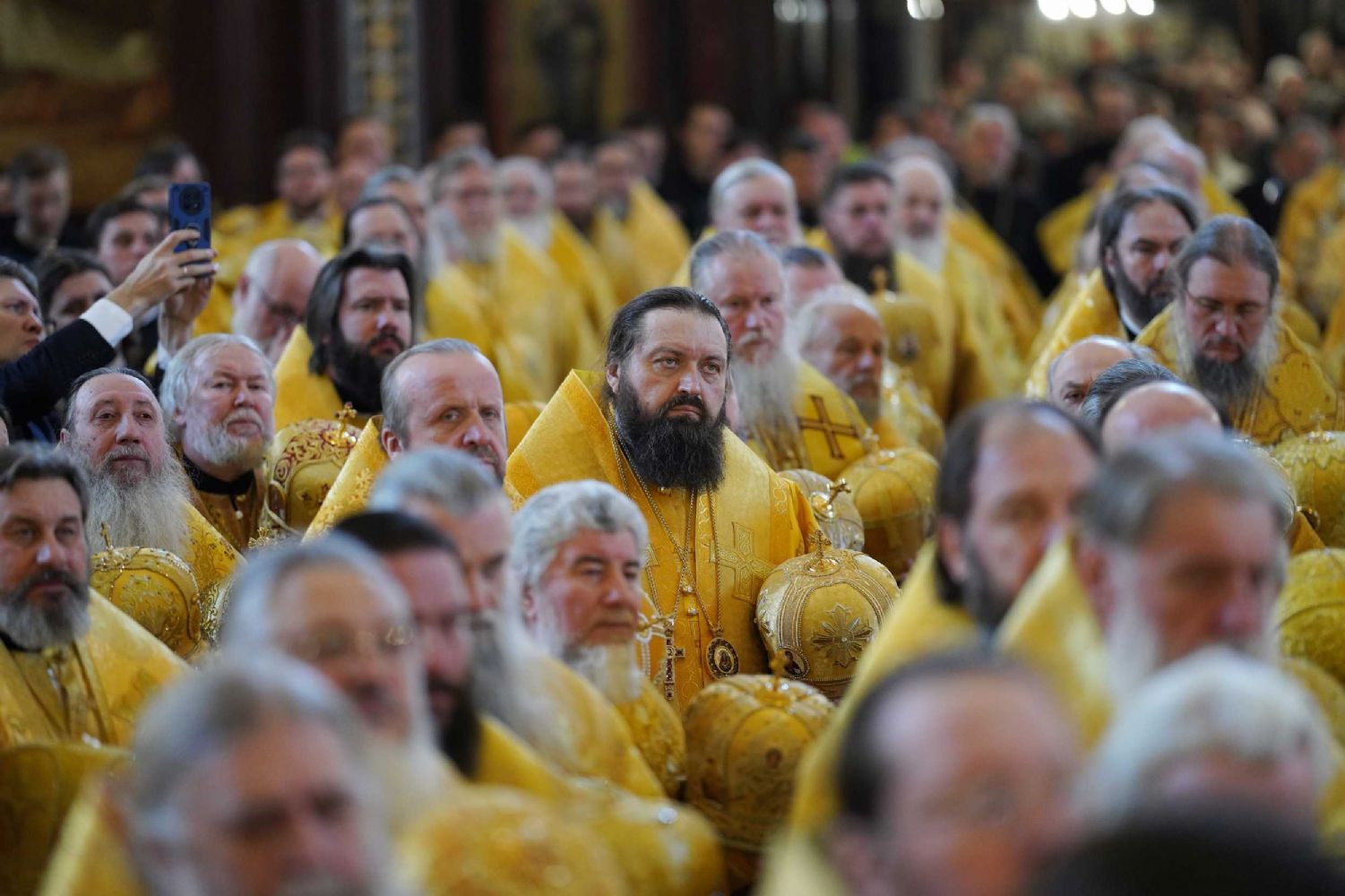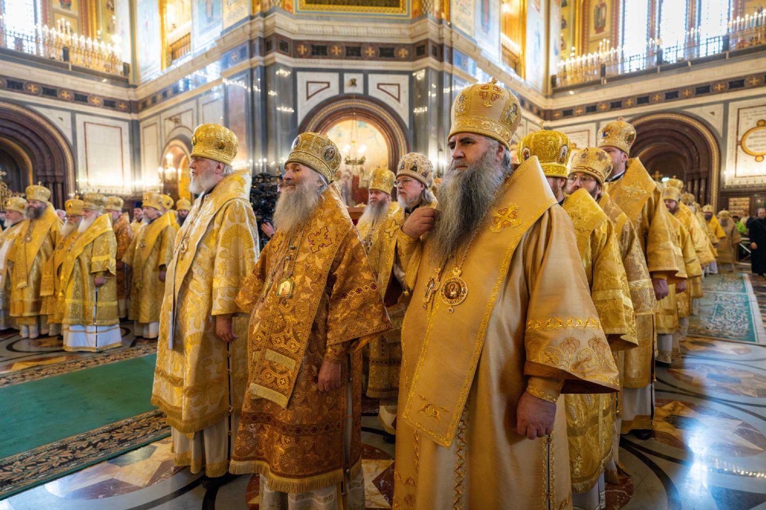 Его Святейшеству сослужили митрополиты, архиепископы и епископы Русской Православной Церкви, представители Поместных Православных Церквей, клирики Русской Православной Церкви. Среди сослужащих архиереев Марийскую митрополию представляли митрополит и епископ Волжский и Сернурский Феофан.