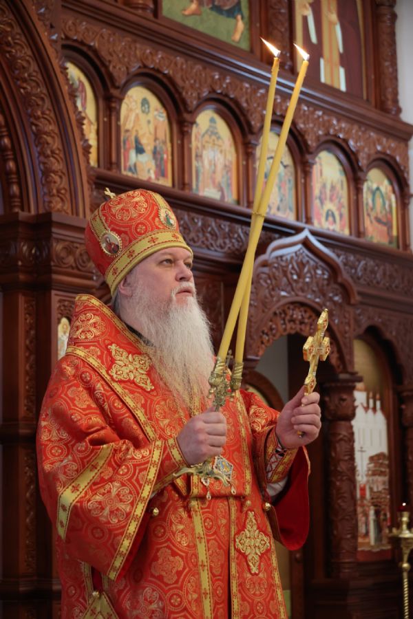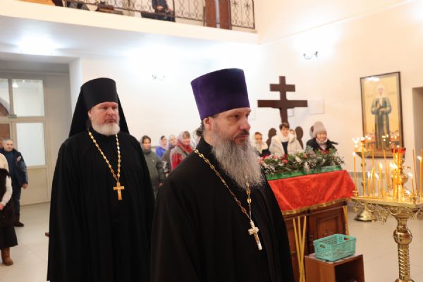 По заамвонной молитве было совершено славление перед иконой праздника. По окончании Литургии епископ Феофан совершил заупокойную литию. В завершение владыка обратился к прихожанам с архипастырским словом: