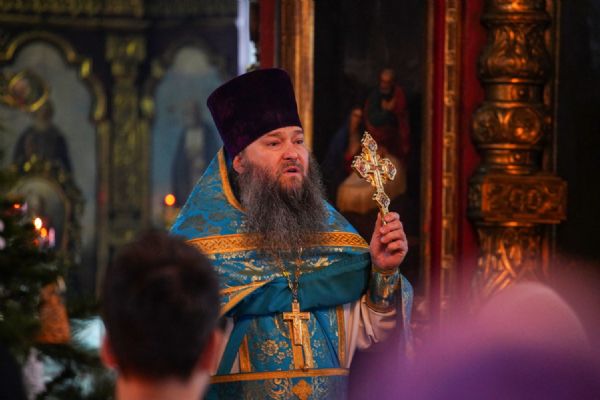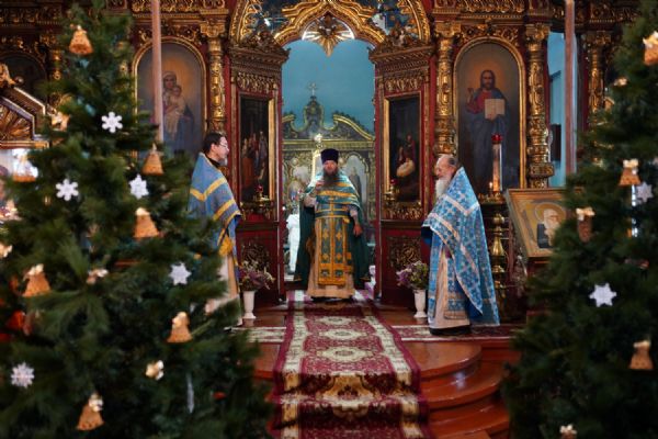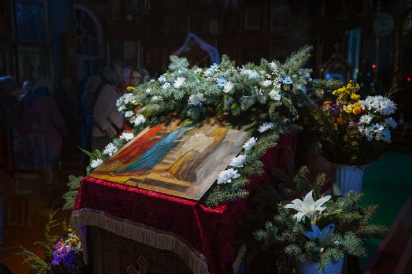 После Литургии духовенством было совершено славление перед иконой праздника.