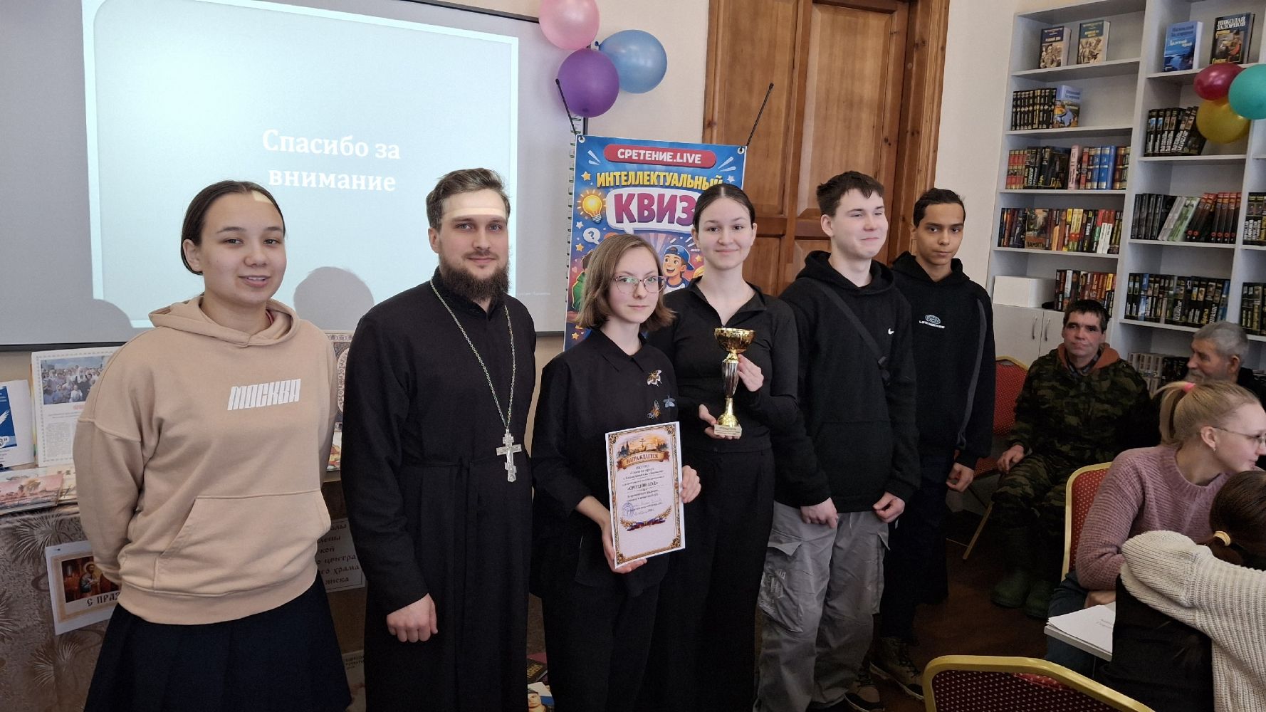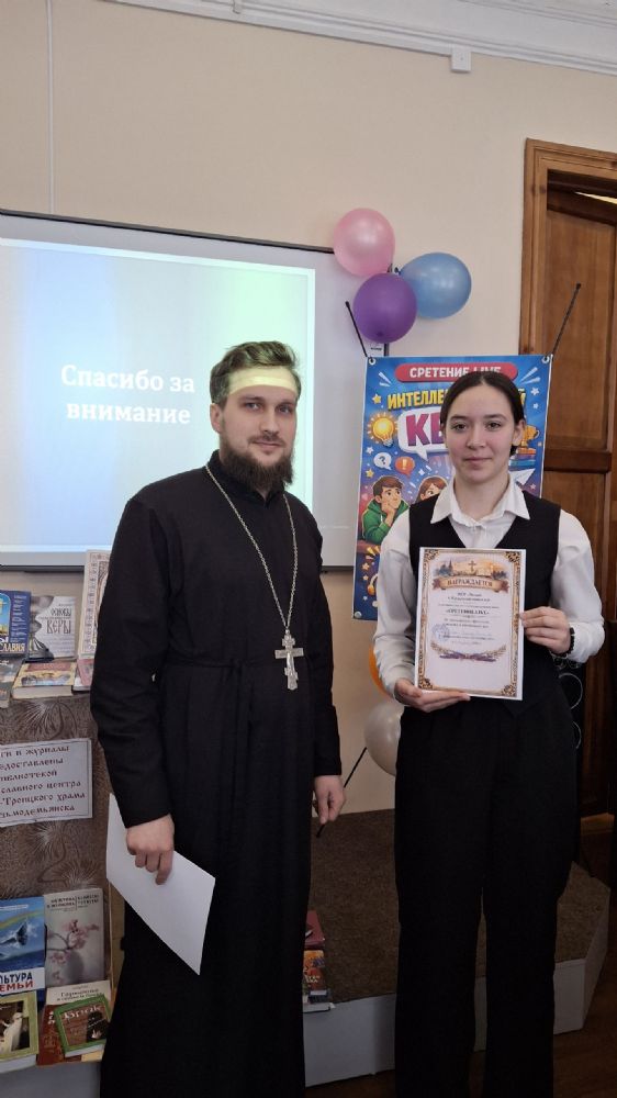 Настоятель Тихвинской церкви, помощник благочинного по молодежной работе иерей Феодор Ромашов провел для ребят увлекательный интеллектуальный квиз «Сретение. LIVE». Участники смогли не только проверить свои знания, но и узнать много нового.