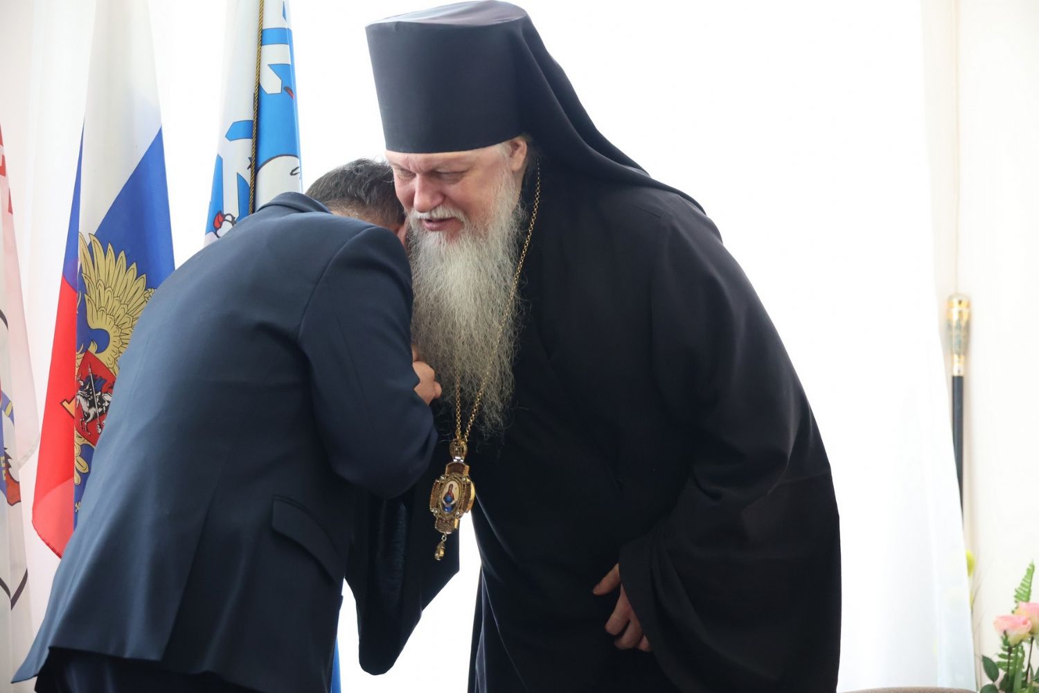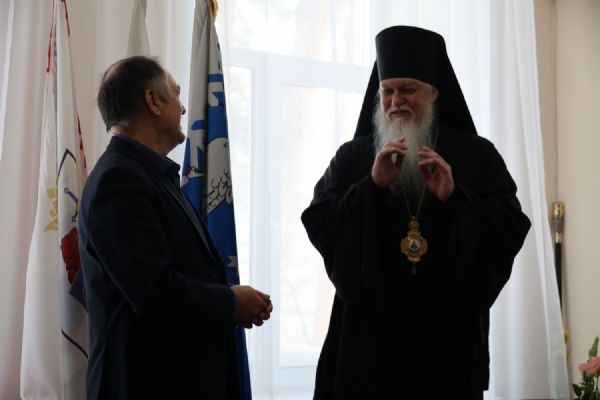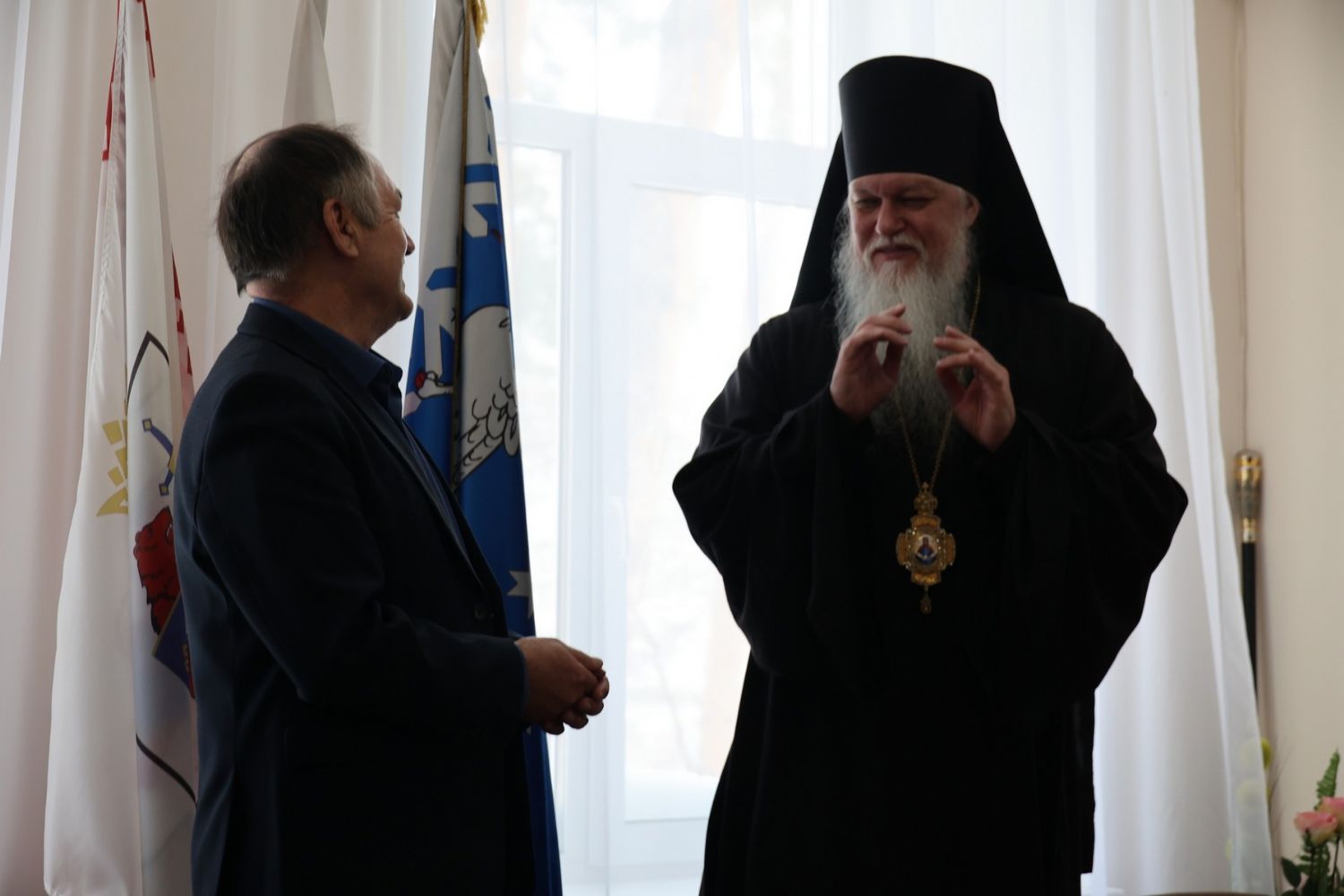 В завершение встречи епископ Феофан подарил сотрудникам администрации книги о святителе Спиридоне Тримифунтском.