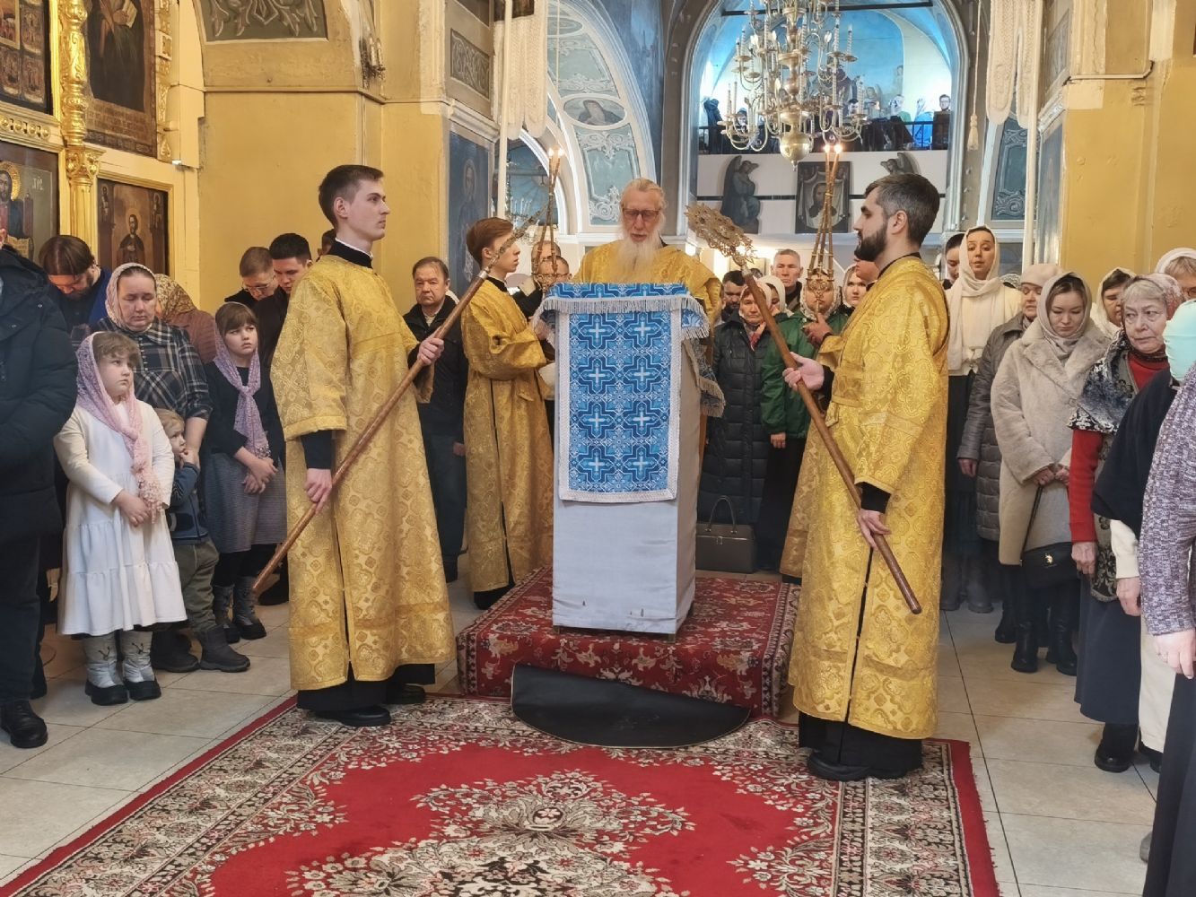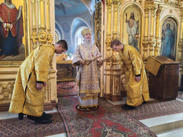 Его Высокопреосвященству сослужили ключарь храма протоиерей Михаил Ильин, клирики храма протодиакон Михаил Козловский и диакон Димитрий Смирнов. Песнопения исполнял хор храма.